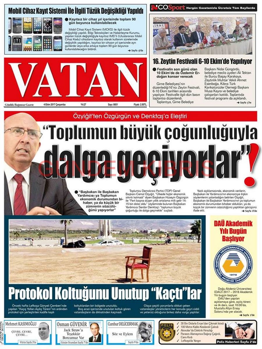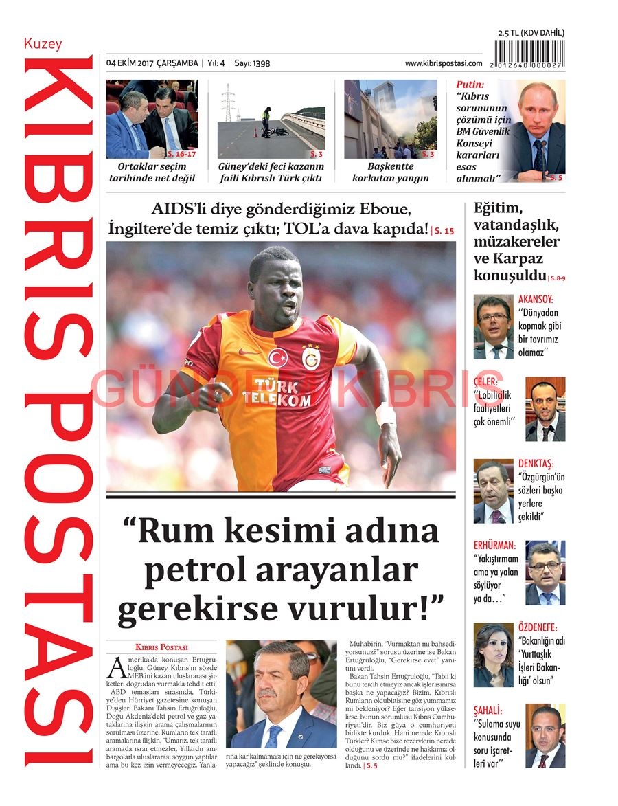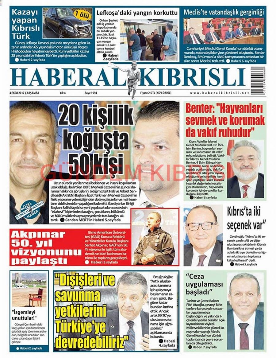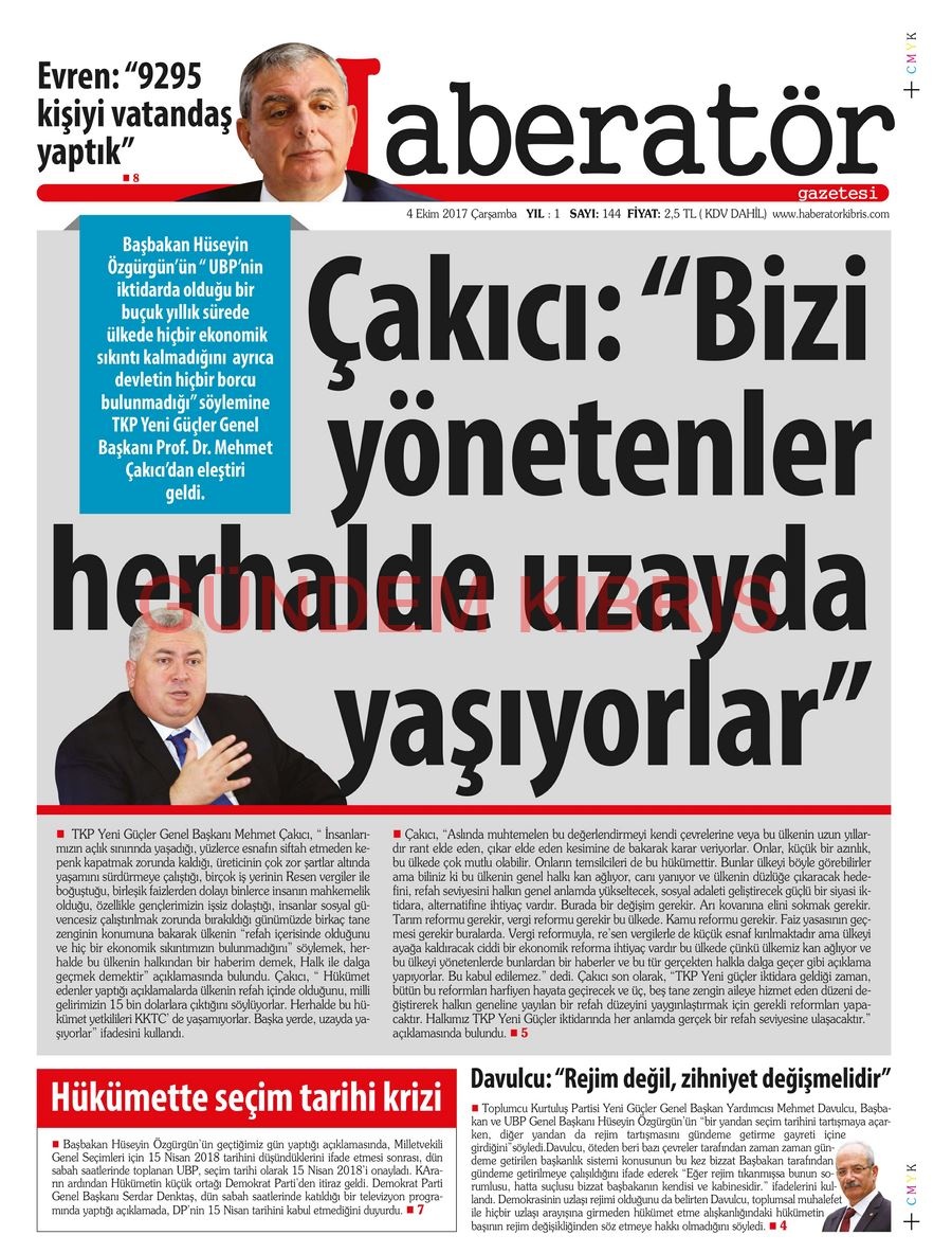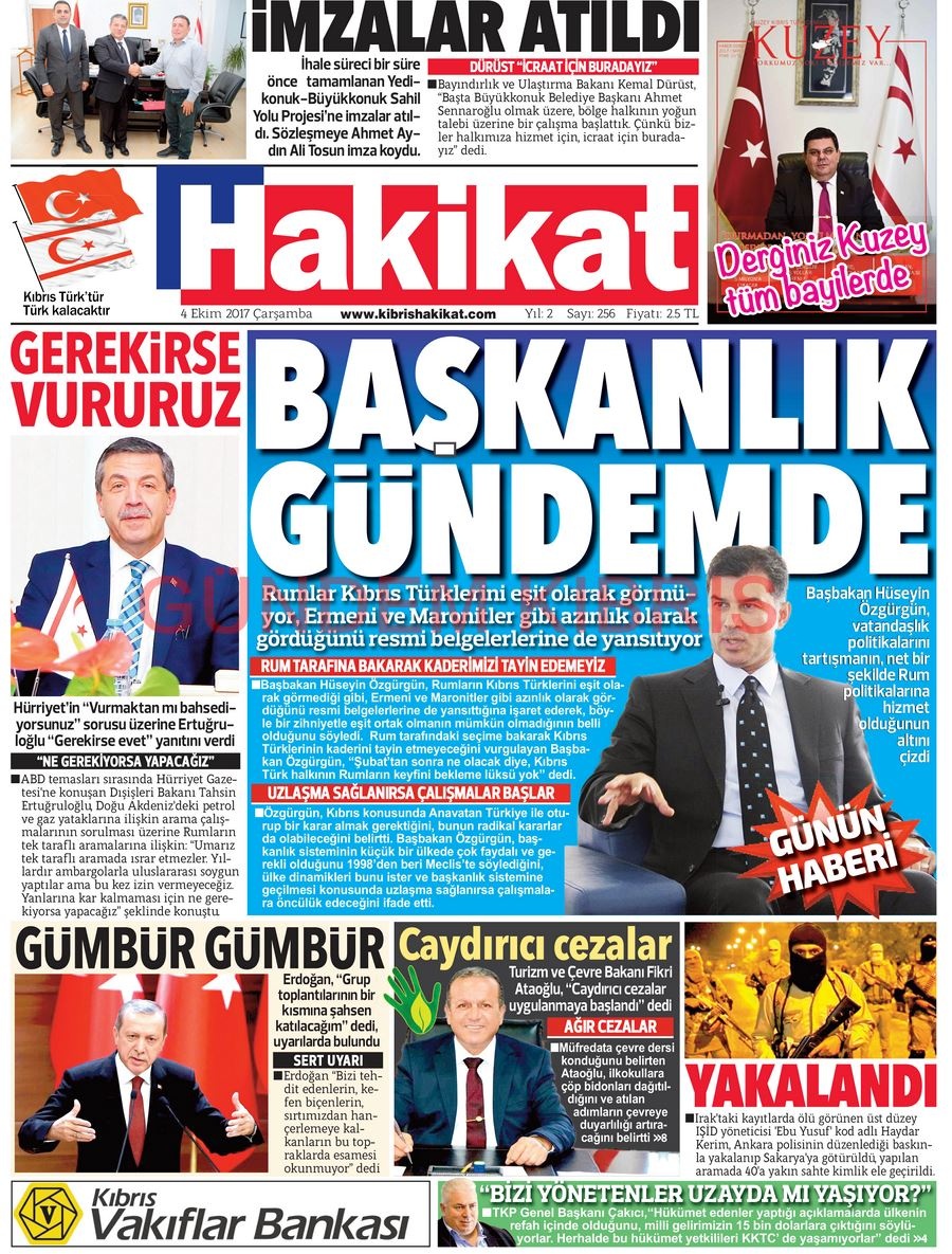 KKTC Gazete Manşetleri 4 Ekim 2017