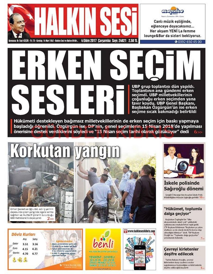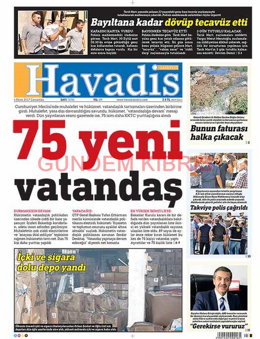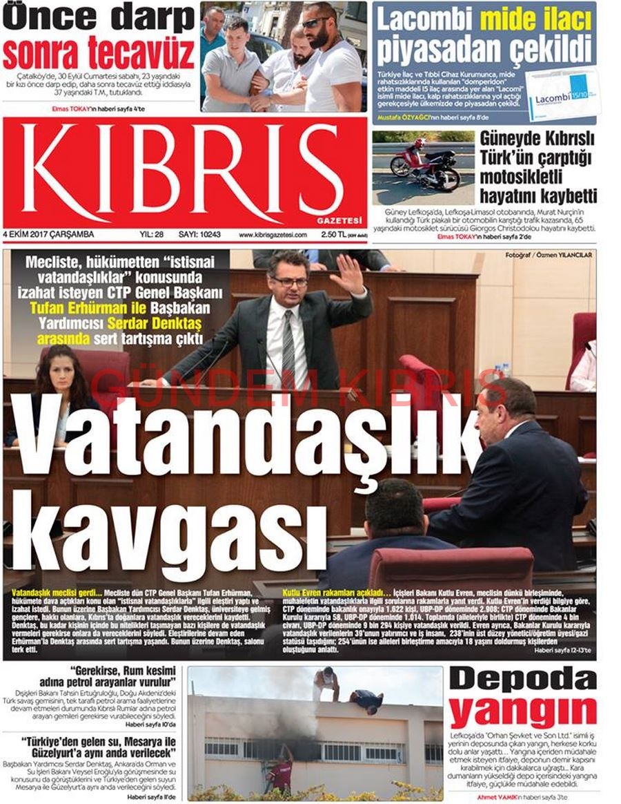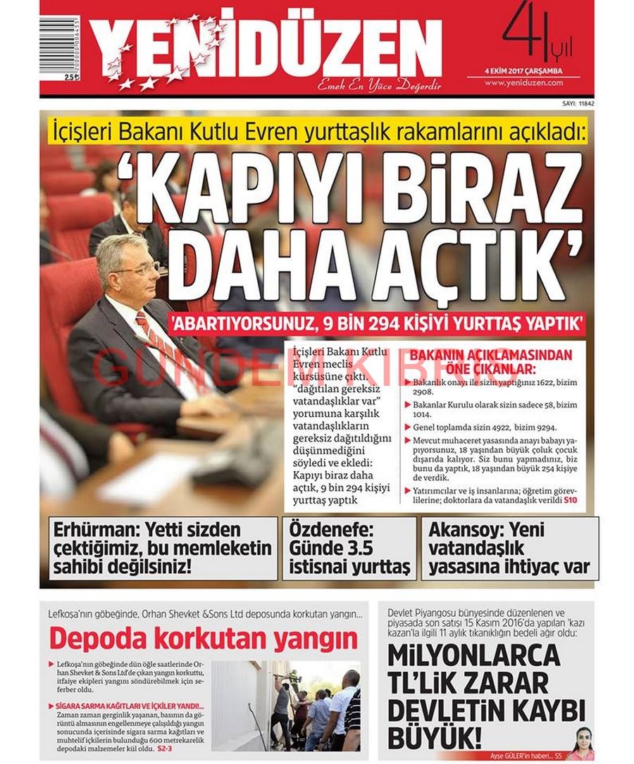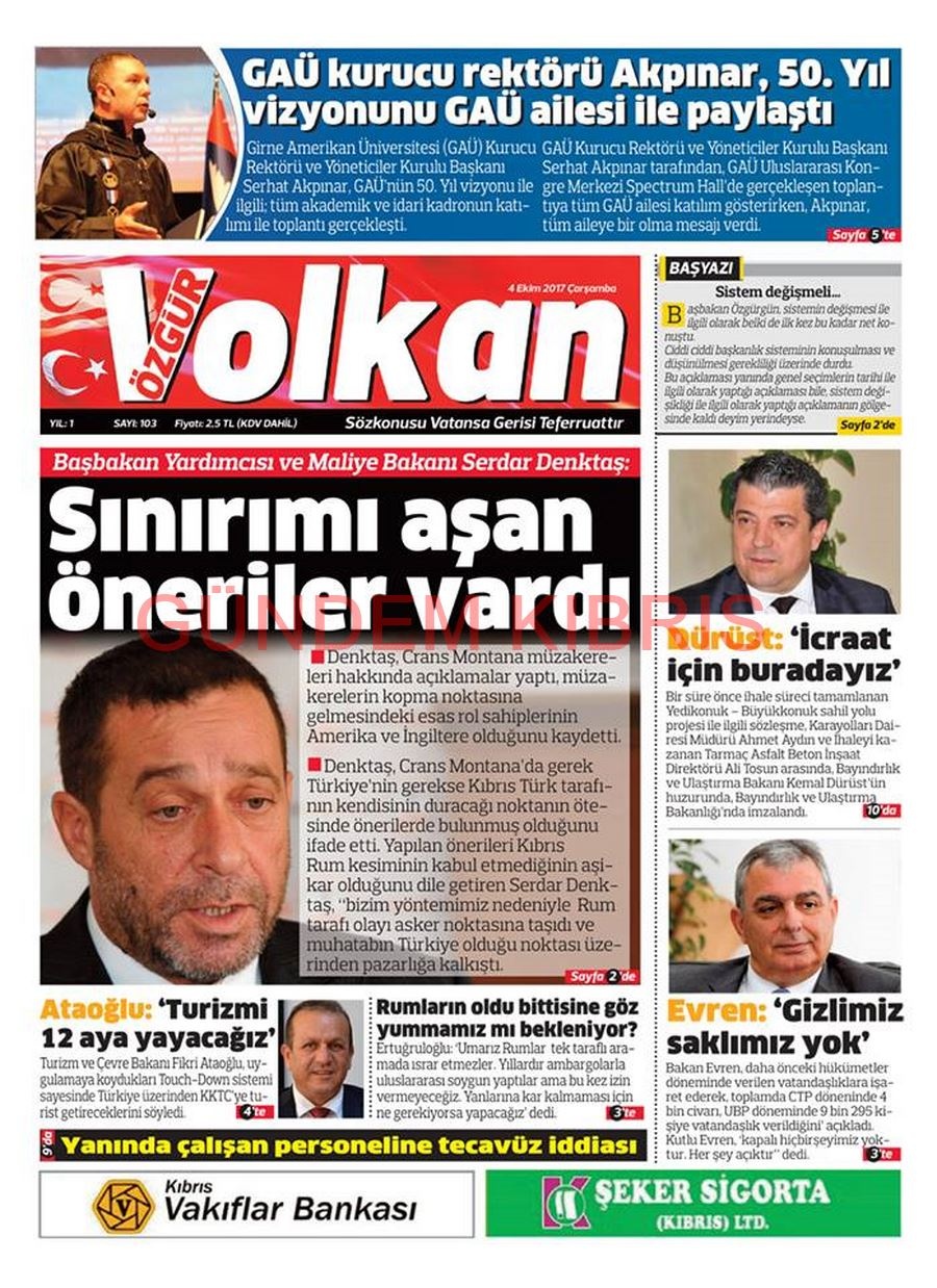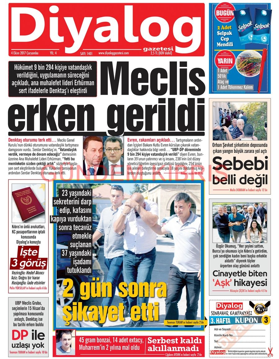 KKTC Gazete Manşetleri 4 Ekim 2017