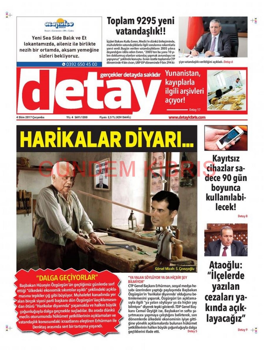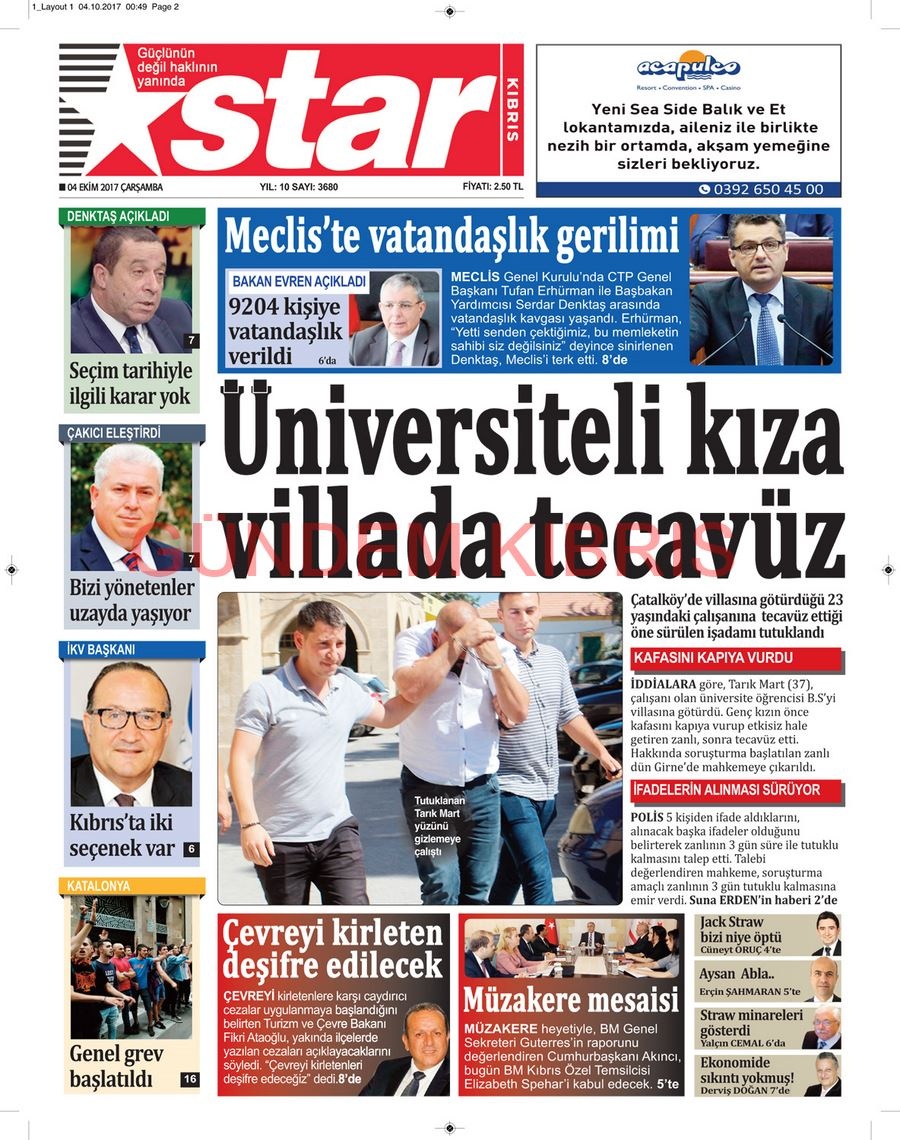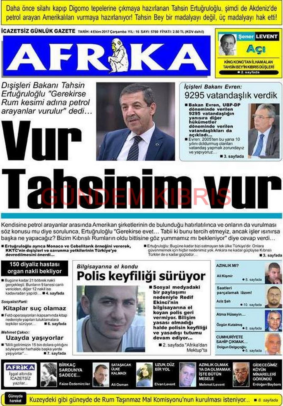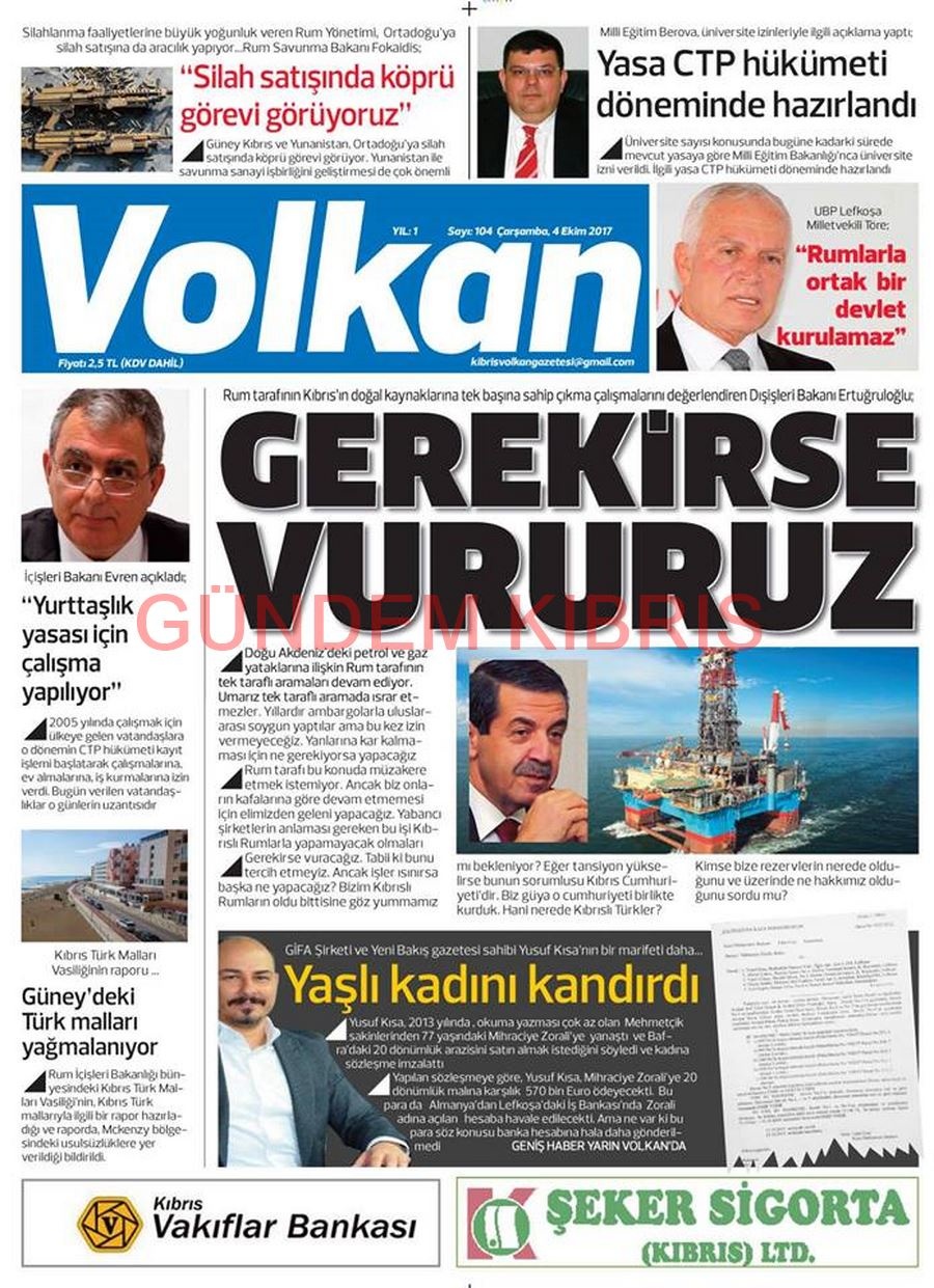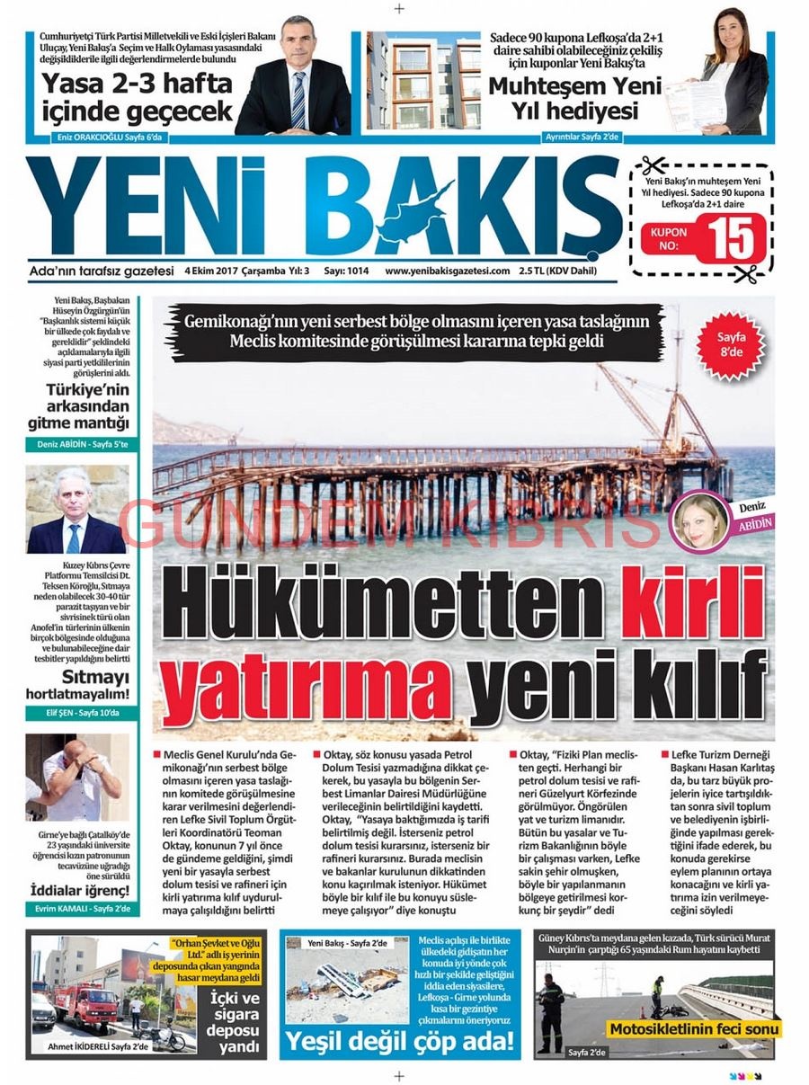 KKTC Gazete Manşetleri 4 Ekim 2017