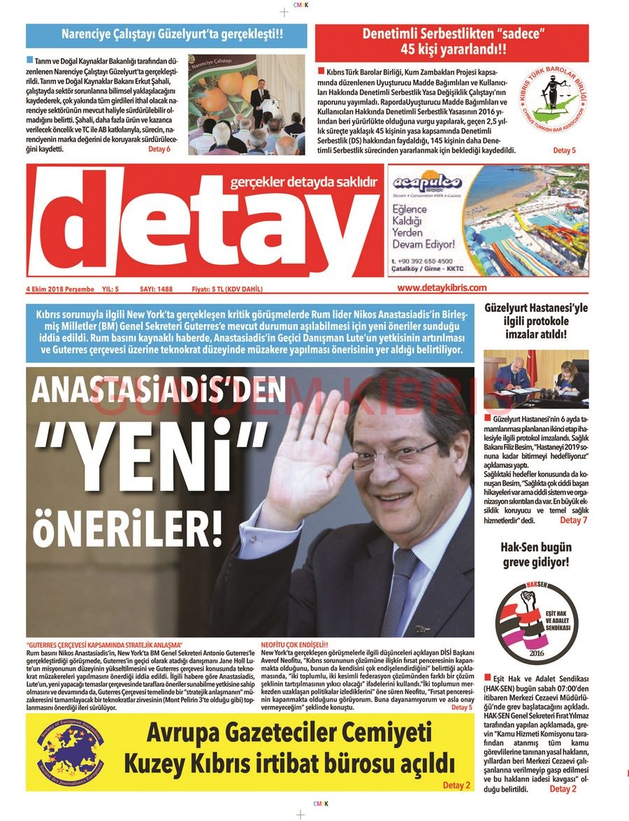 KKTC Gazete Manşetleri 4 Ekim 2018