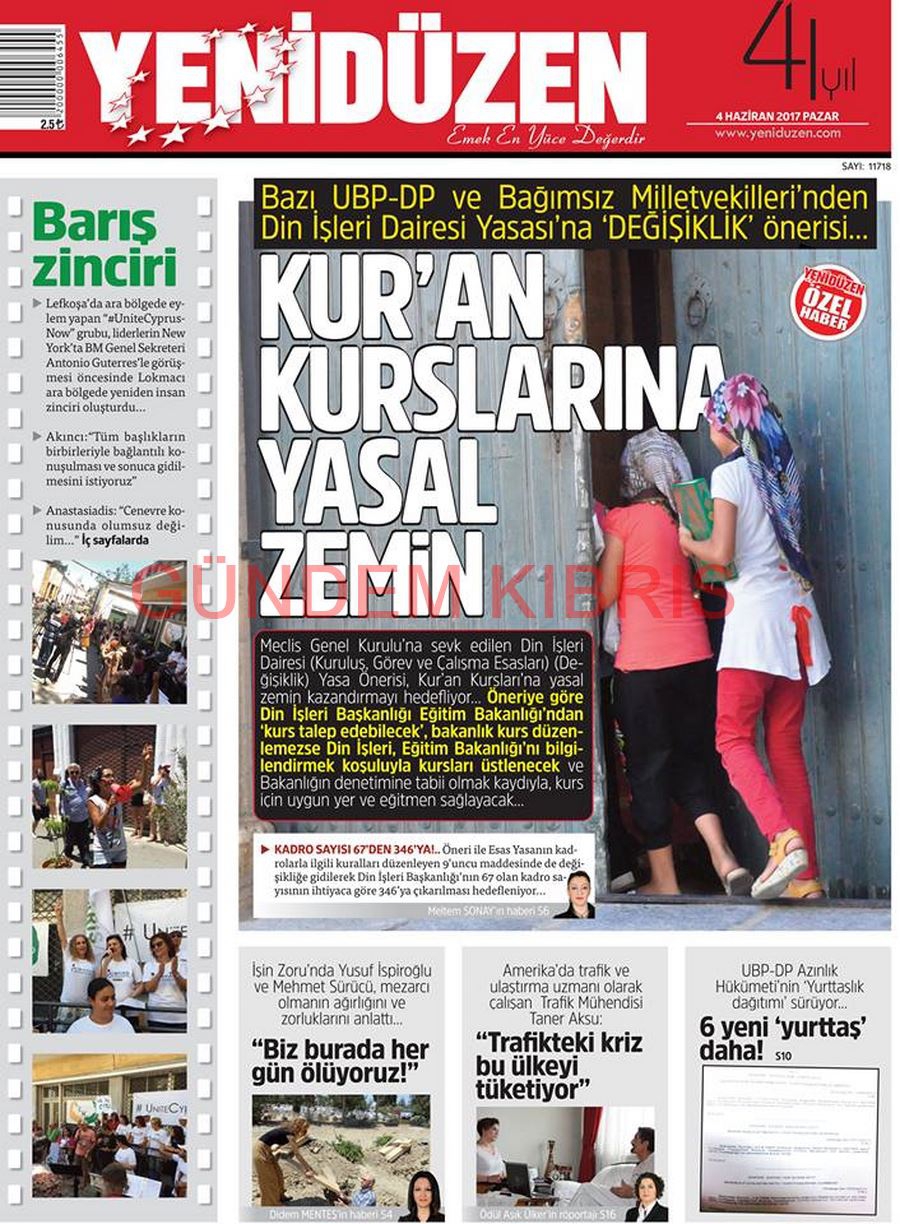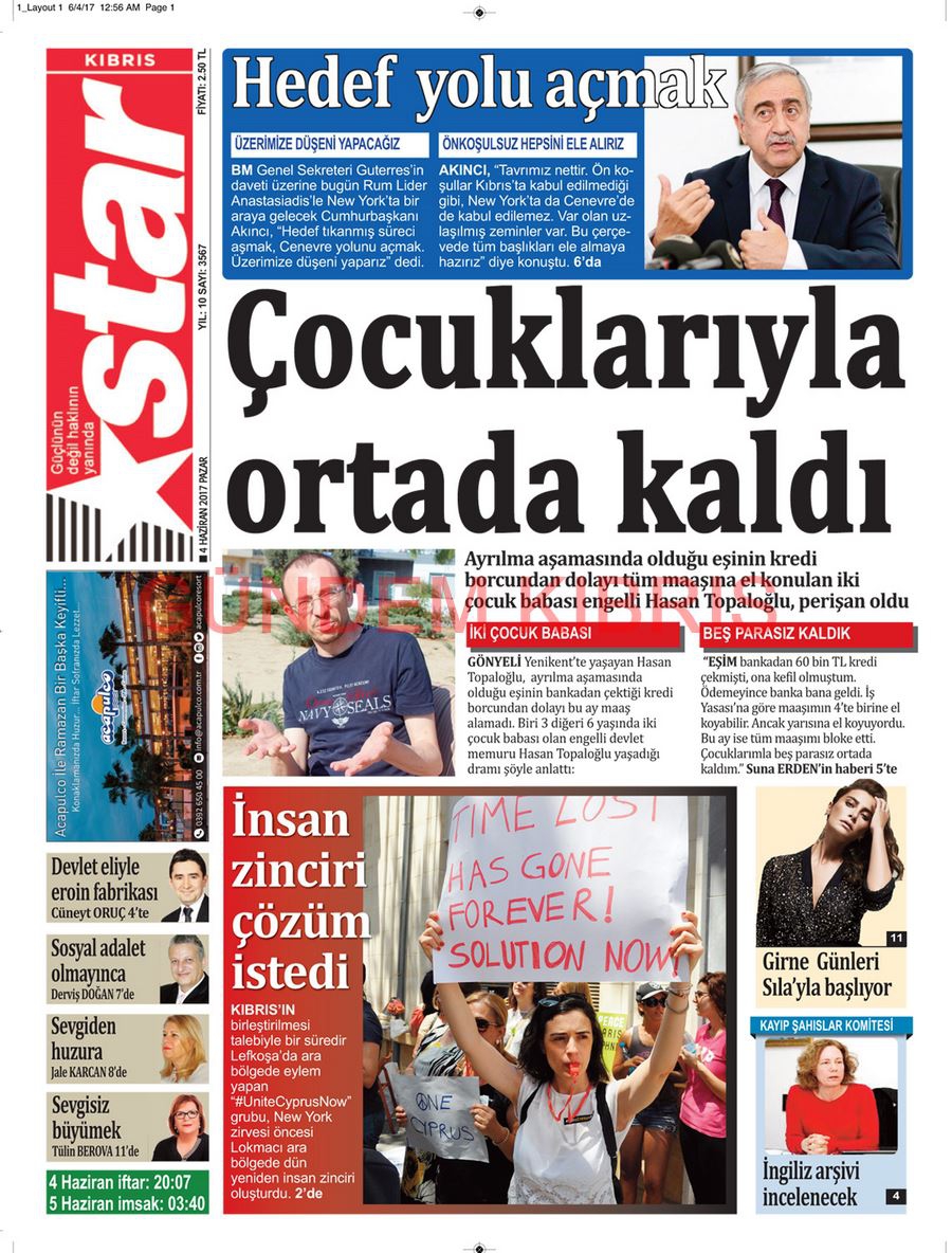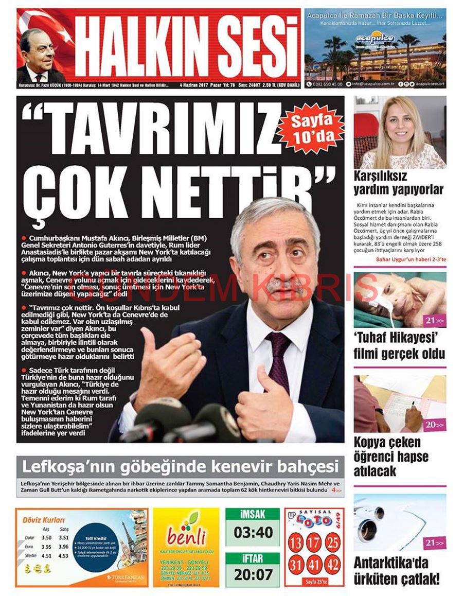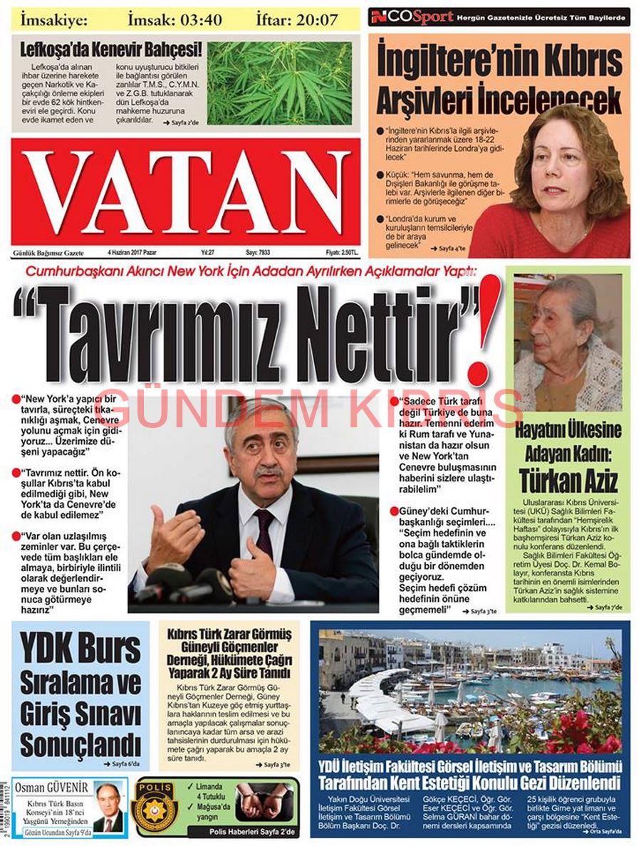 KKTC Gazete Manşetleri 4 Haziran 2017