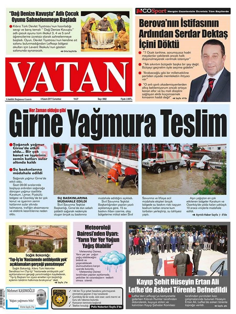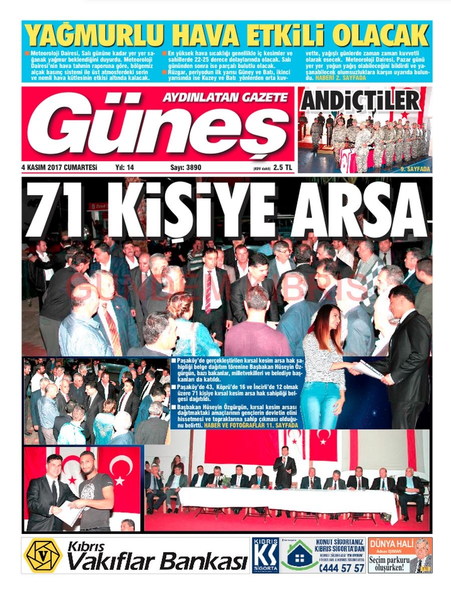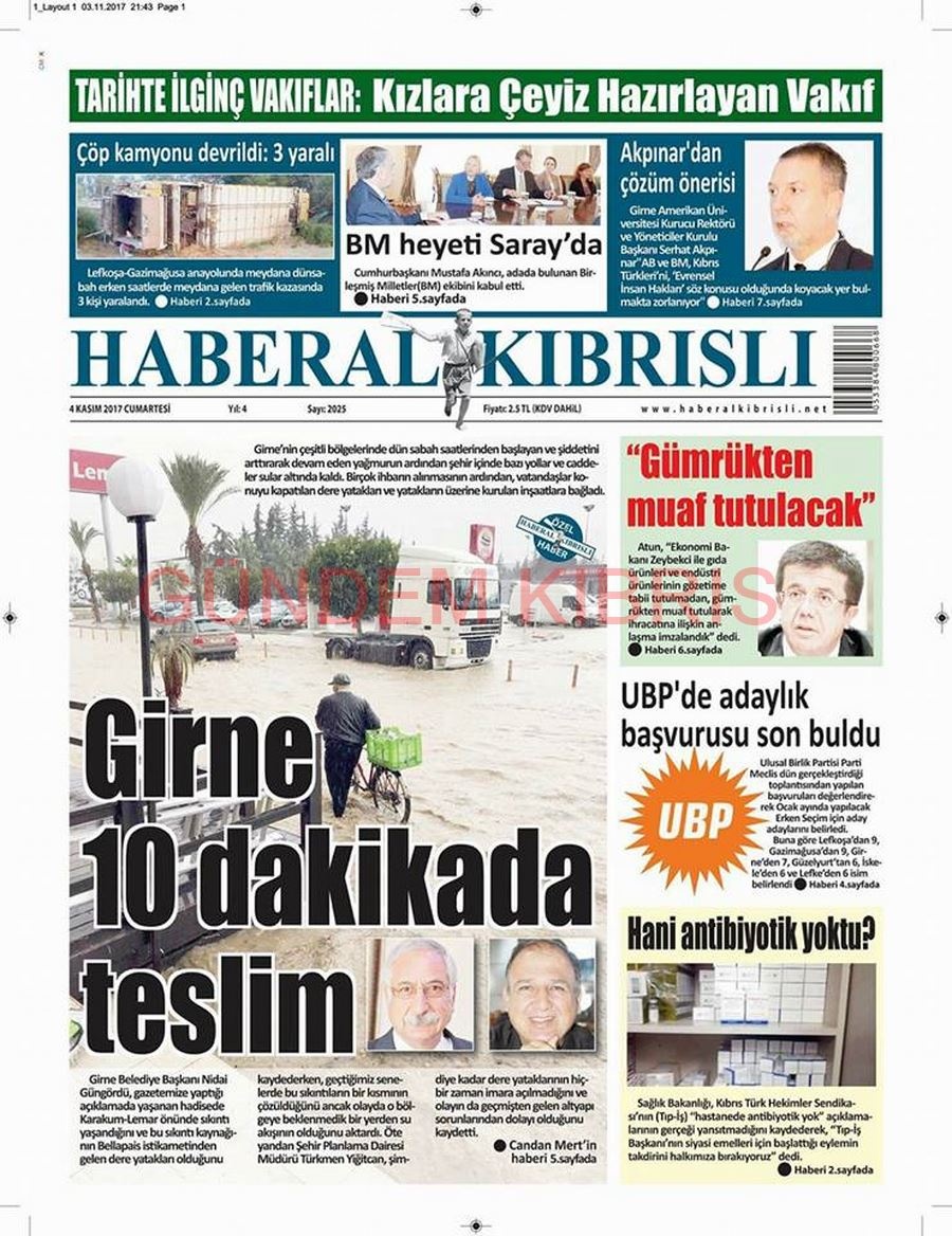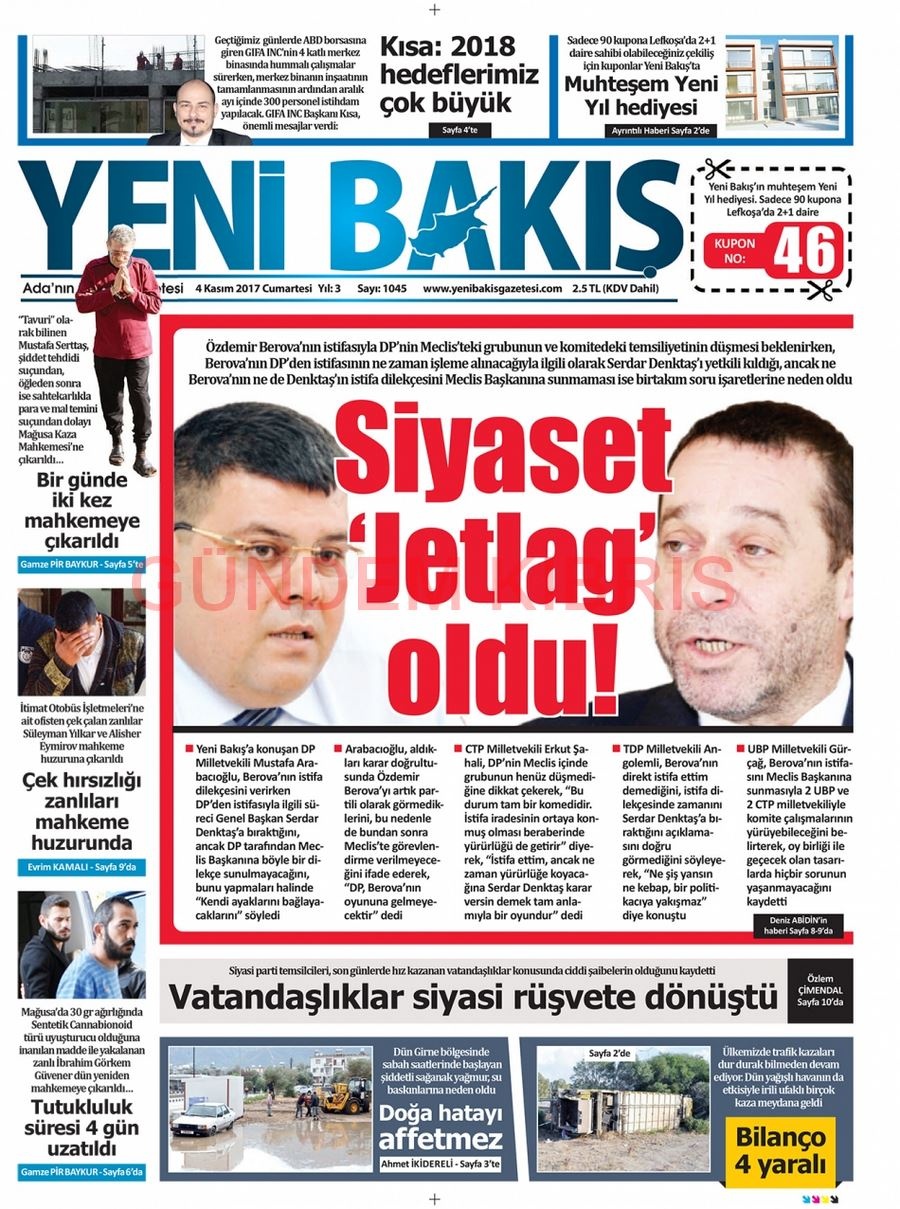 KKTC Gazete Manşetleri 4 Kasım 2017