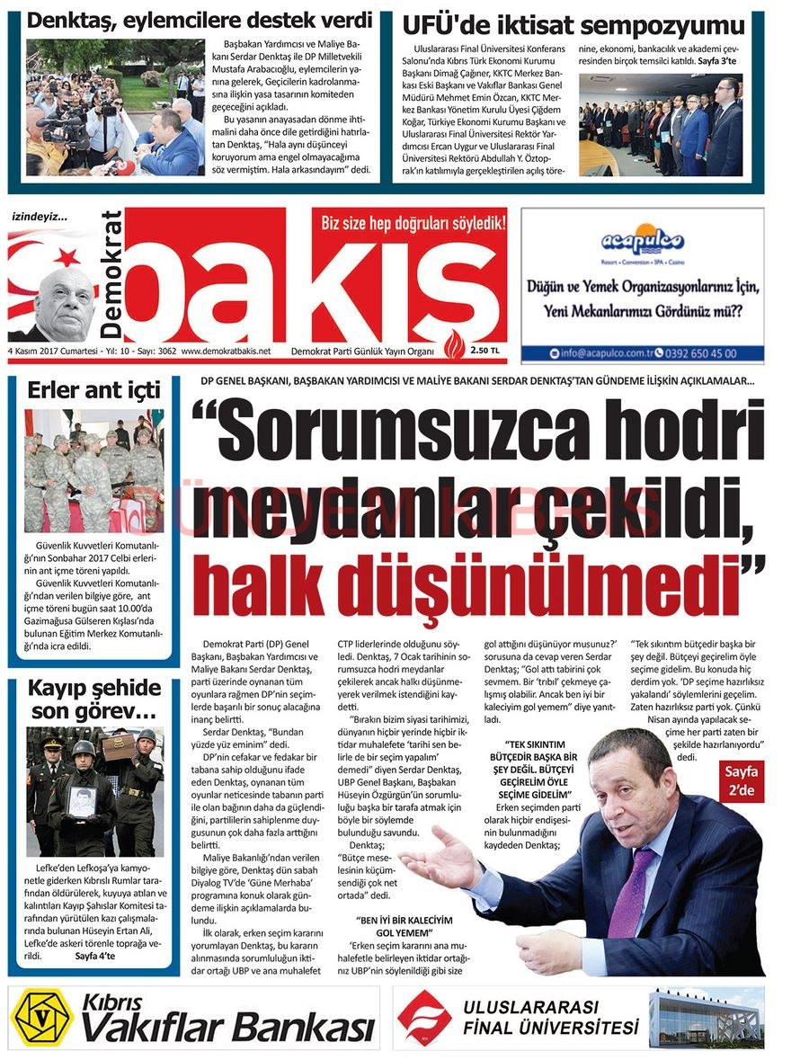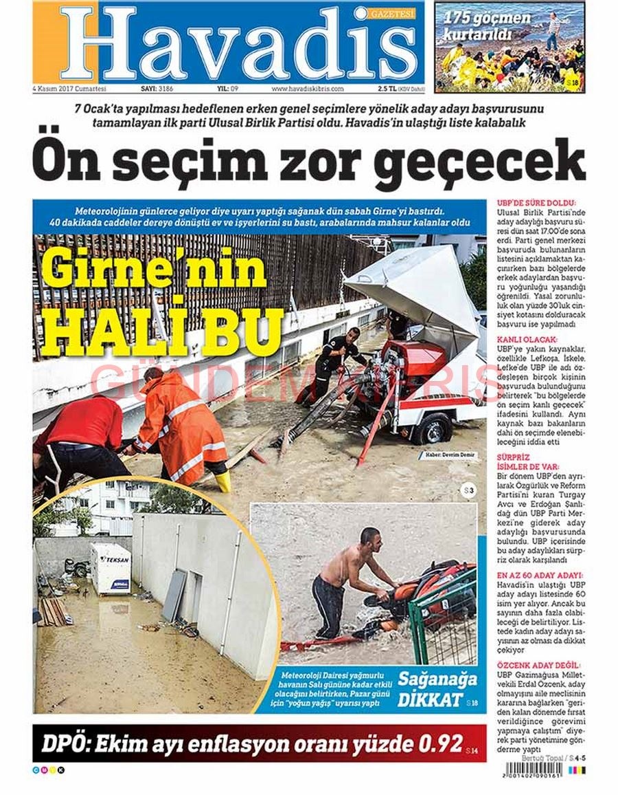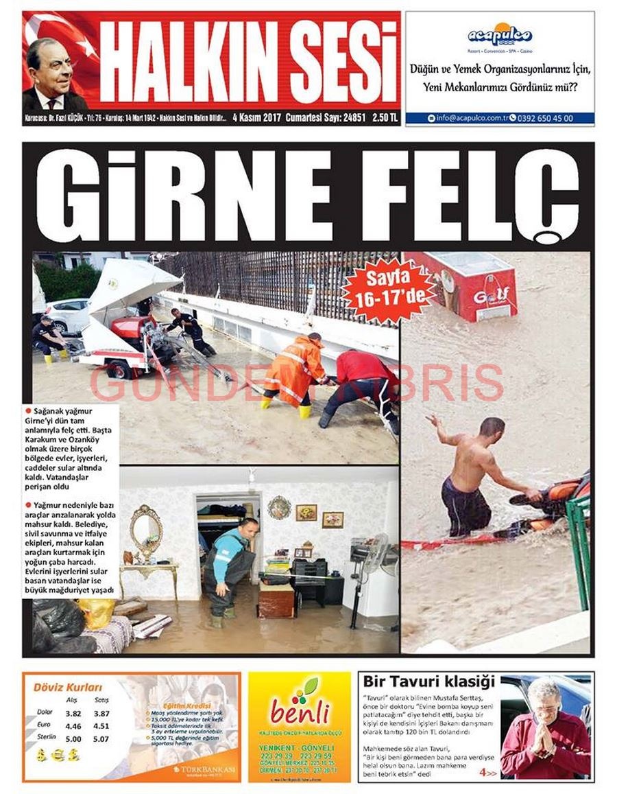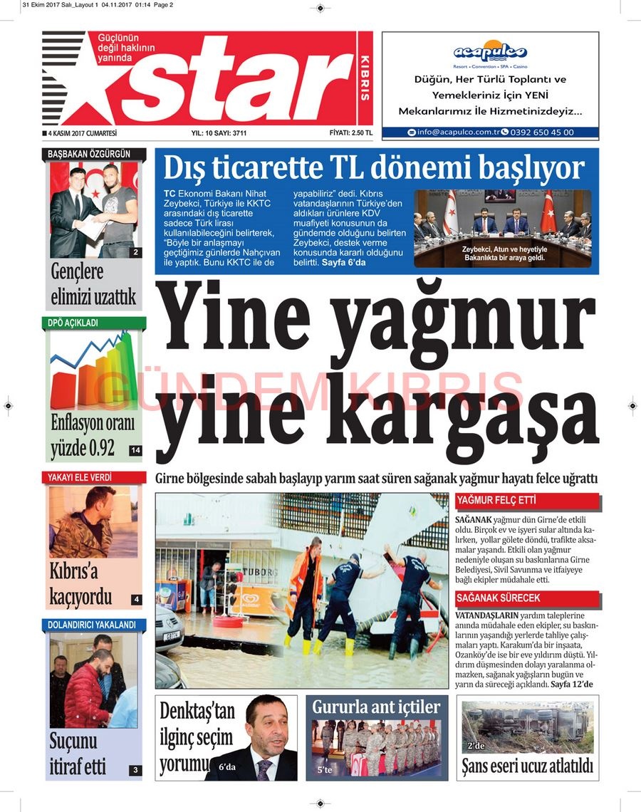 KKTC Gazete Manşetleri 4 Kasım 2017