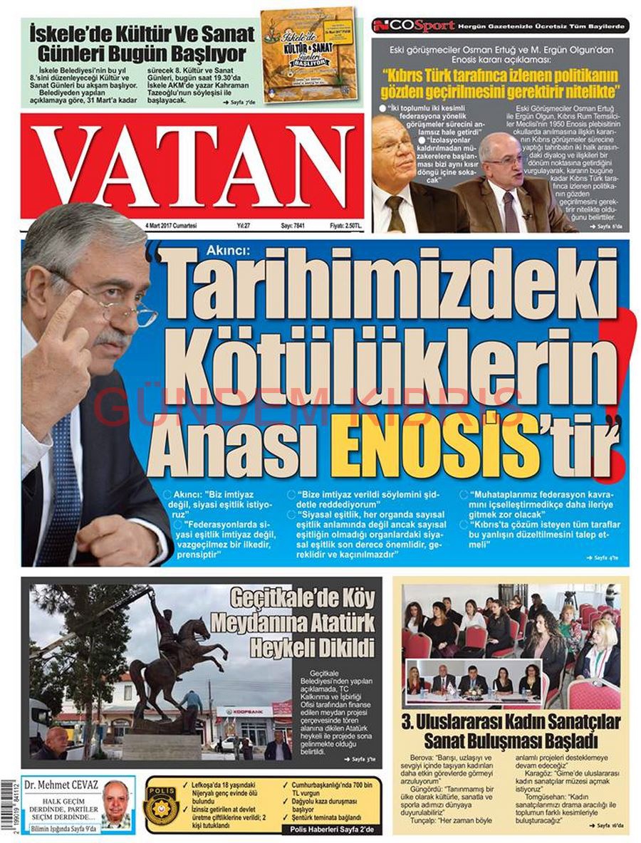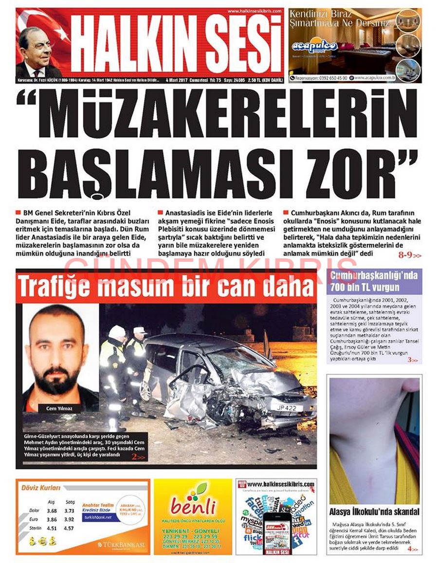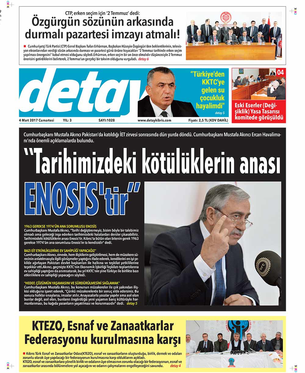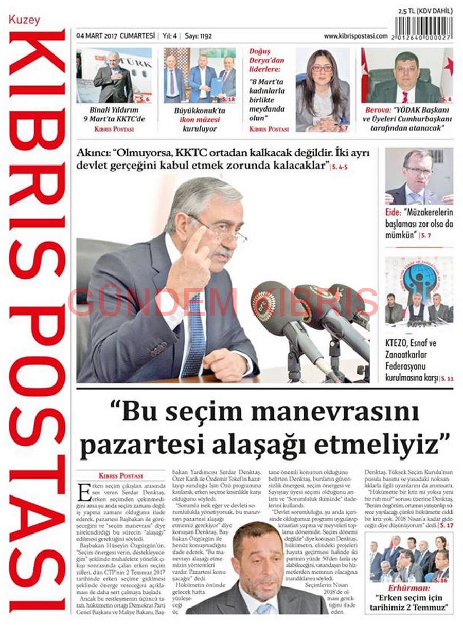 KKTC Gazete Manşetleri 4 Mart 2017
