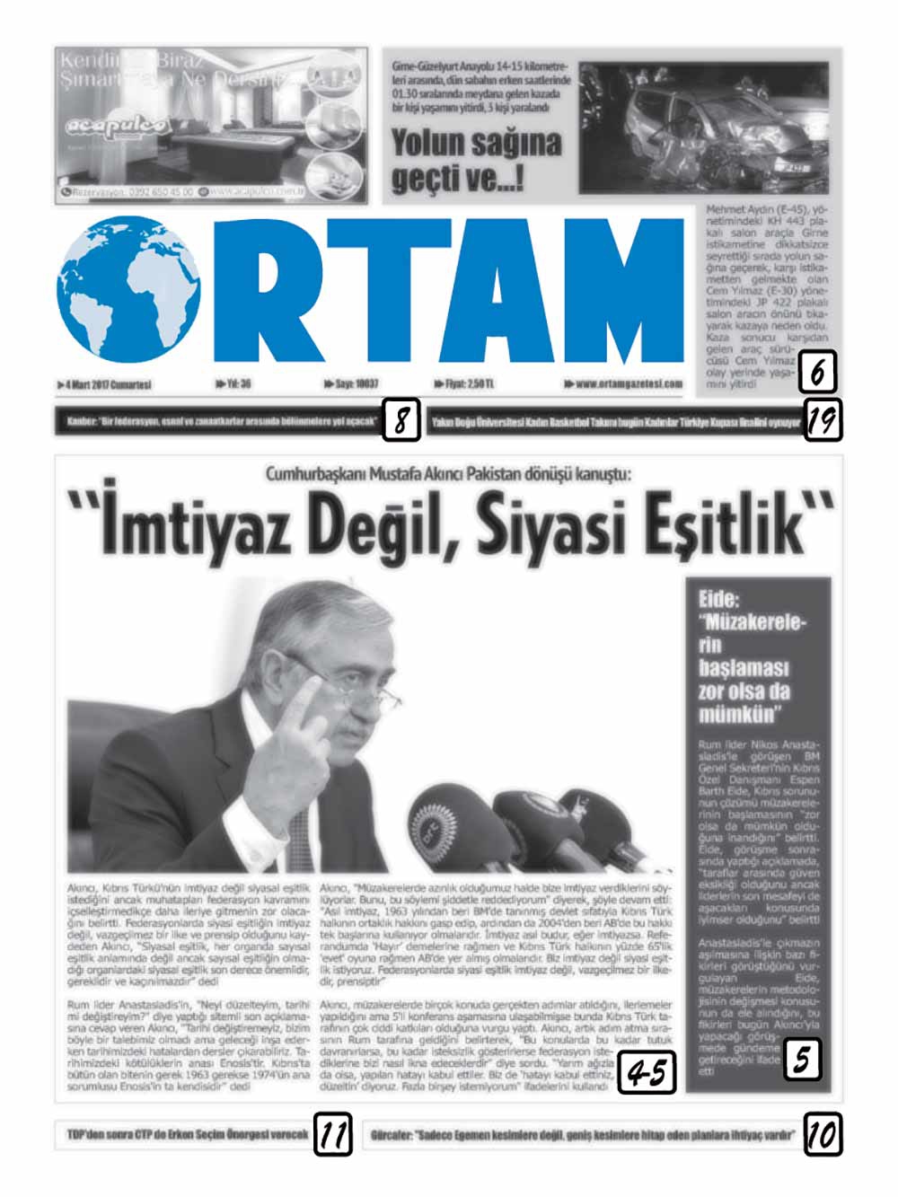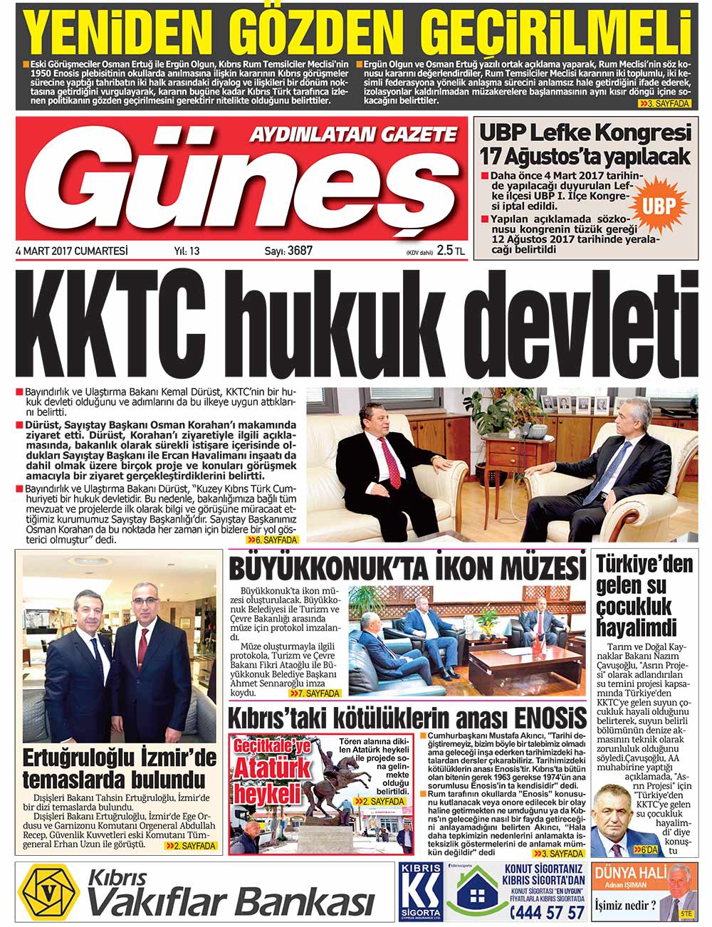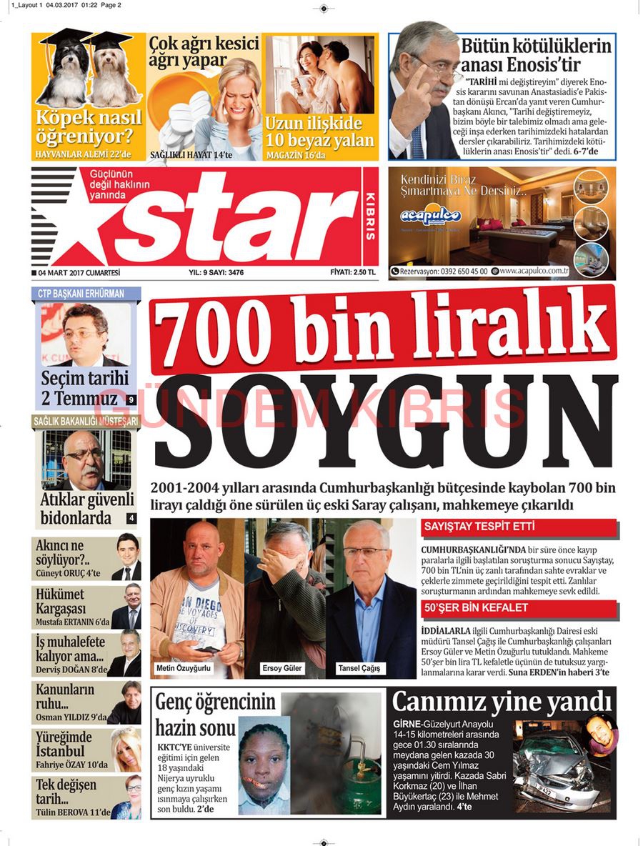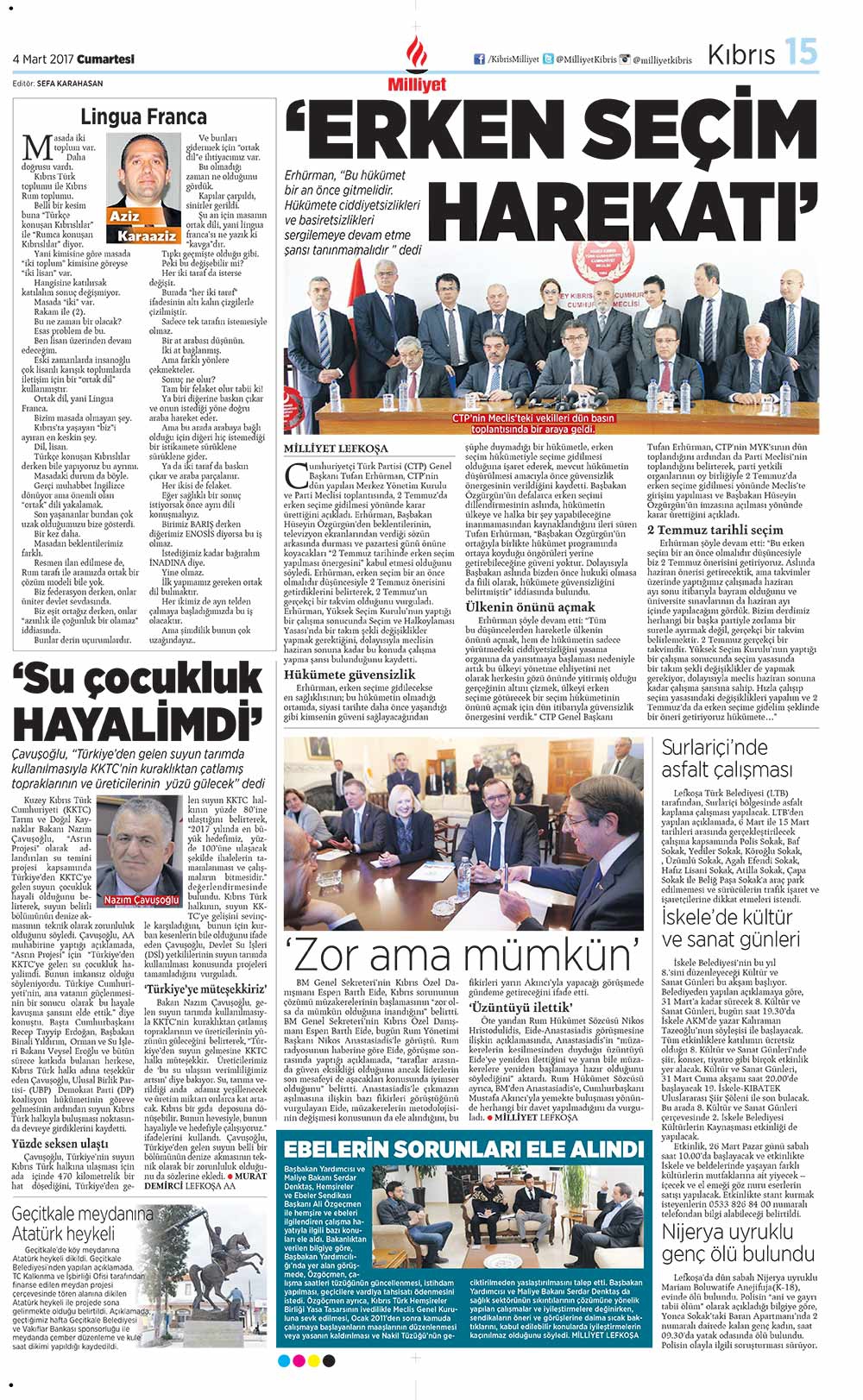 KKTC Gazete Manşetleri 4 Mart 2017