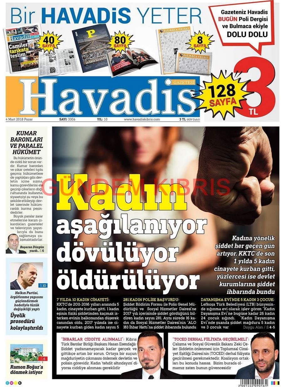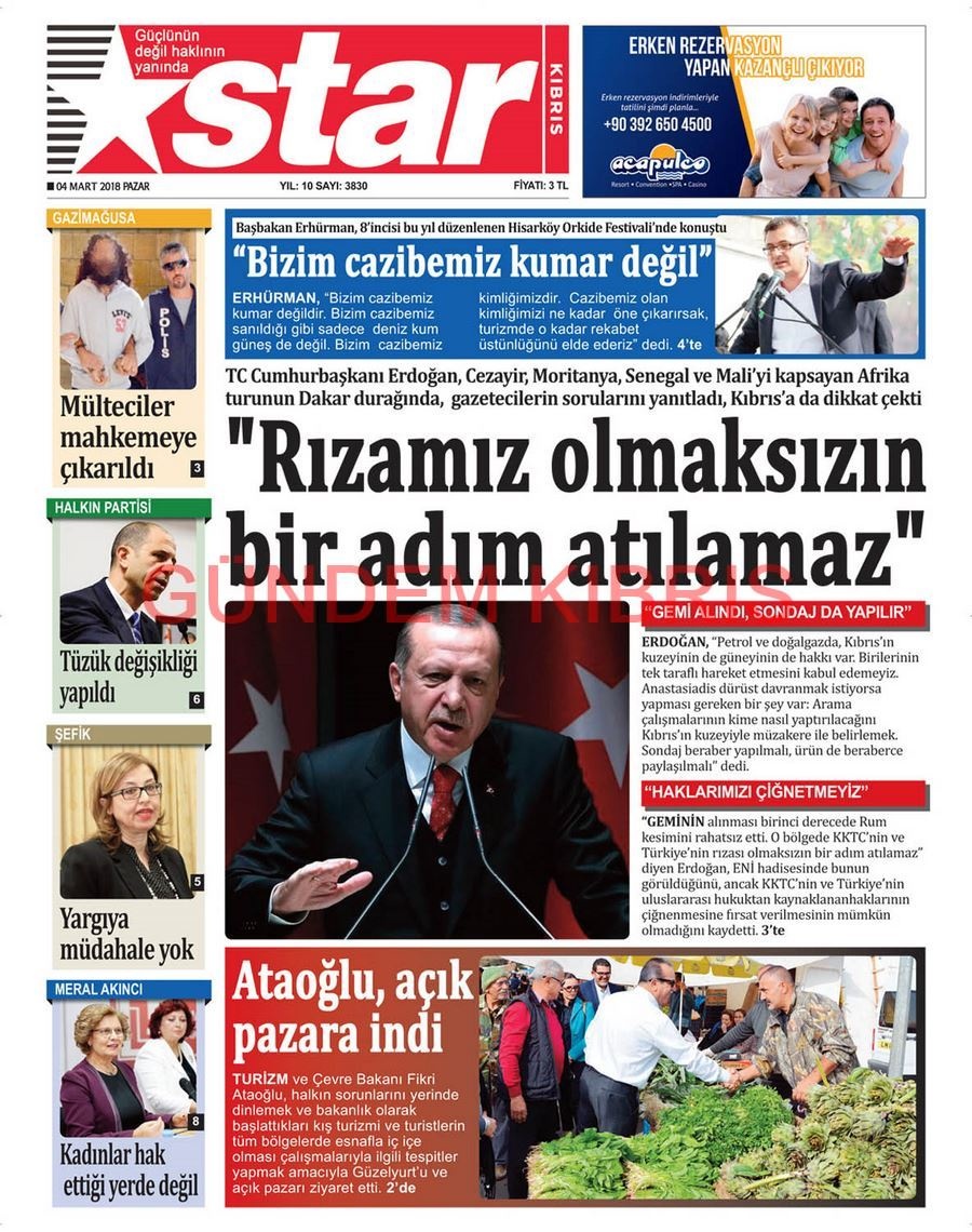 KKTC Gazete Manşetleri 4 Mart 2018