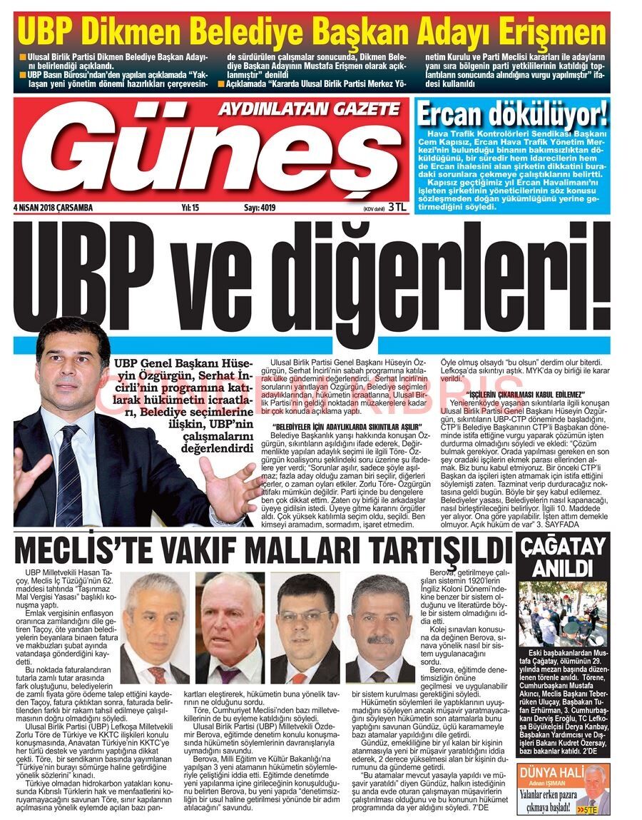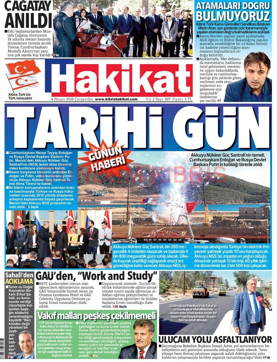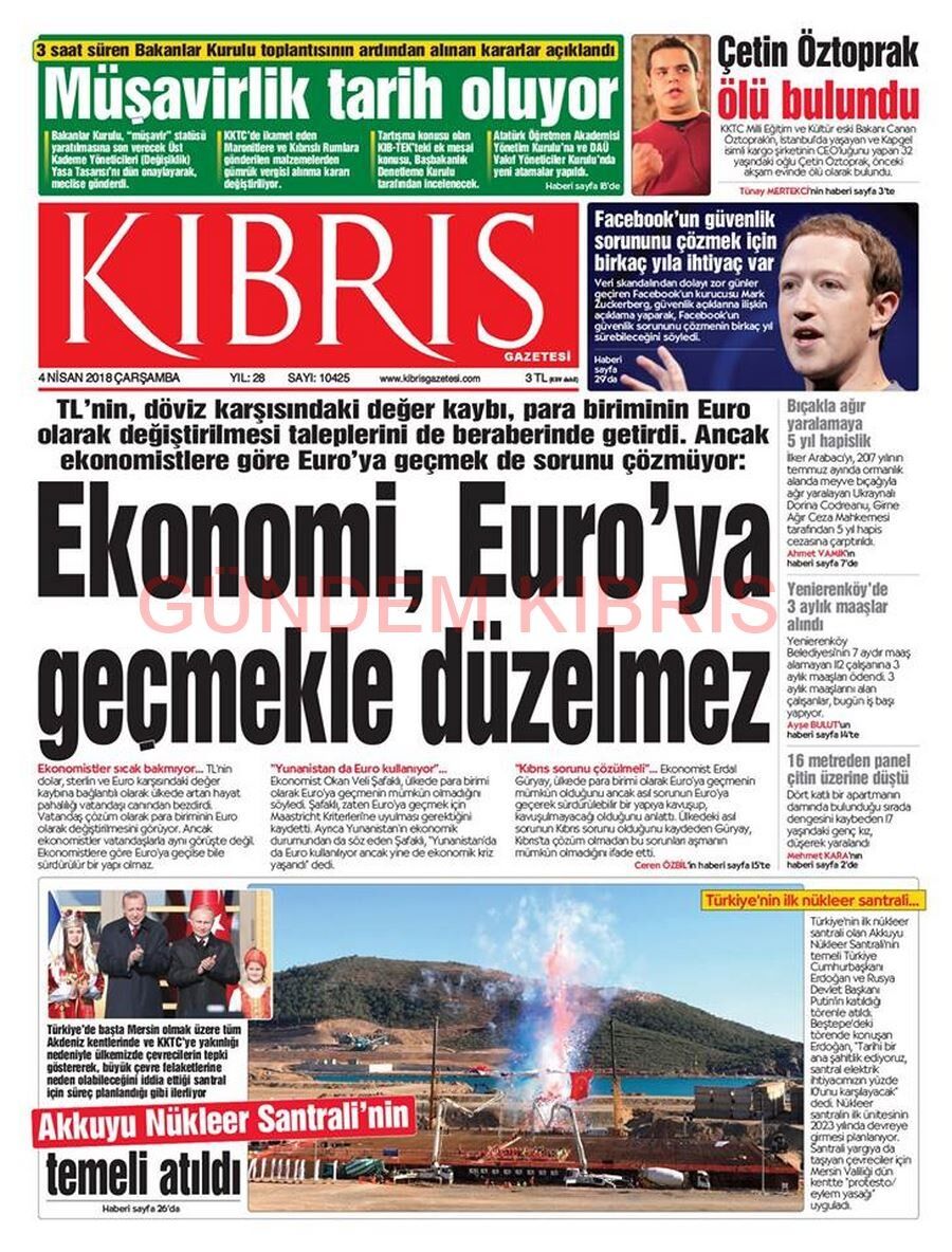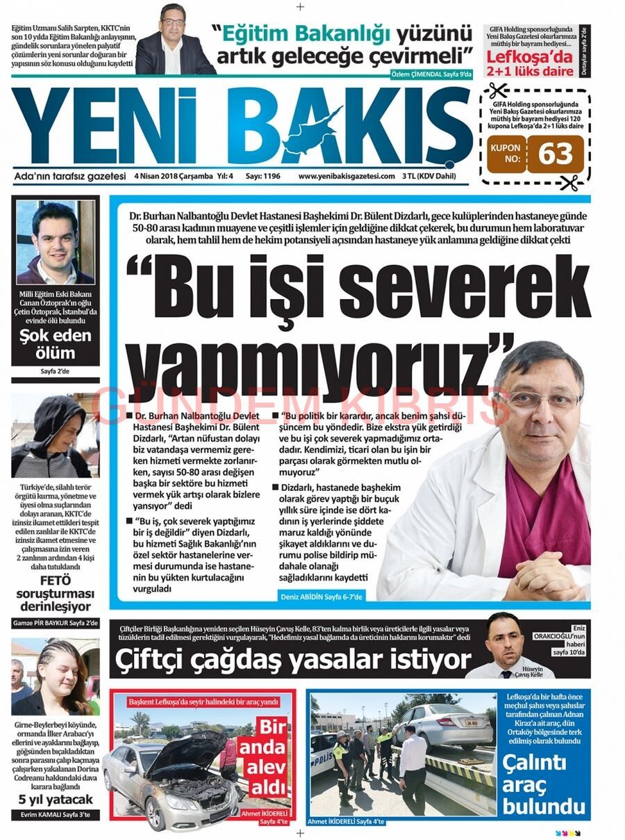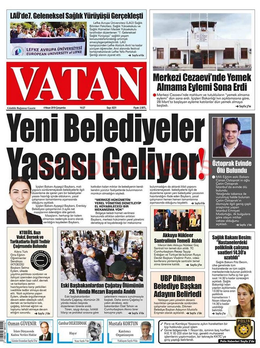 KKTC Gazete Manşetleri 4 Nisan 2018