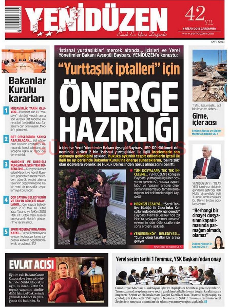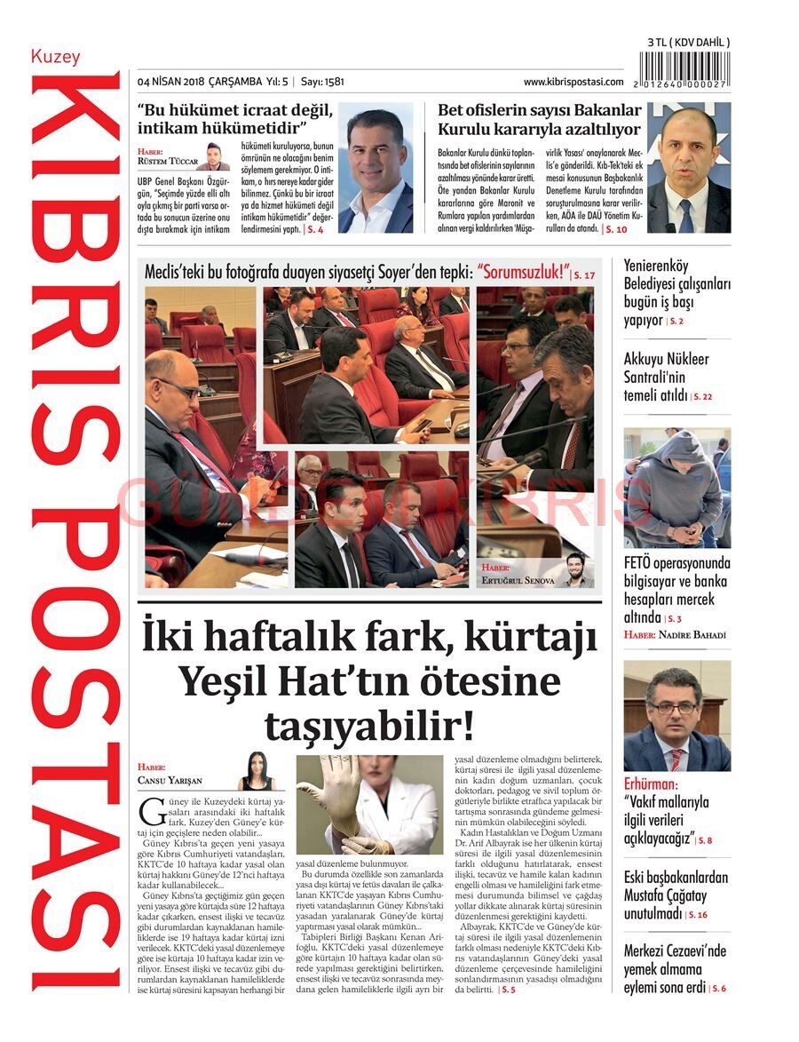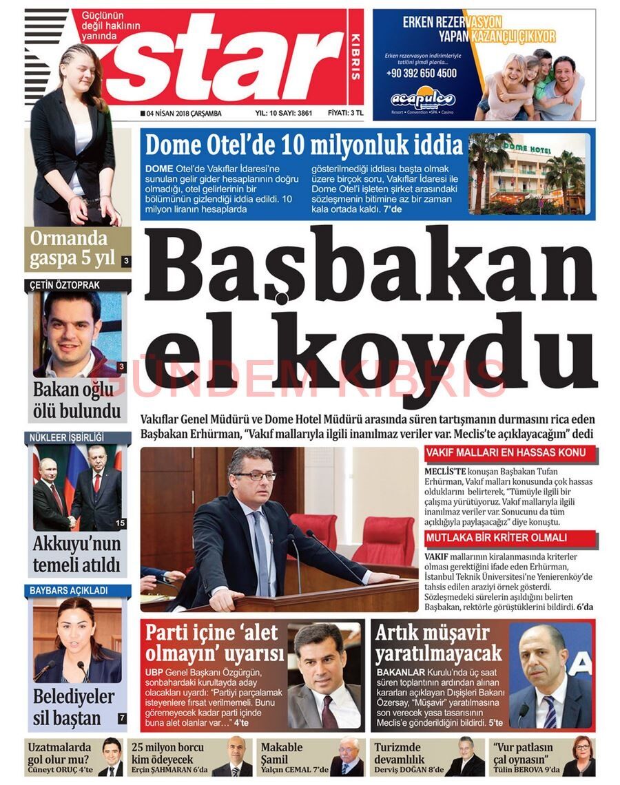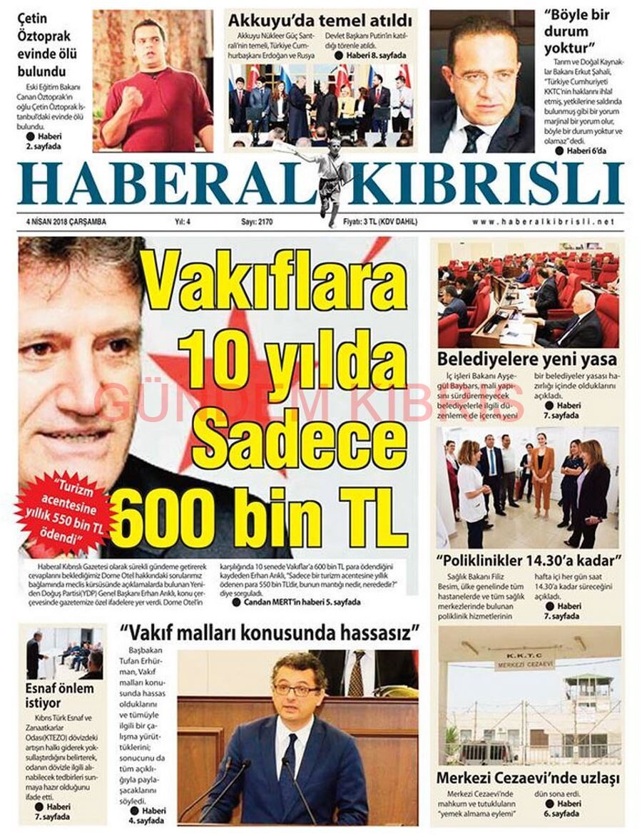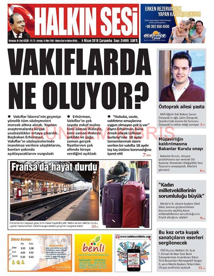 KKTC Gazete Manşetleri 4 Nisan 2018