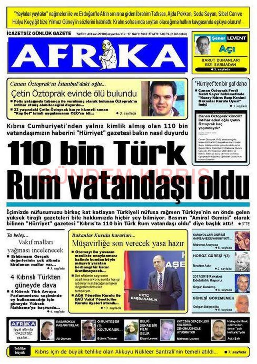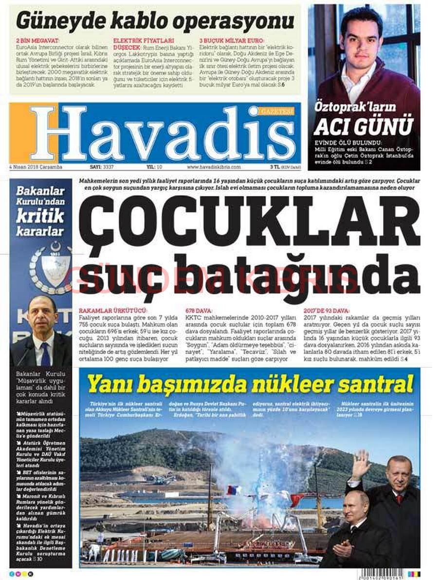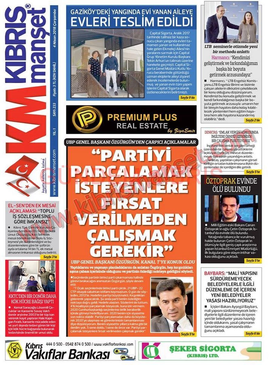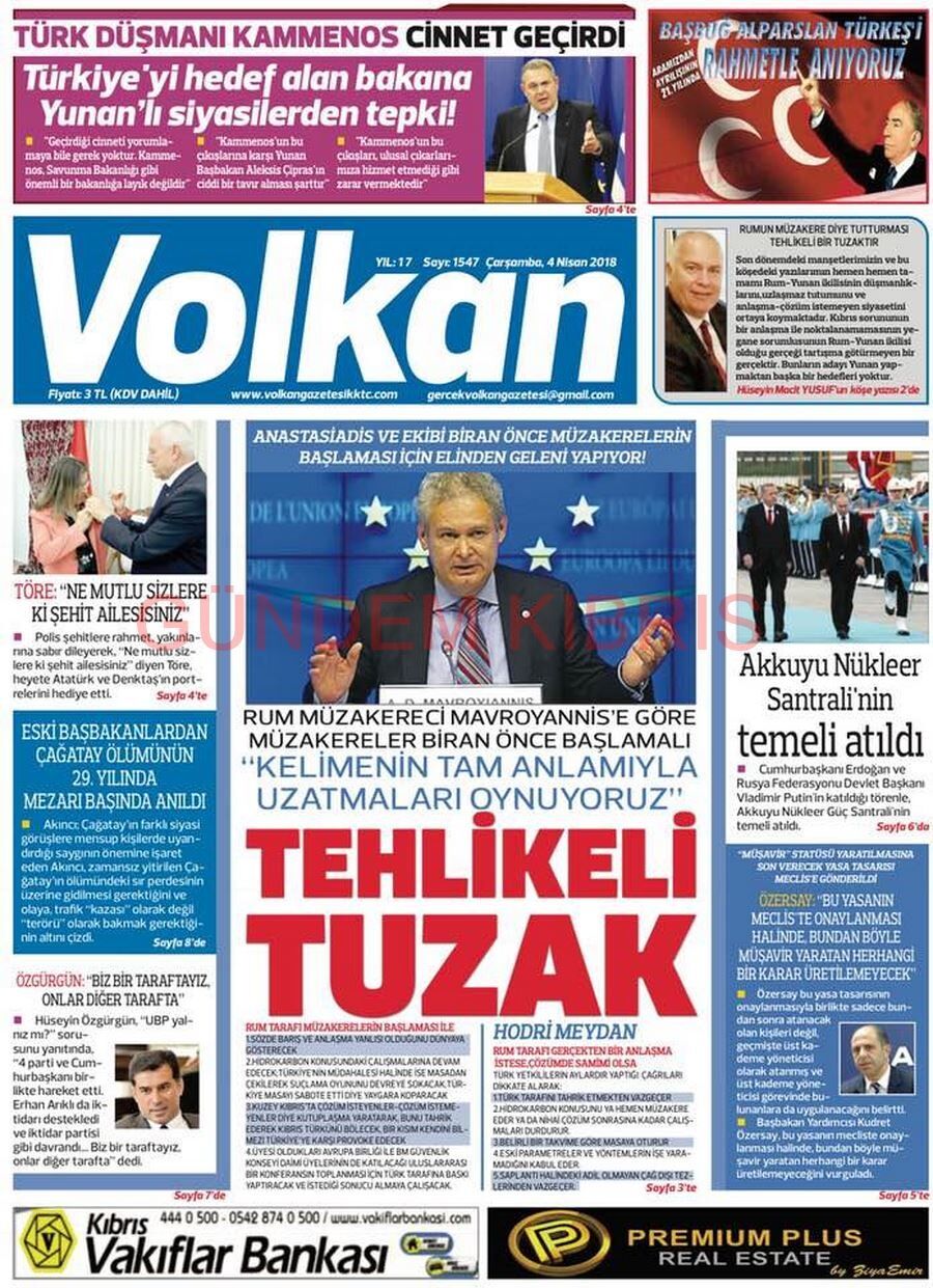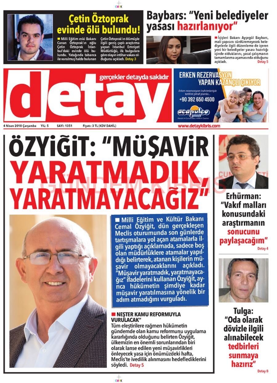 KKTC Gazete Manşetleri 4 Nisan 2018