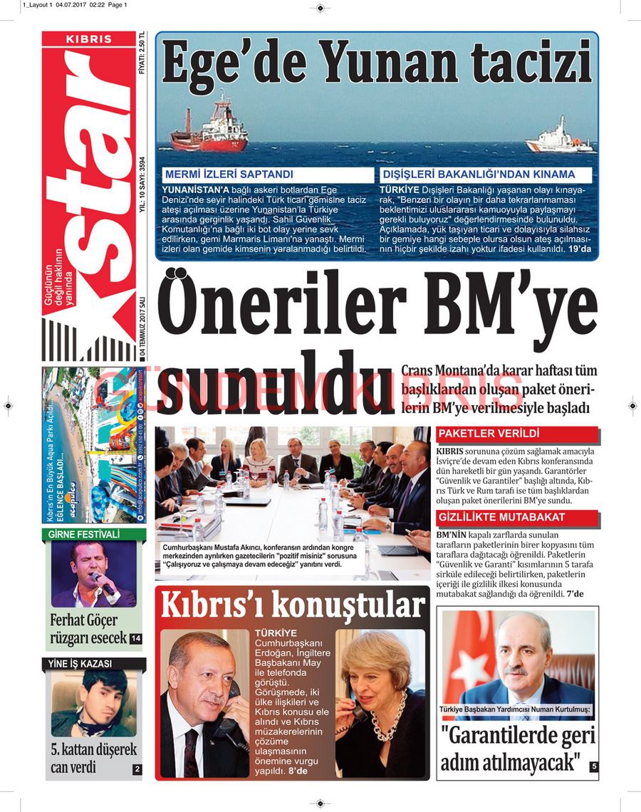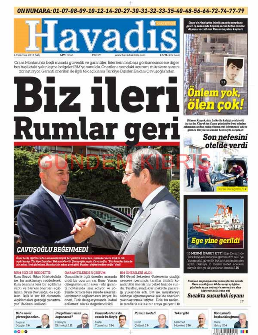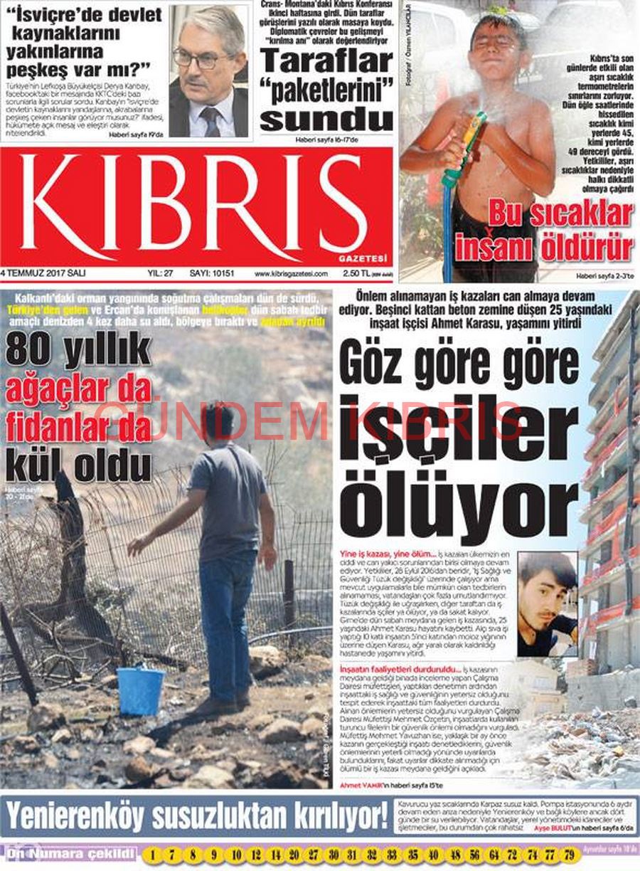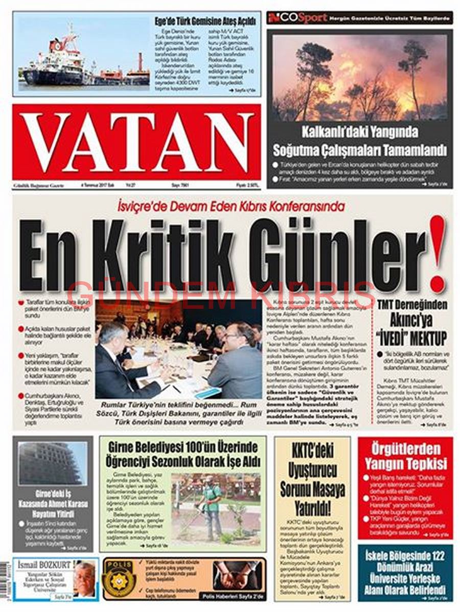 KKTC Gazete Manşetleri 4 Temmuz 2017