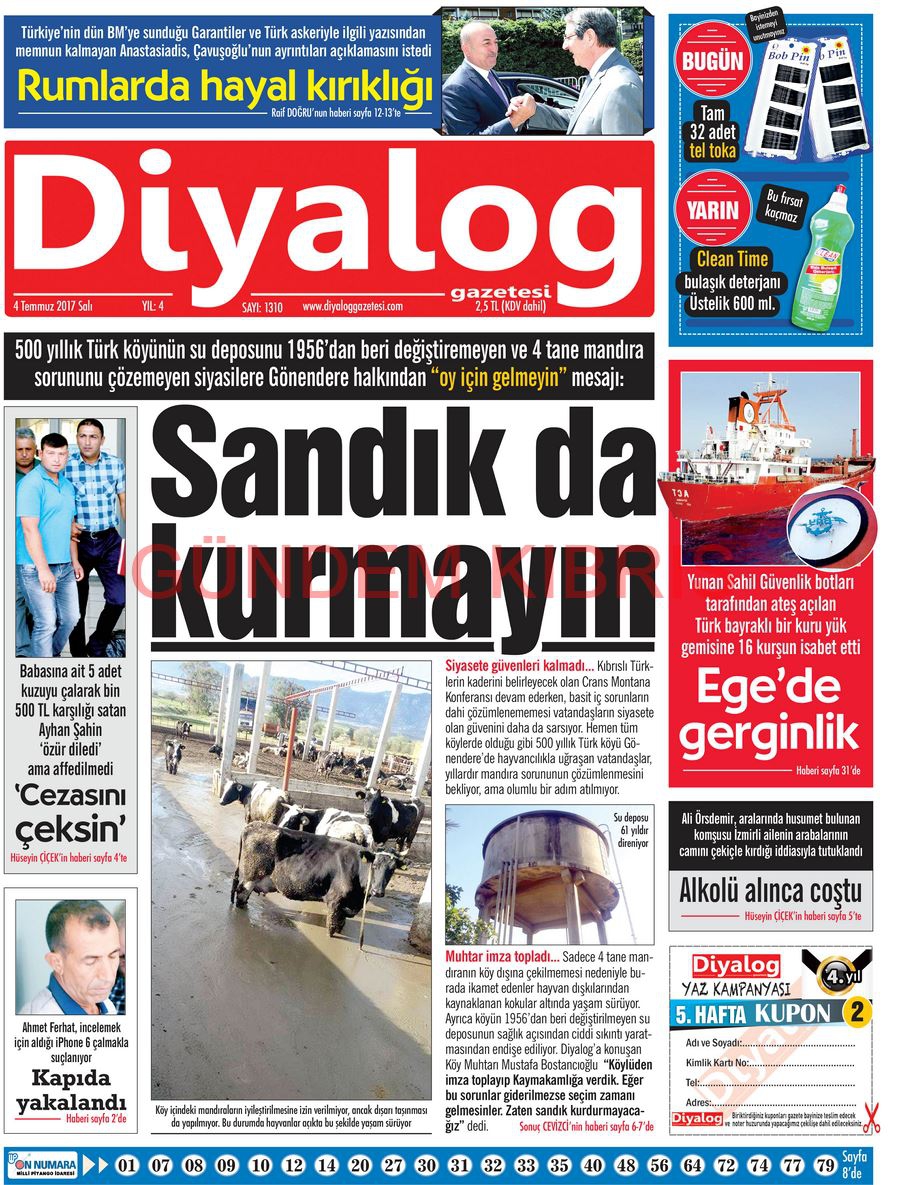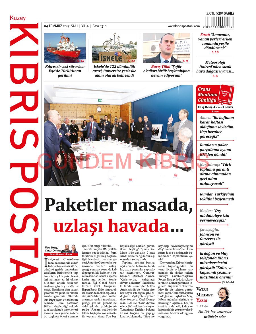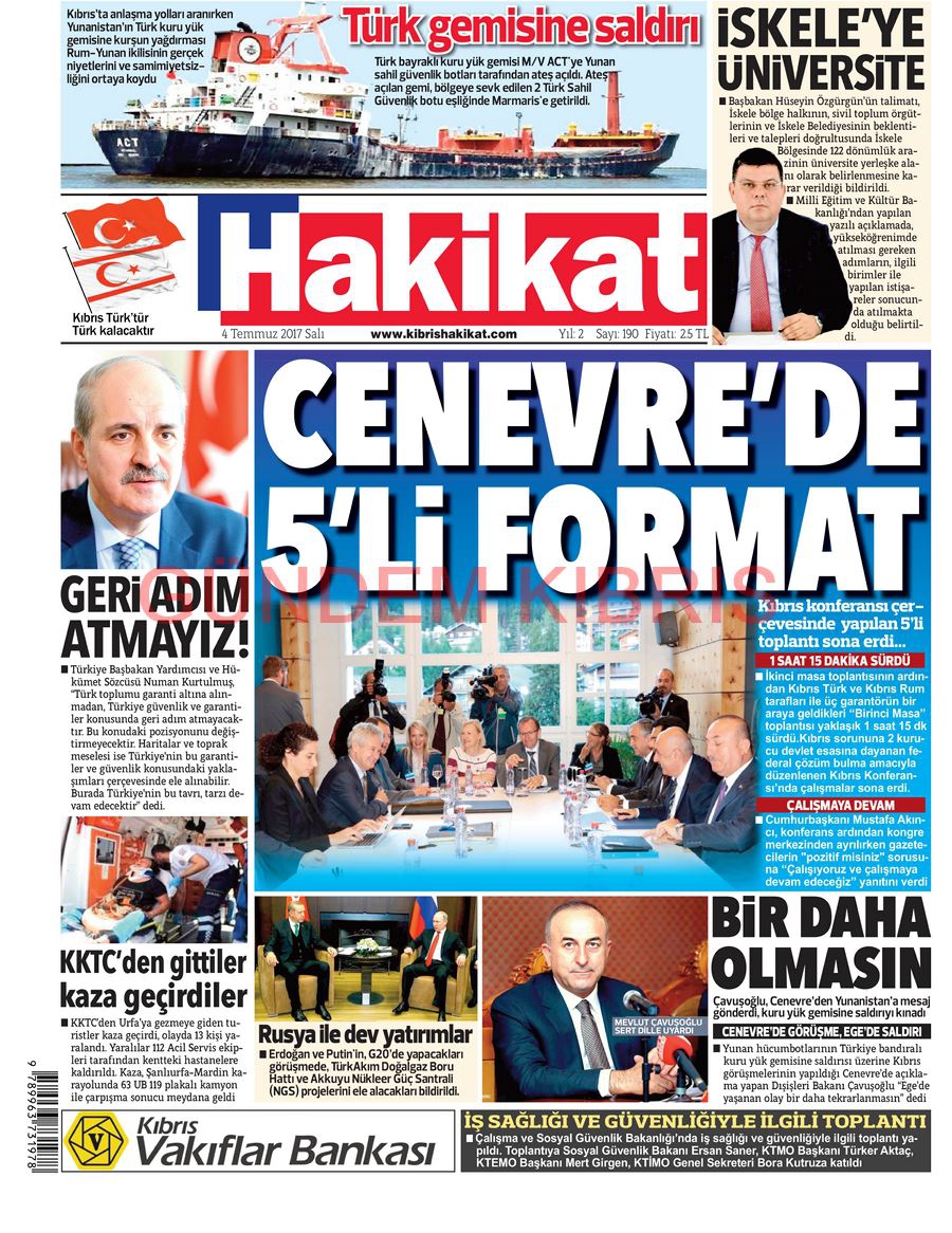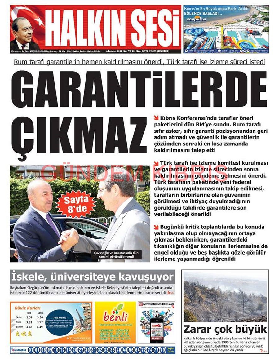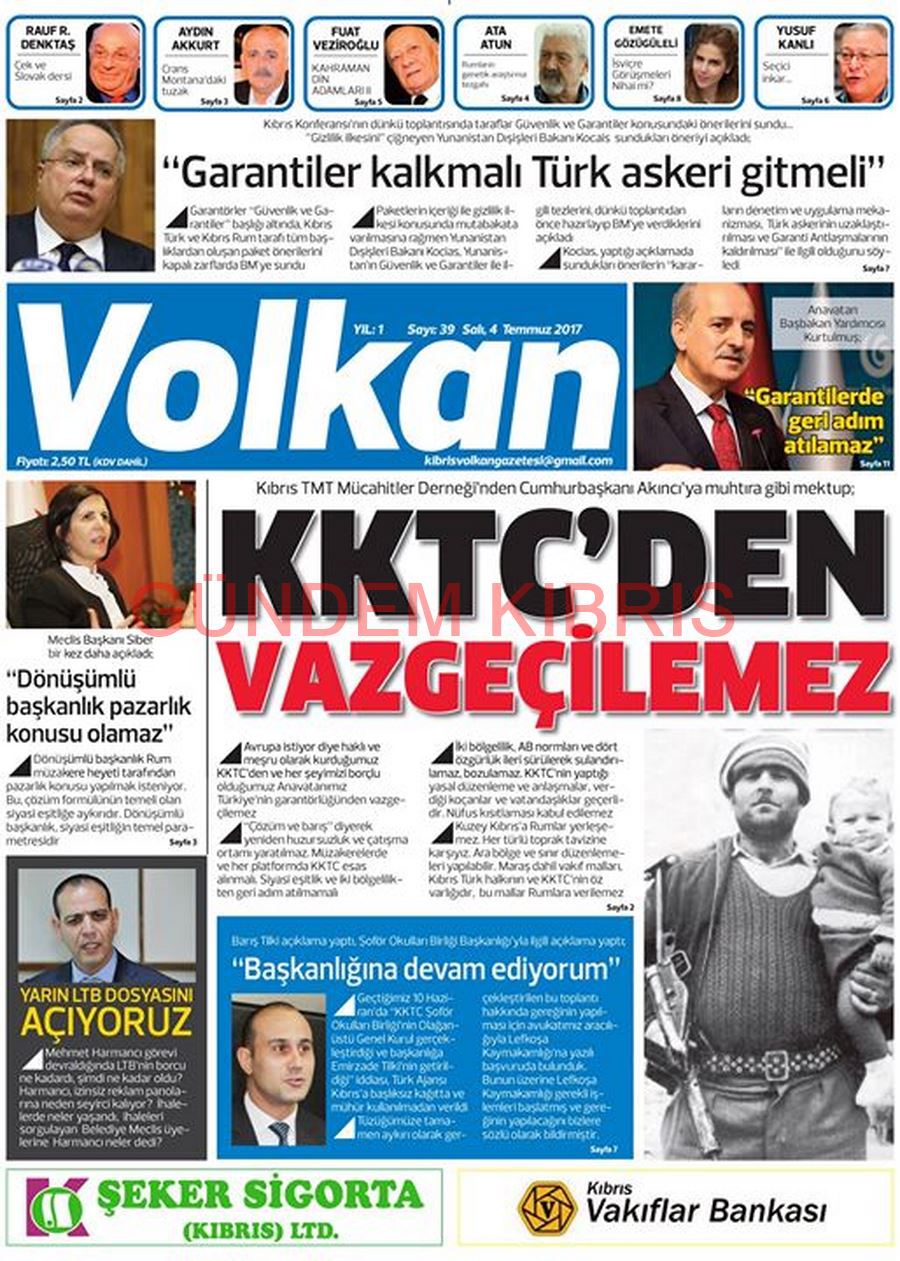 KKTC Gazete Manşetleri 4 Temmuz 2017