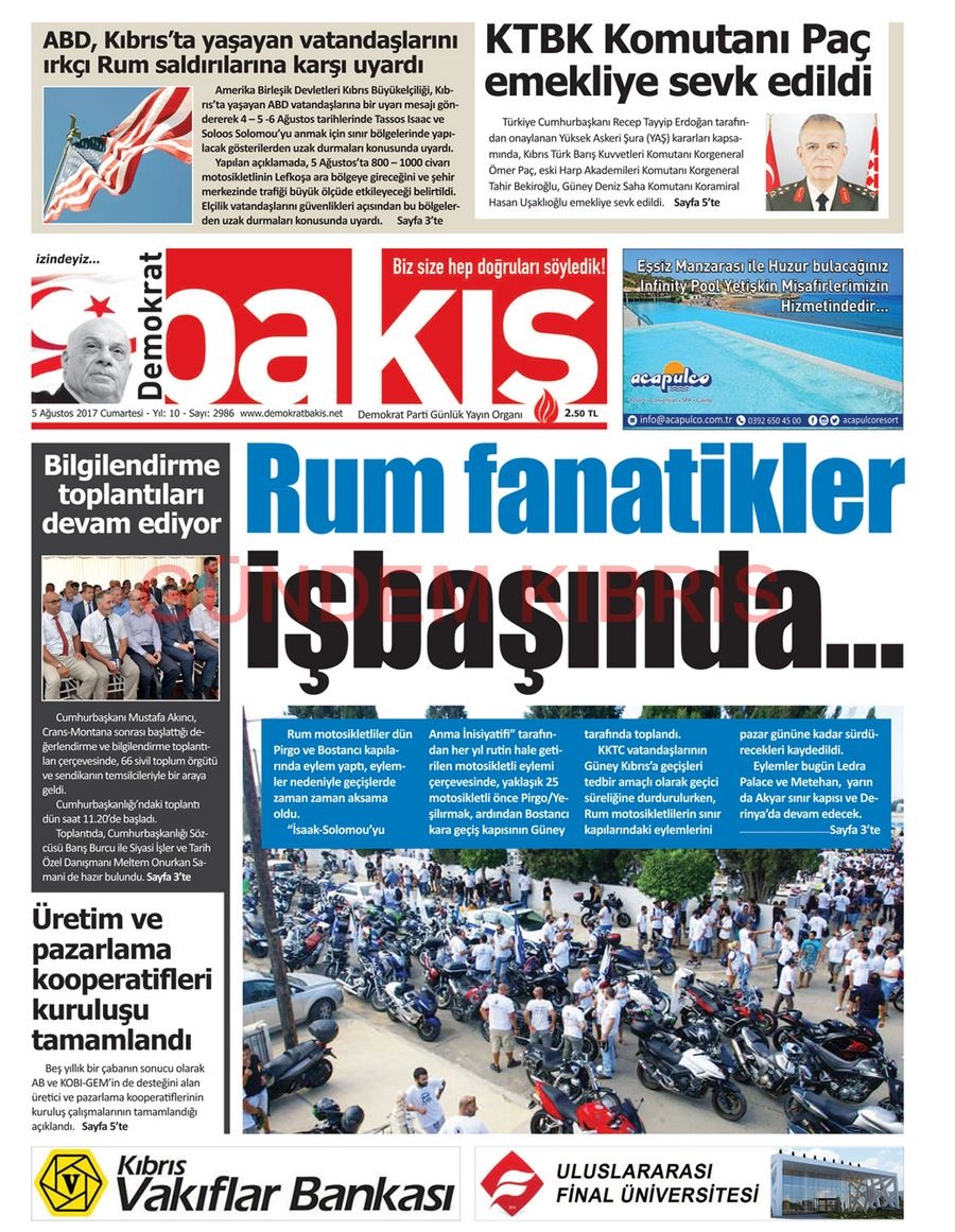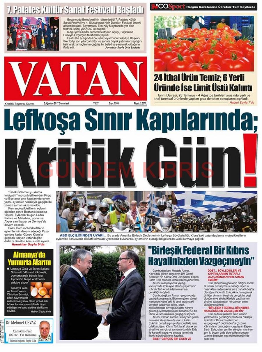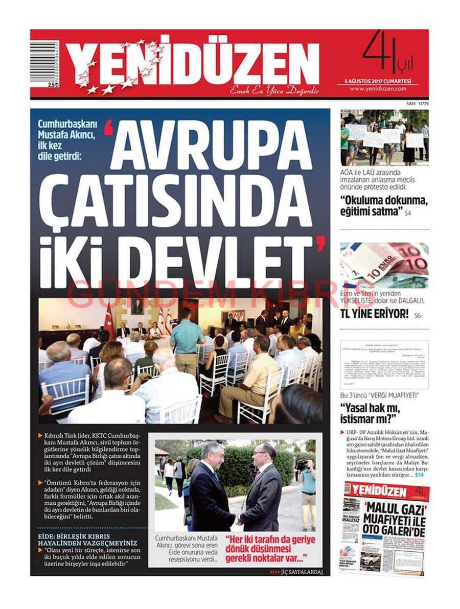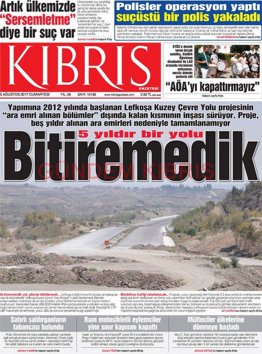 KKTC Gazete Manşetleri 5 Ağustos 2017