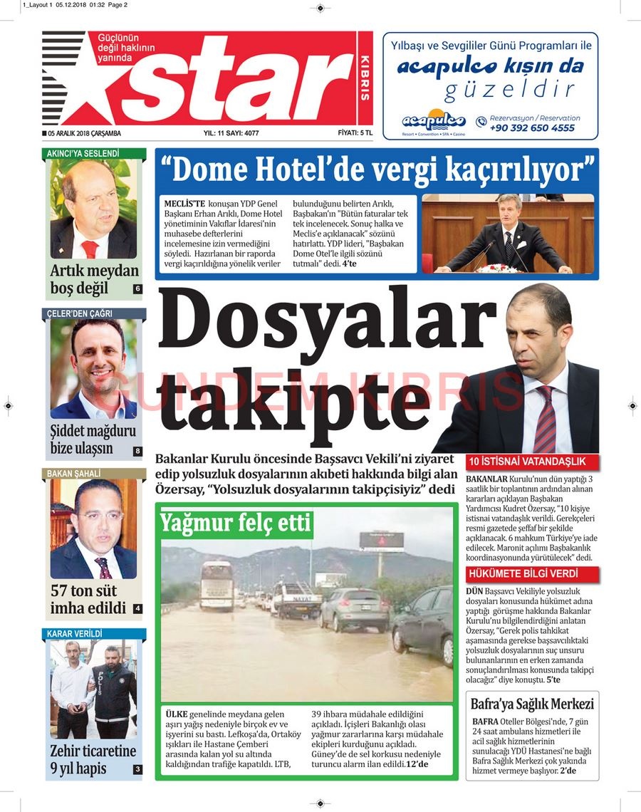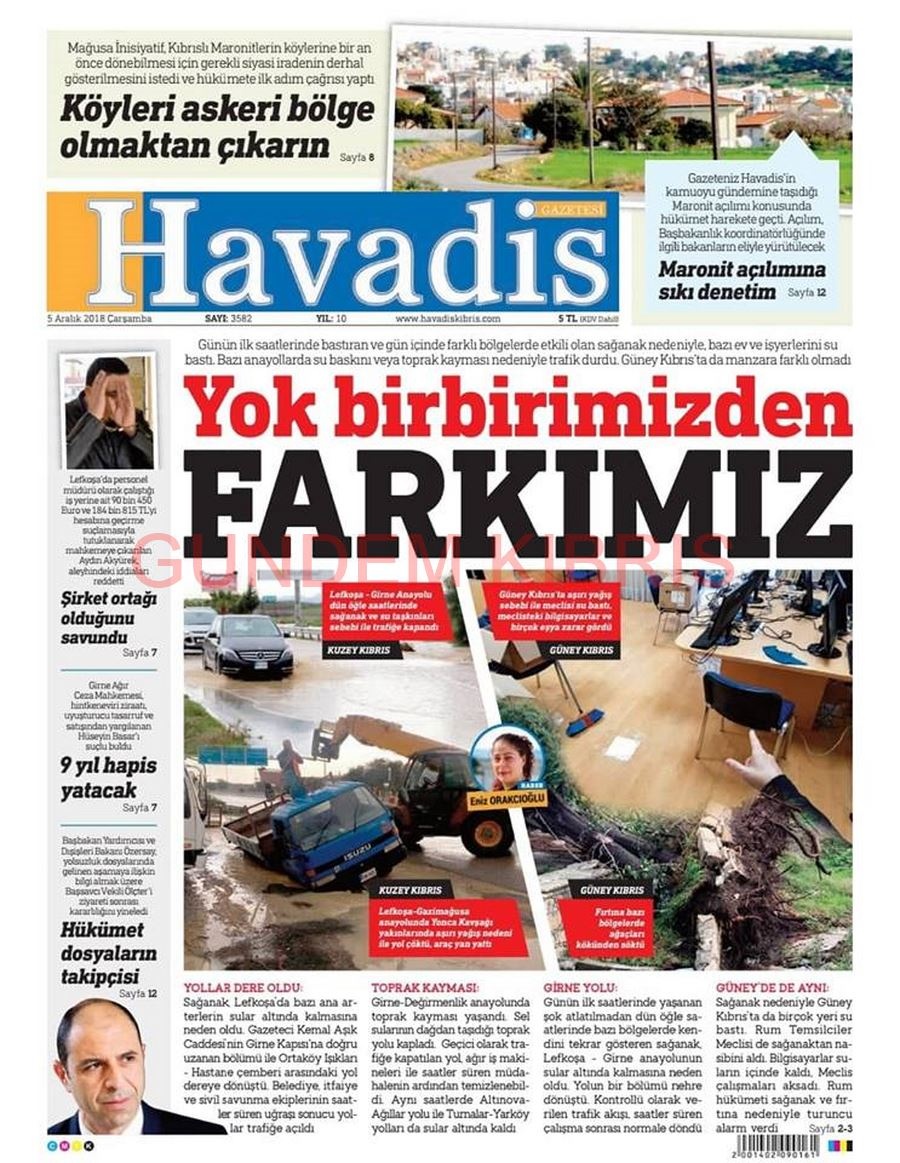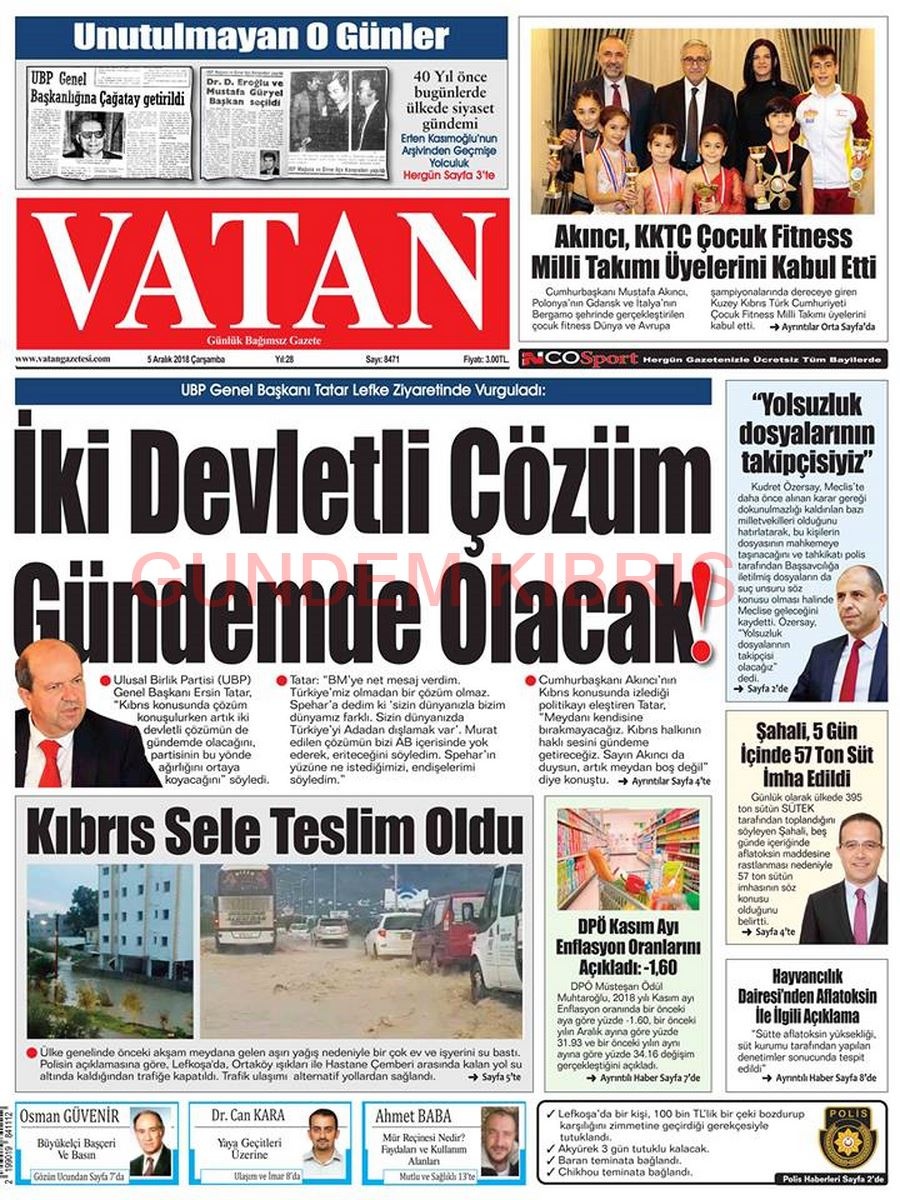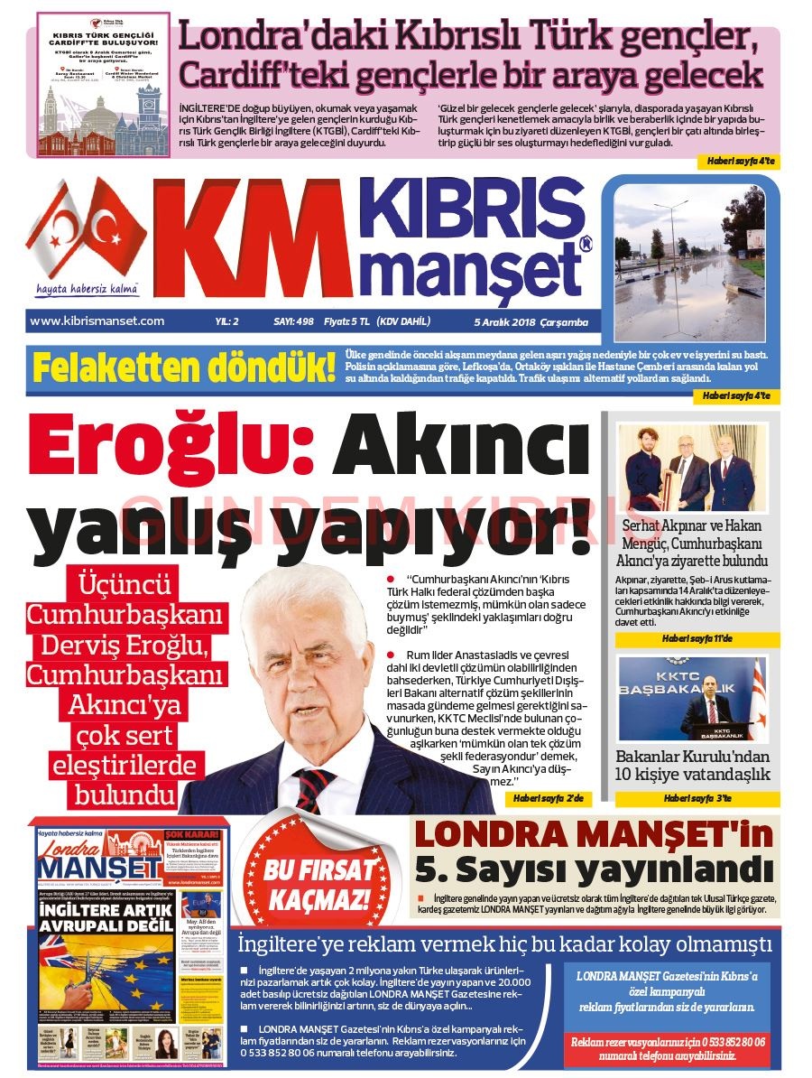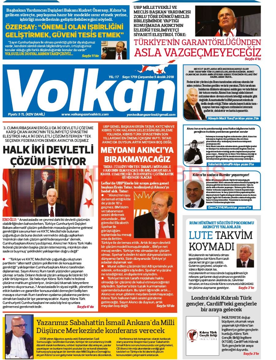 KKTC Gazete Manşetleri 5 Aralık 2018