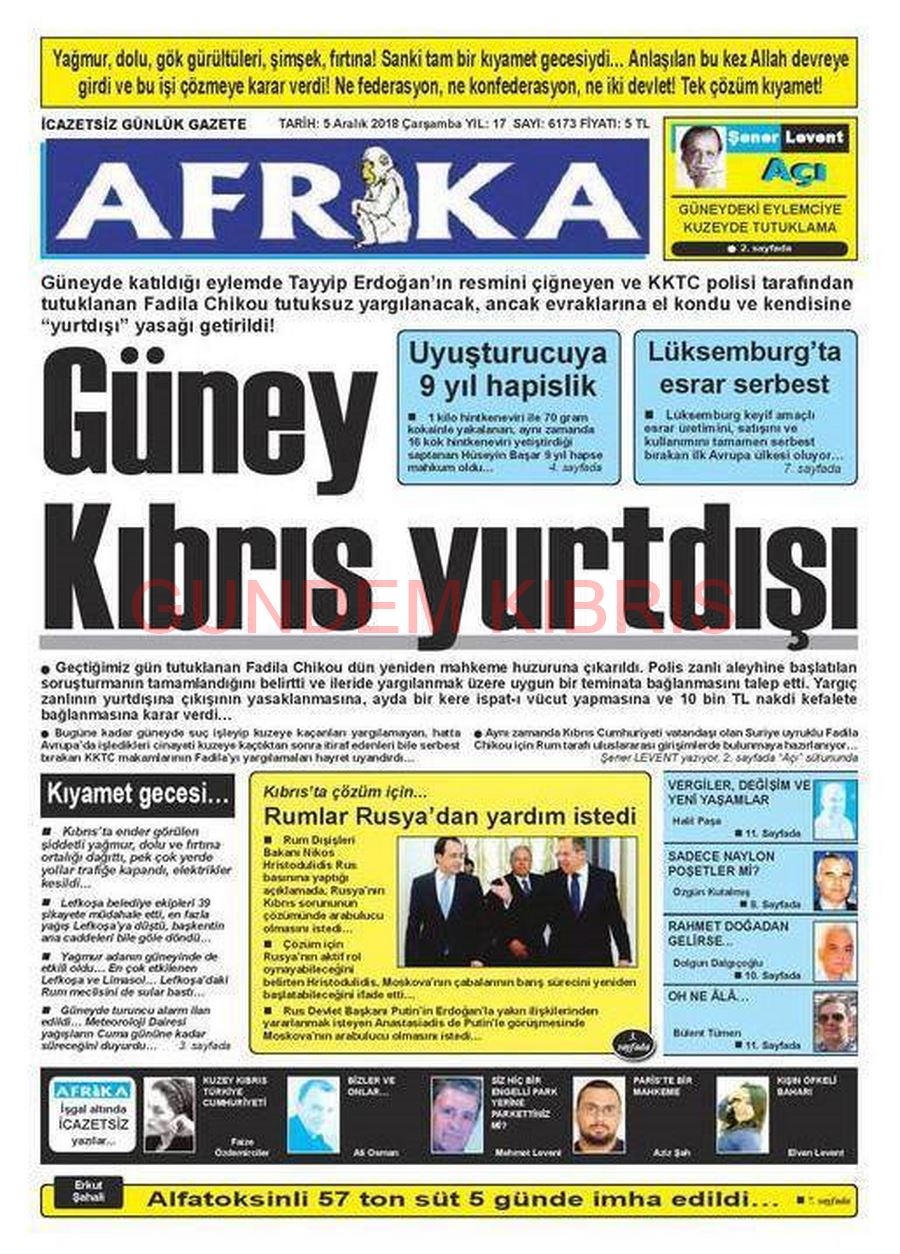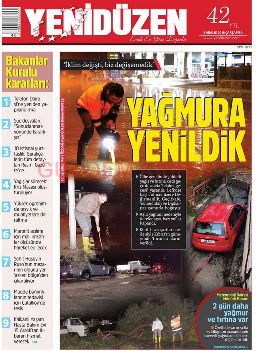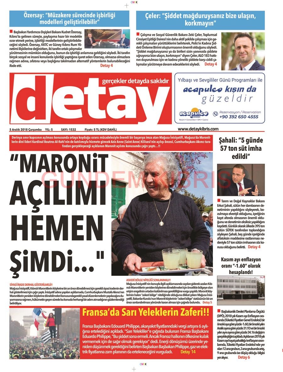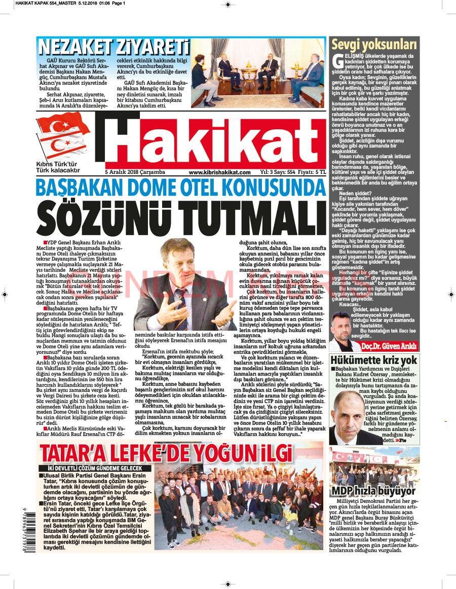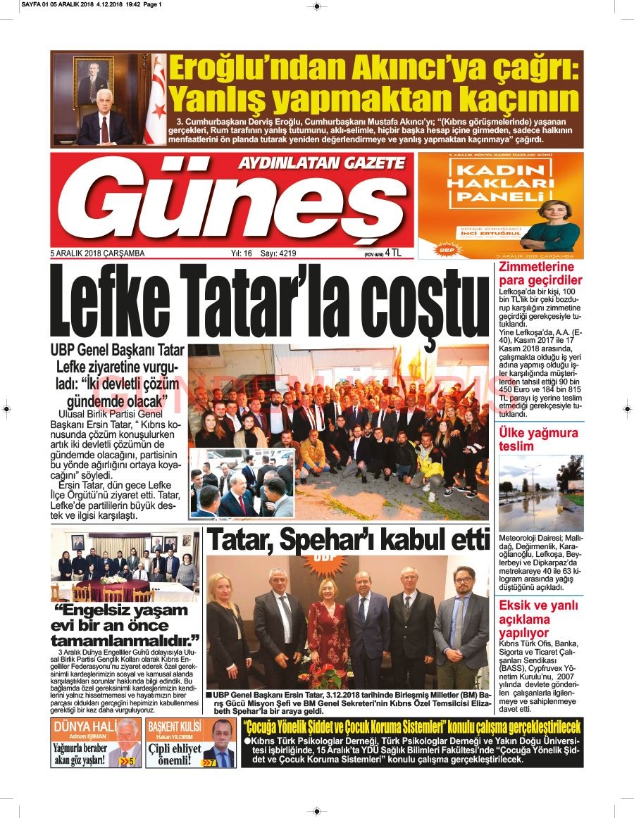 KKTC Gazete Manşetleri 5 Aralık 2018