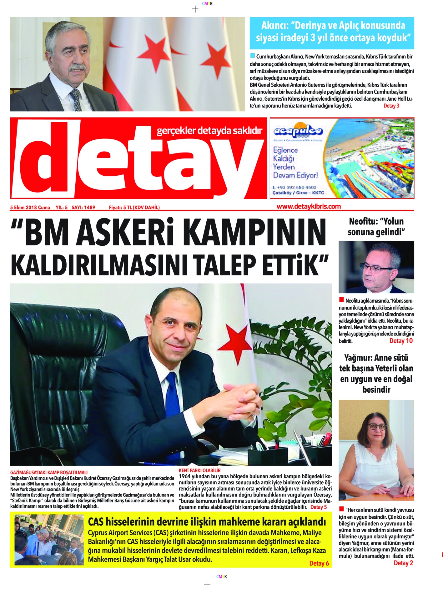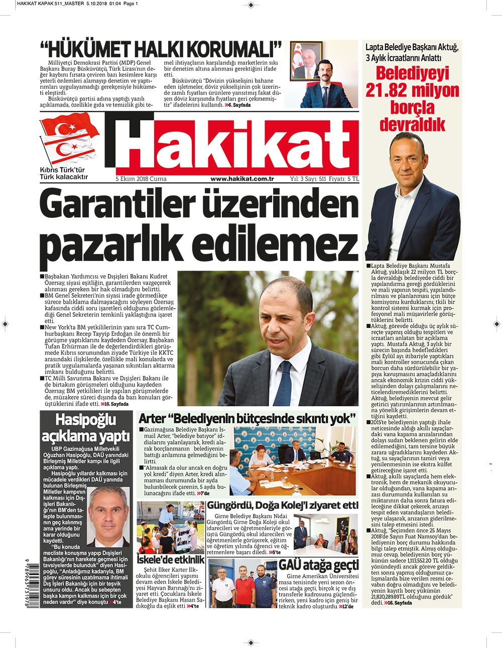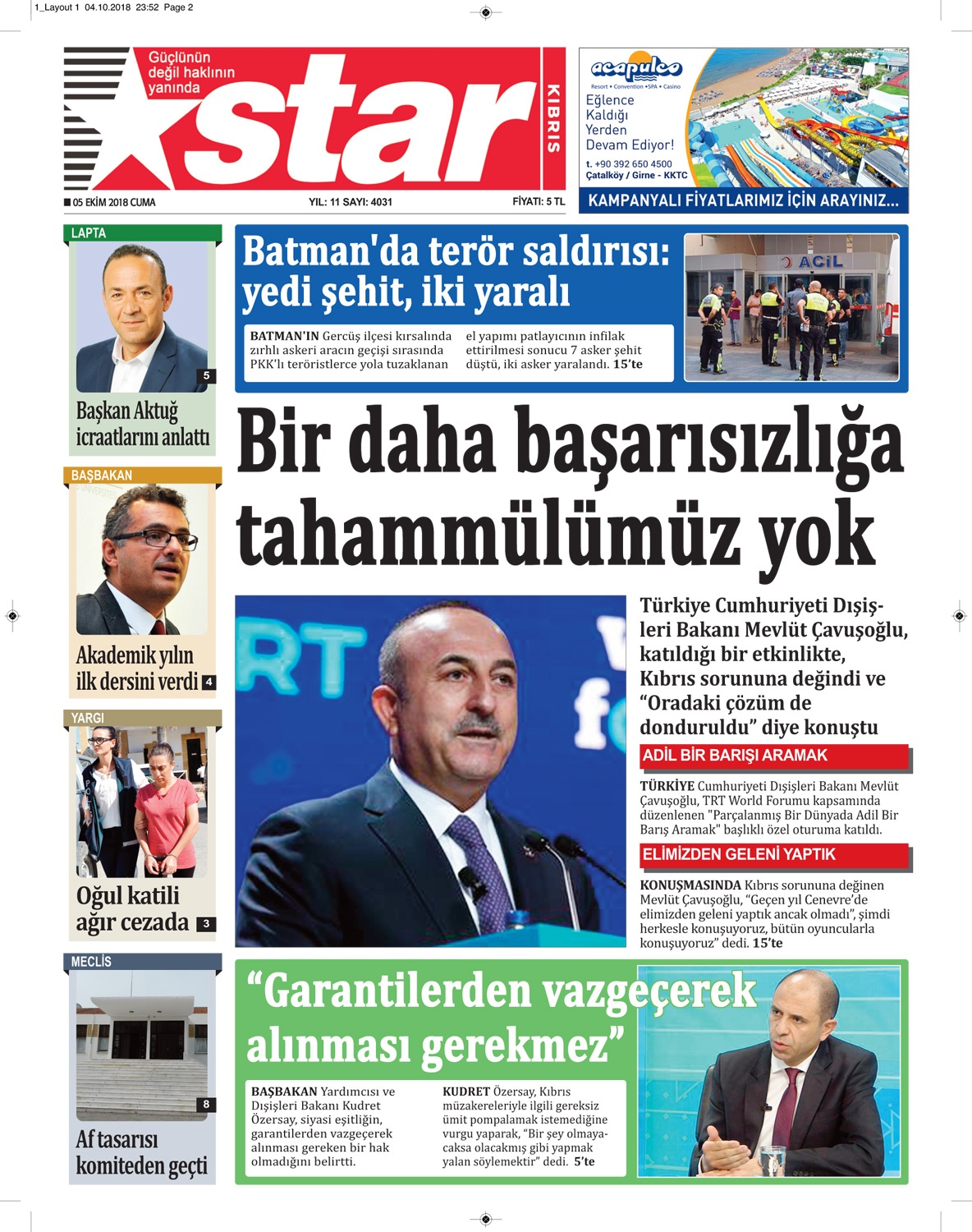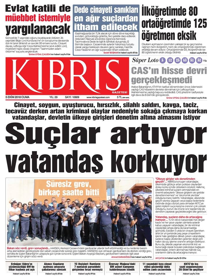 KKTC Gazete Manşetleri - 5 Ekim 2018