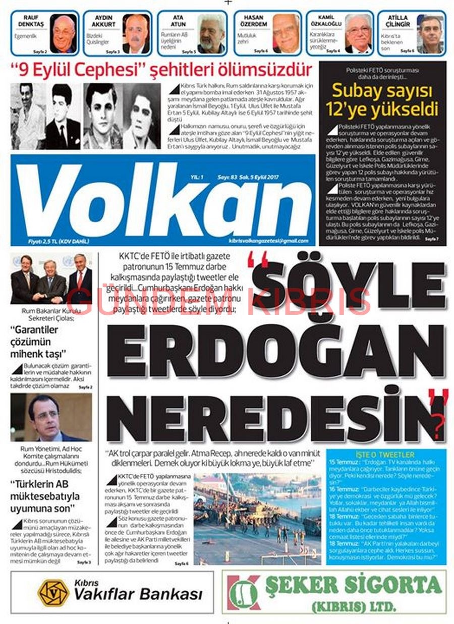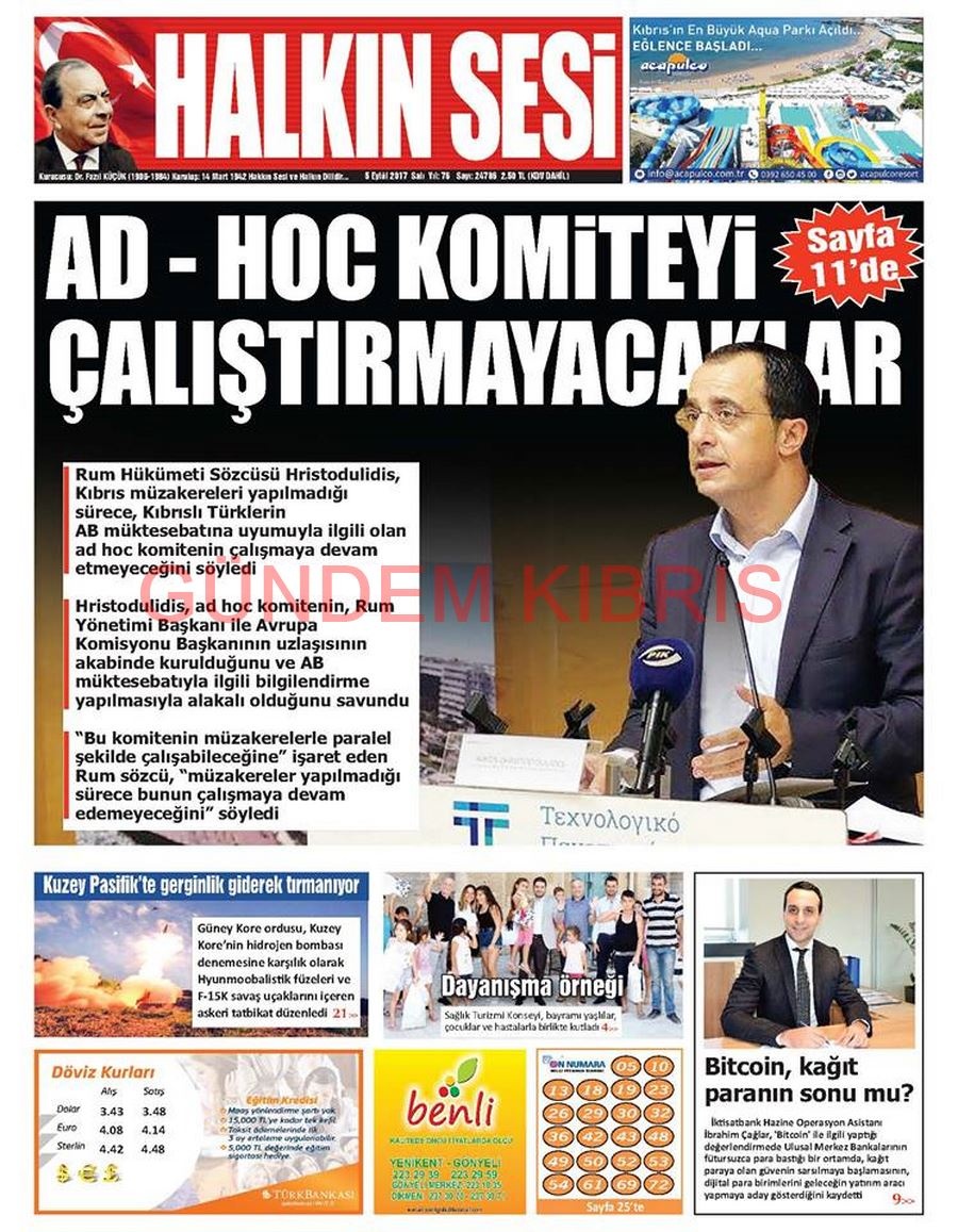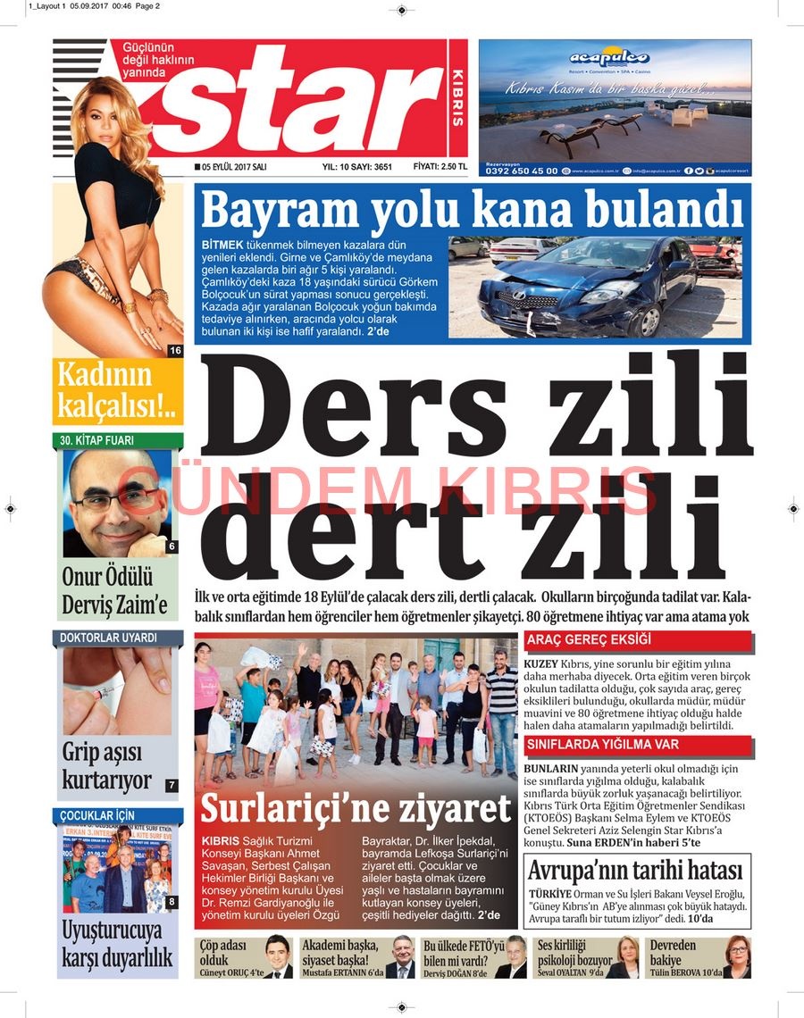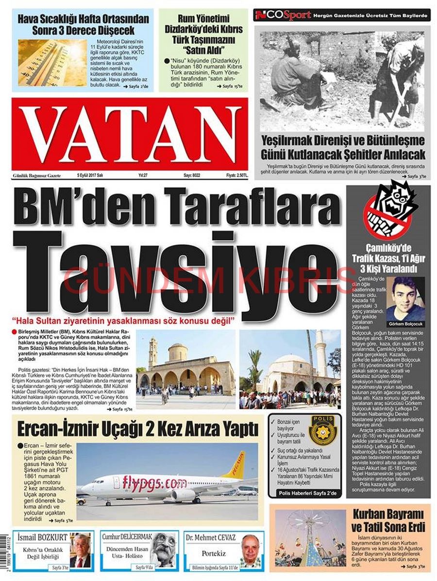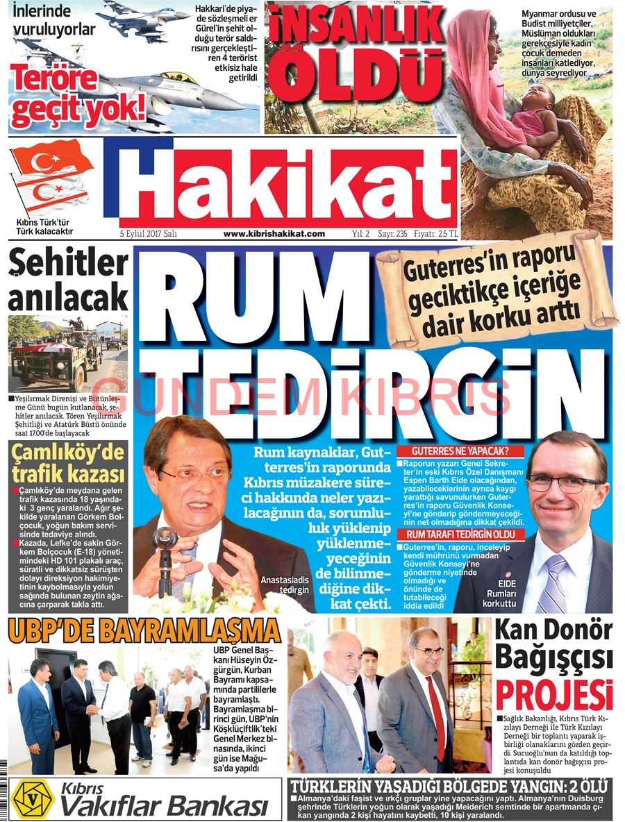 KKTC Gazete Manşetleri 5 Eylül 2017