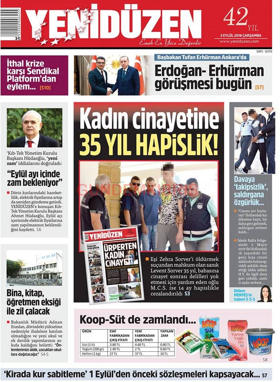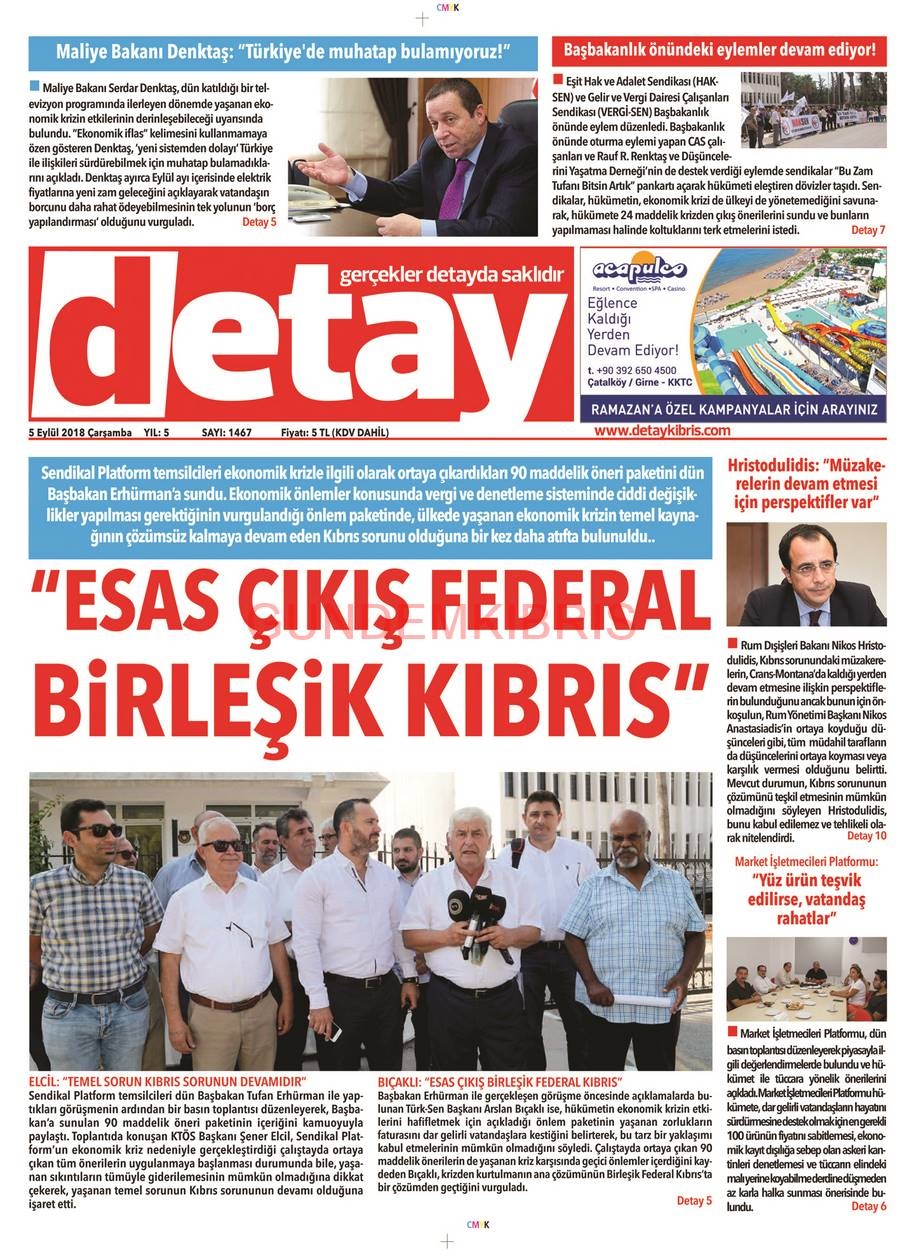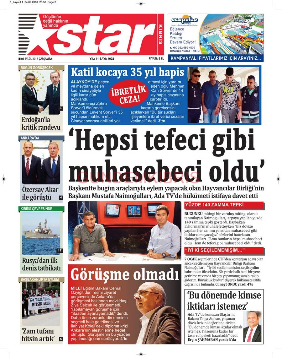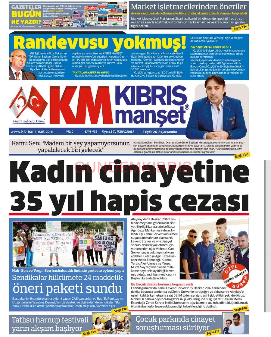 KKTC Gazete Manşetleri 5 Eylül 2018