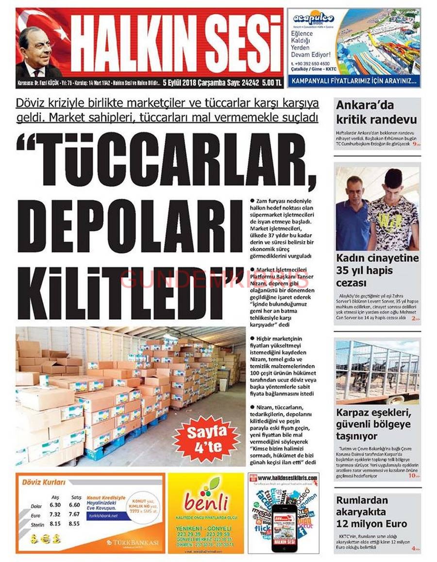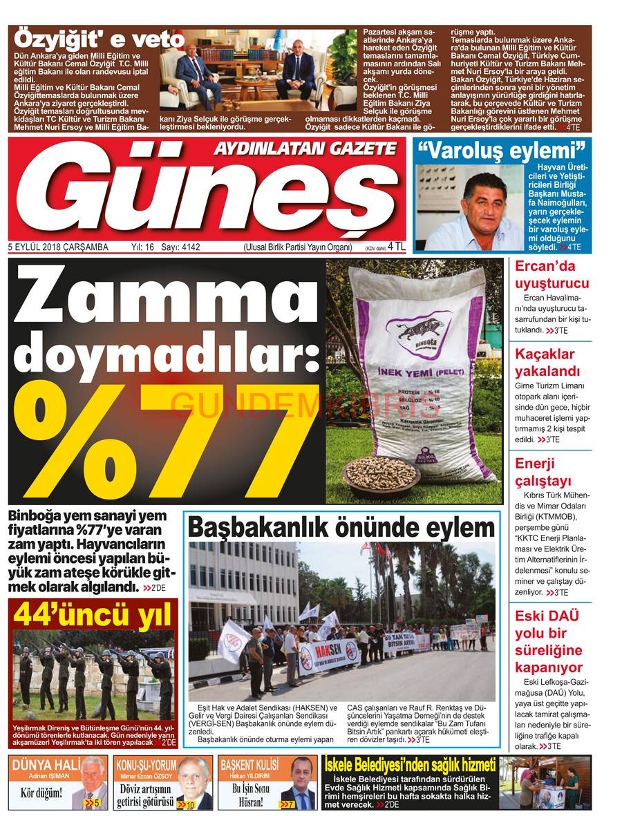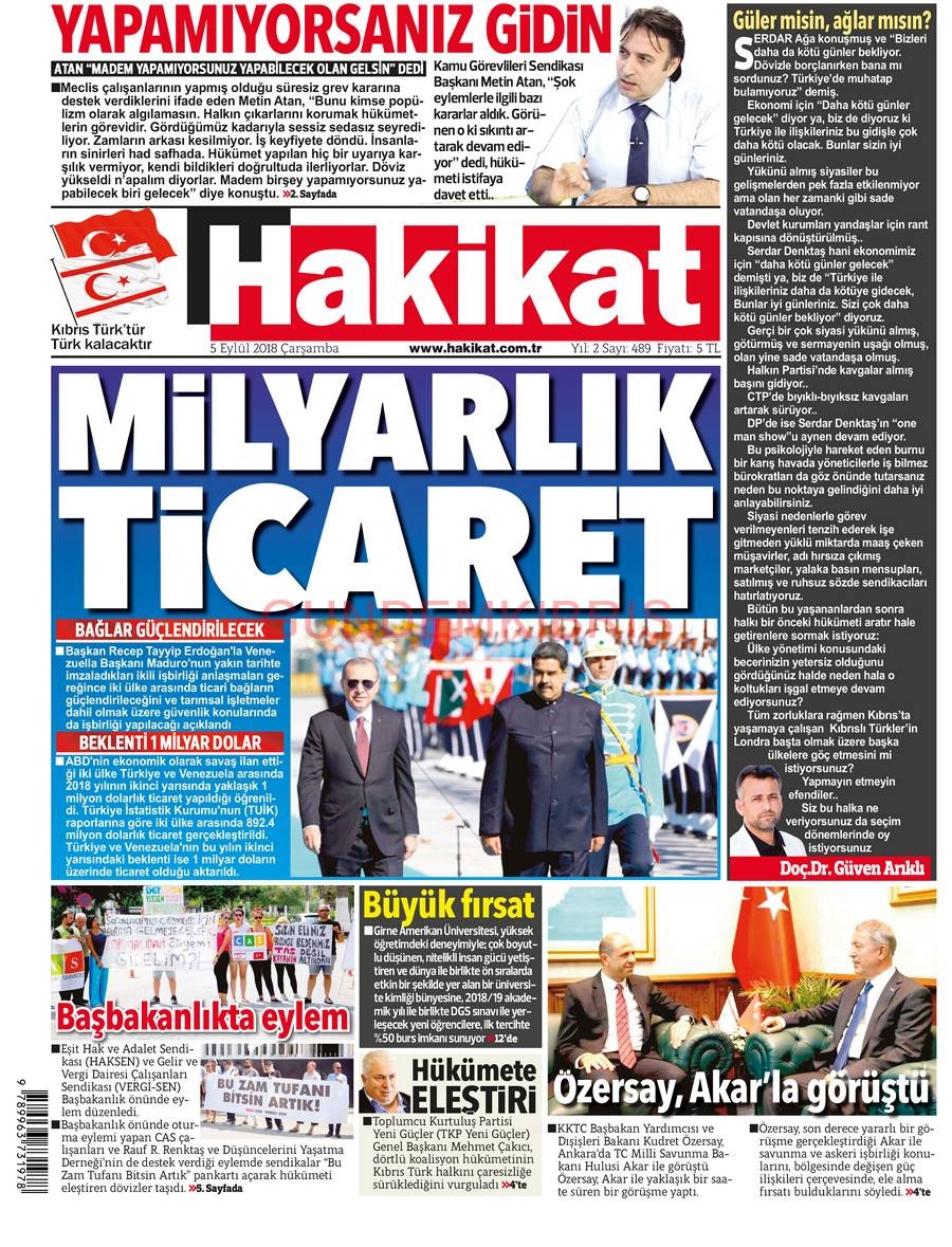KKTC Gazete Manşetleri 5 Eylül 2018