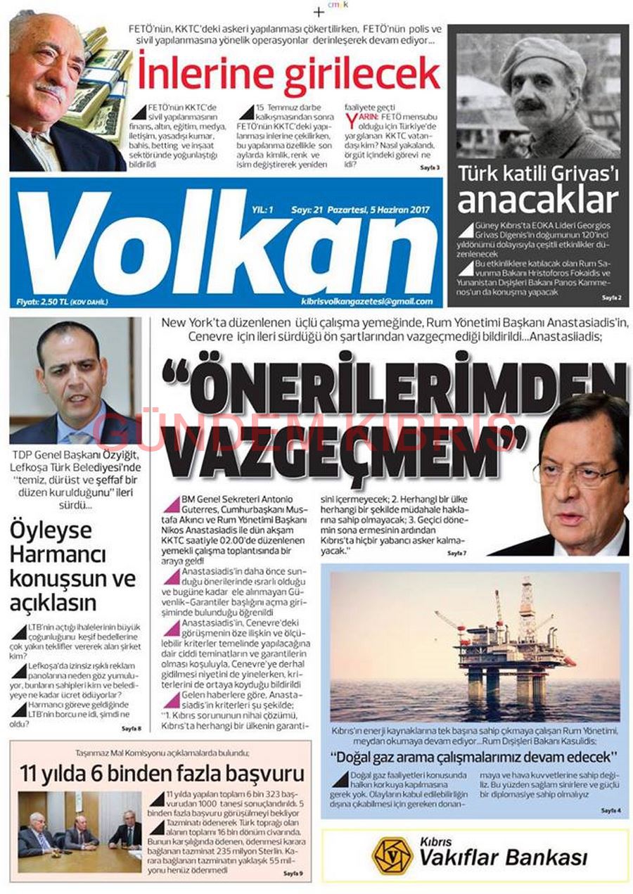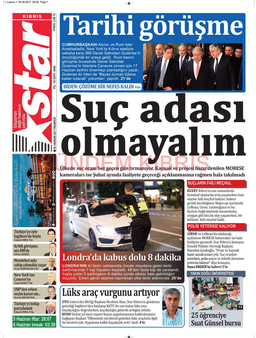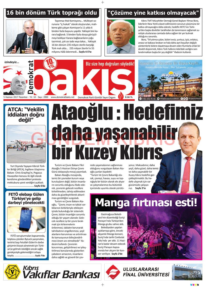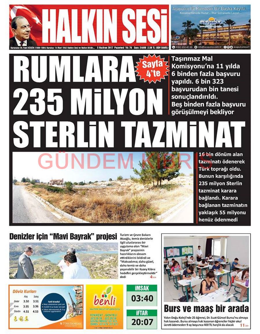 KKTC Gazete Manşetleri 5 Haziran 2017