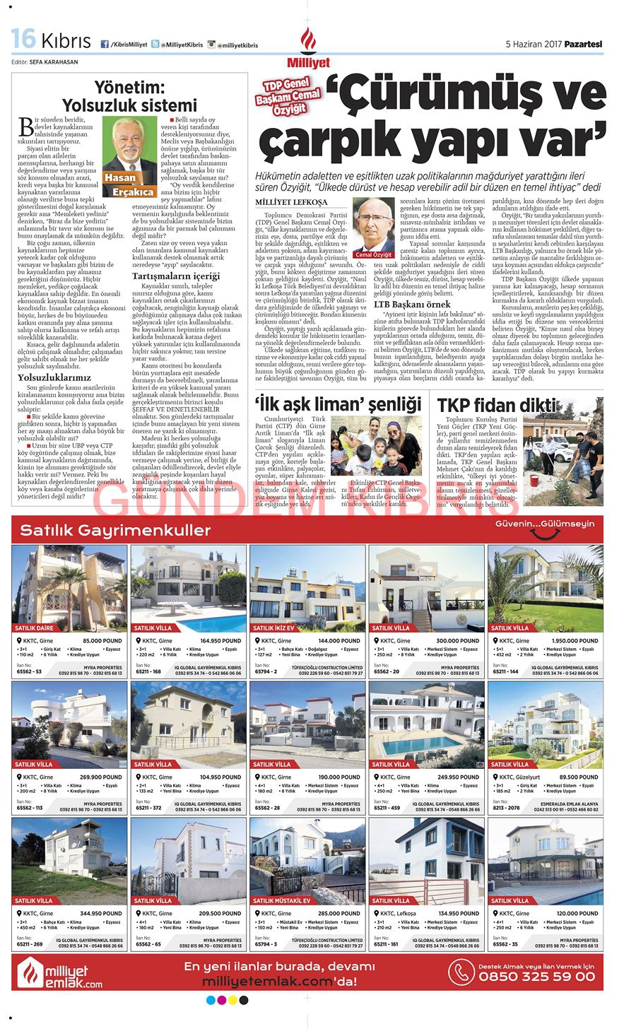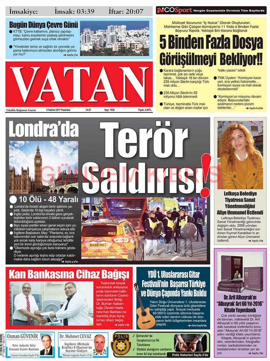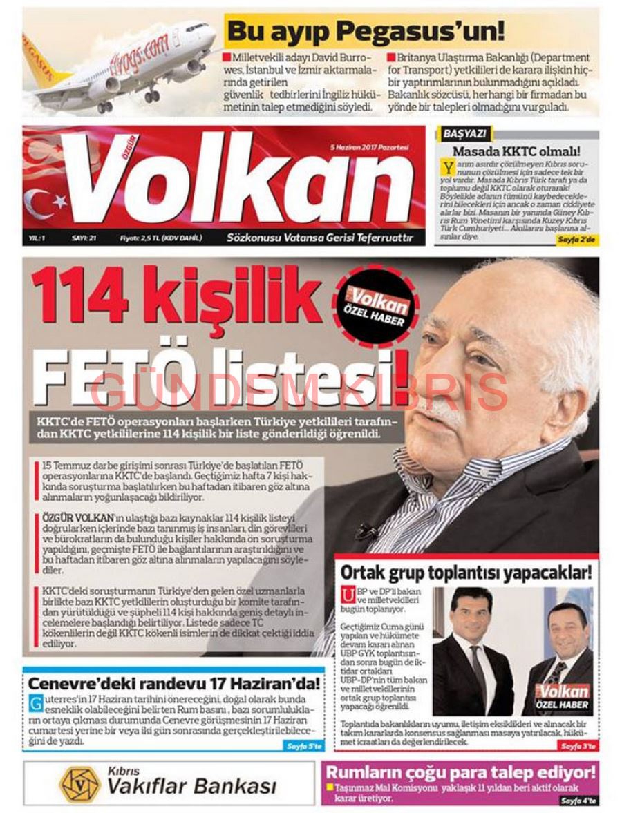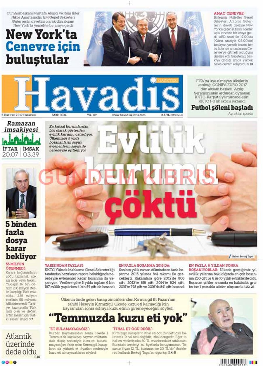 KKTC Gazete Manşetleri 5 Haziran 2017