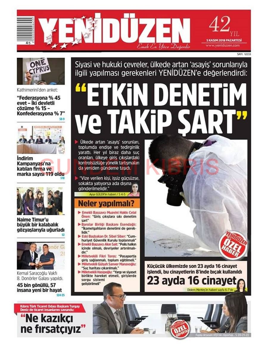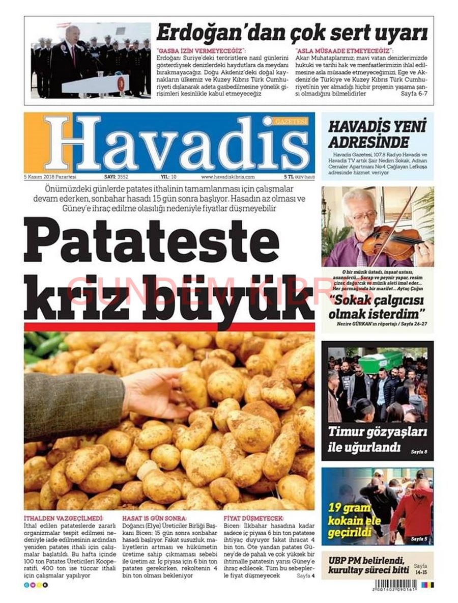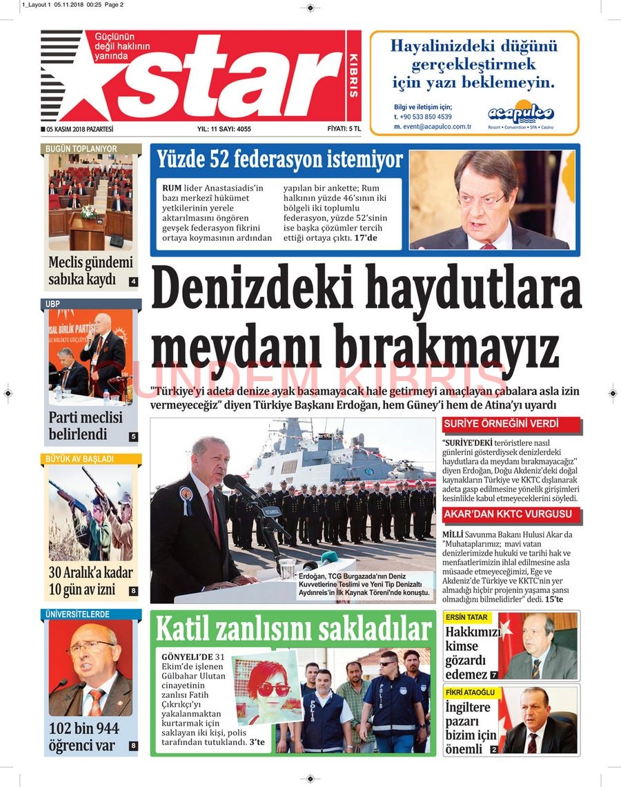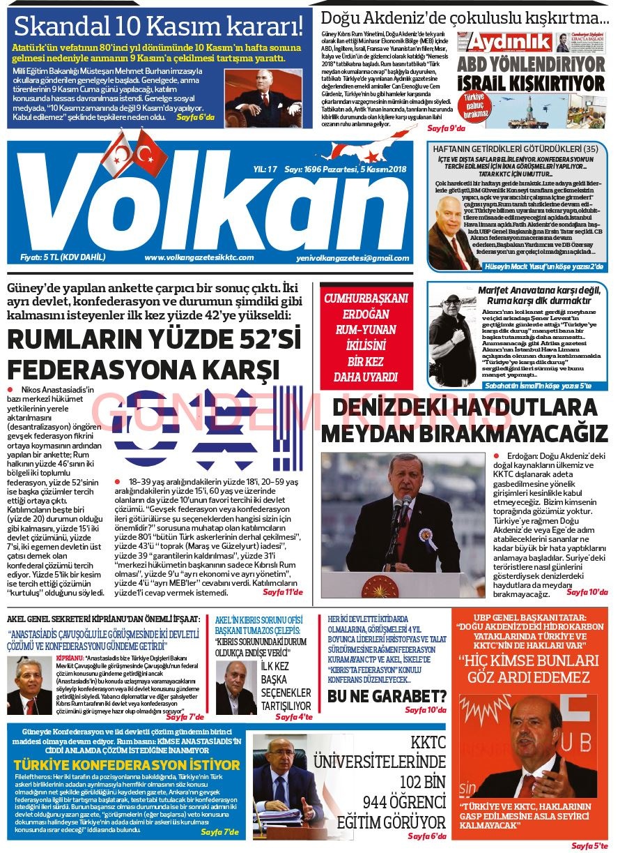 KKTC Gazete Manşetleri 5 Kasım 2018