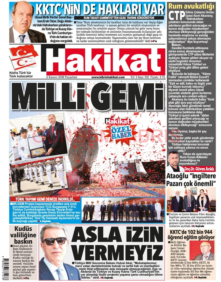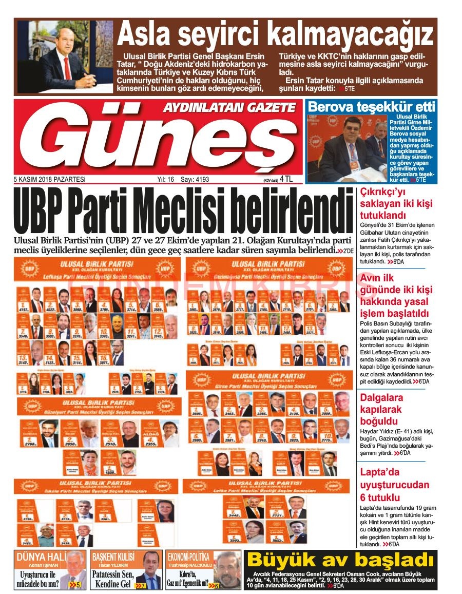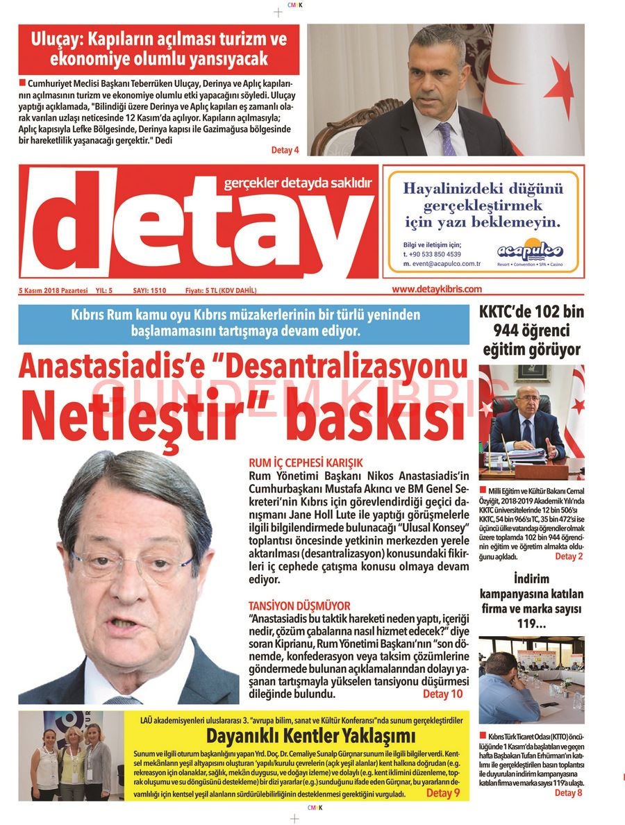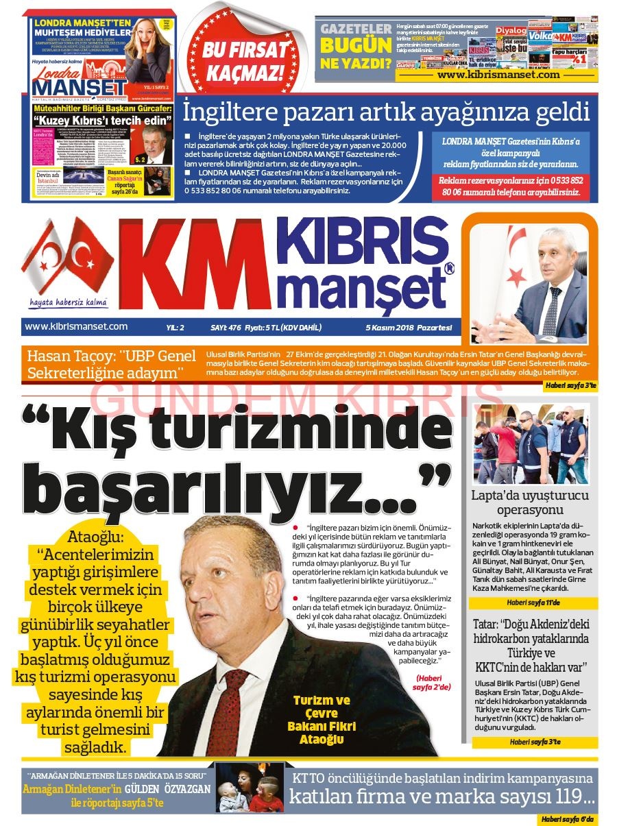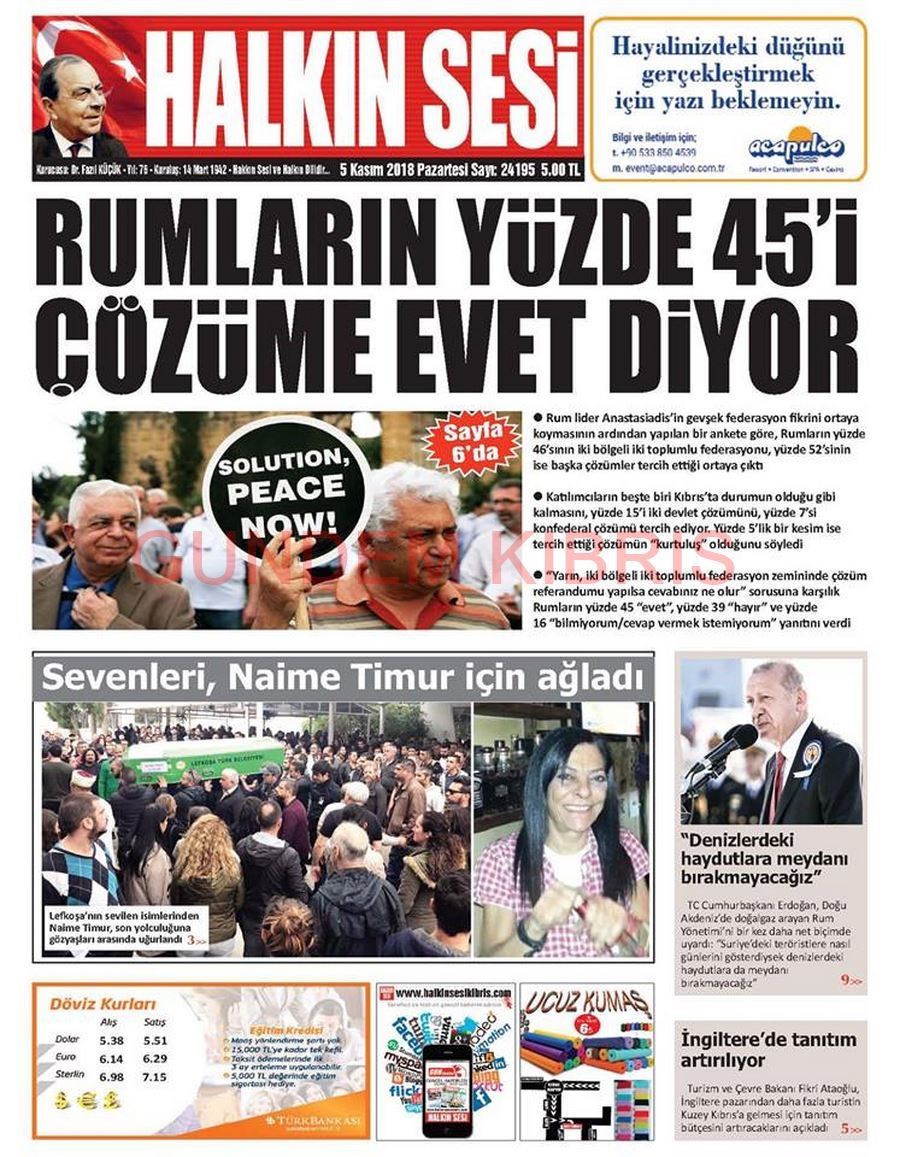 KKTC Gazete Manşetleri 5 Kasım 2018