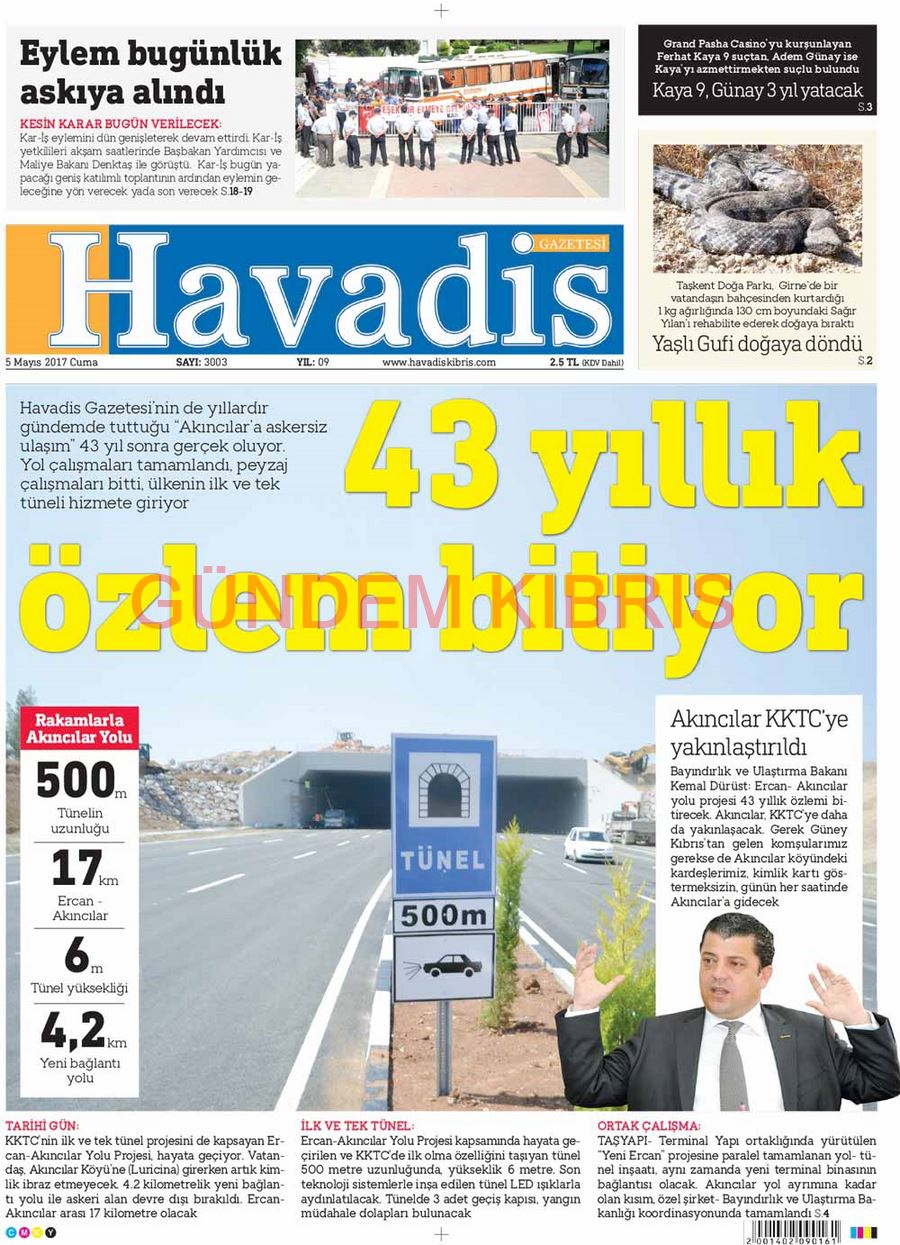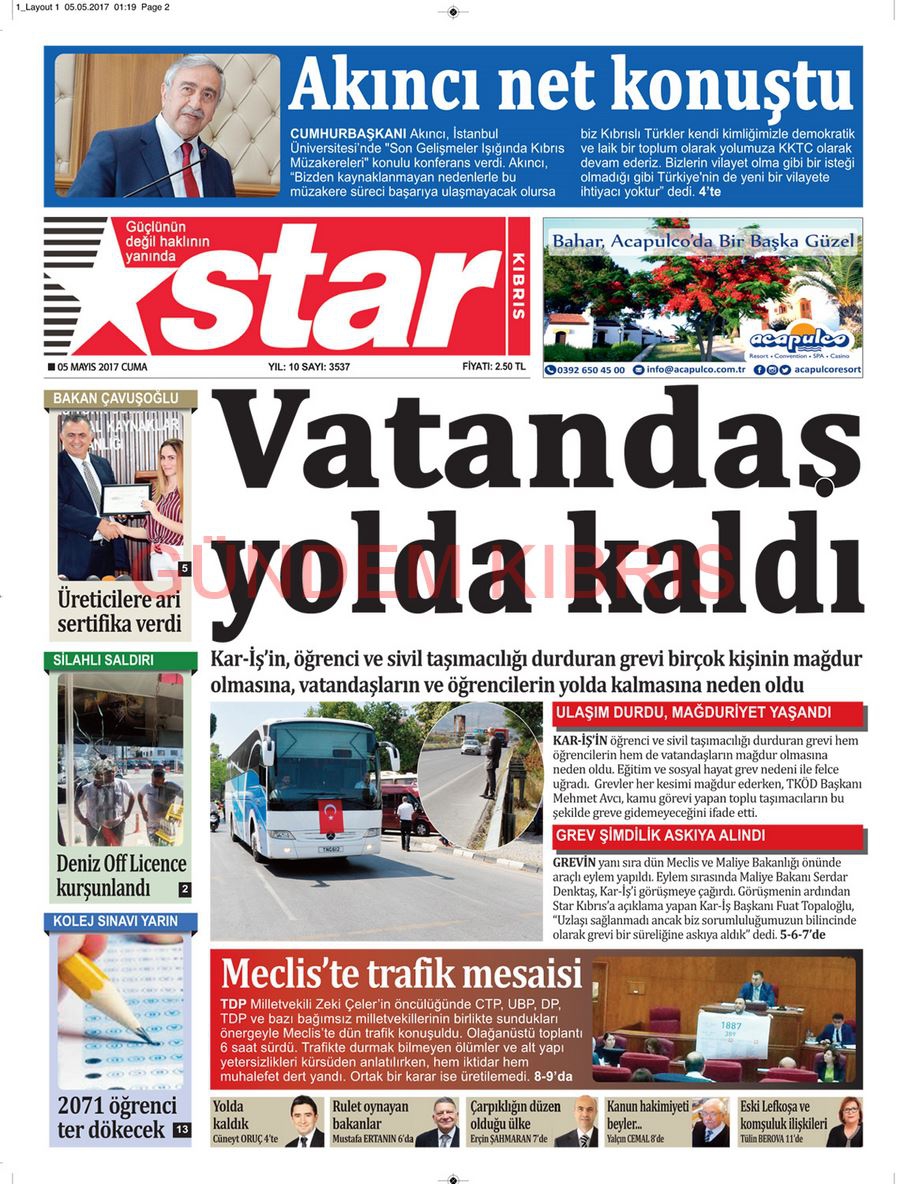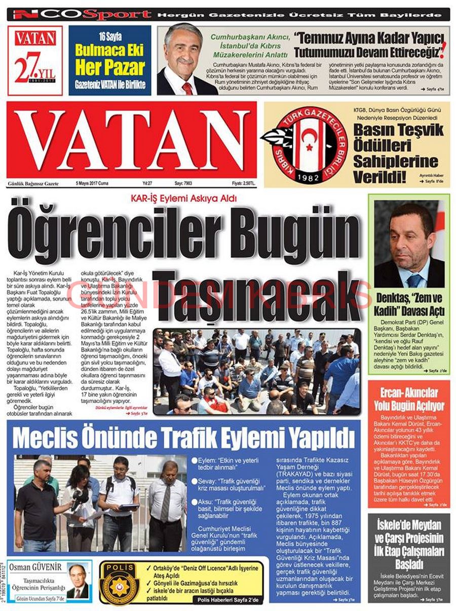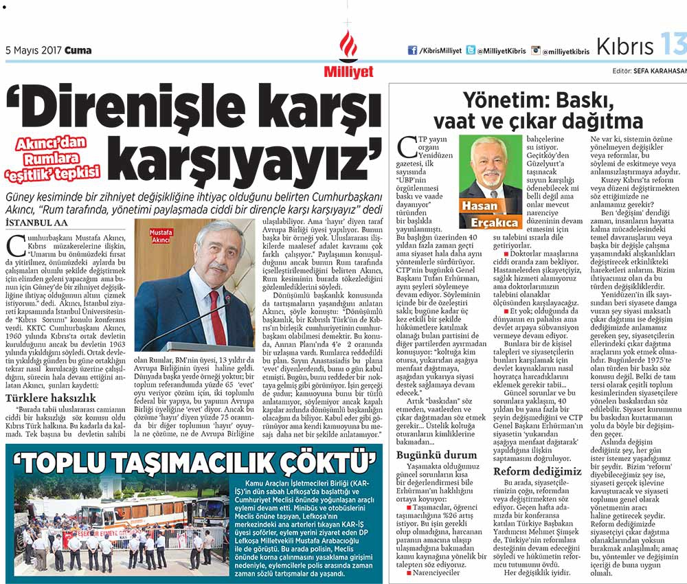 KKTC Gazete Manşetleri 5 Mayıs 2017