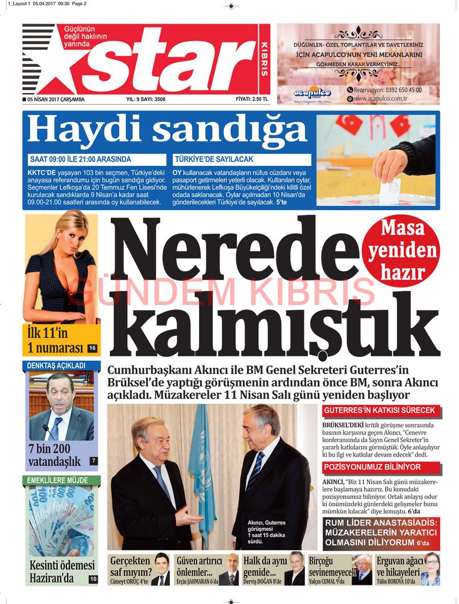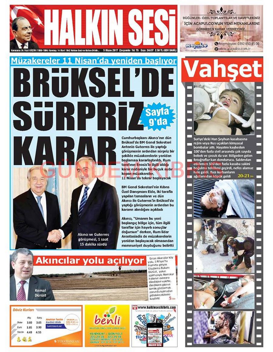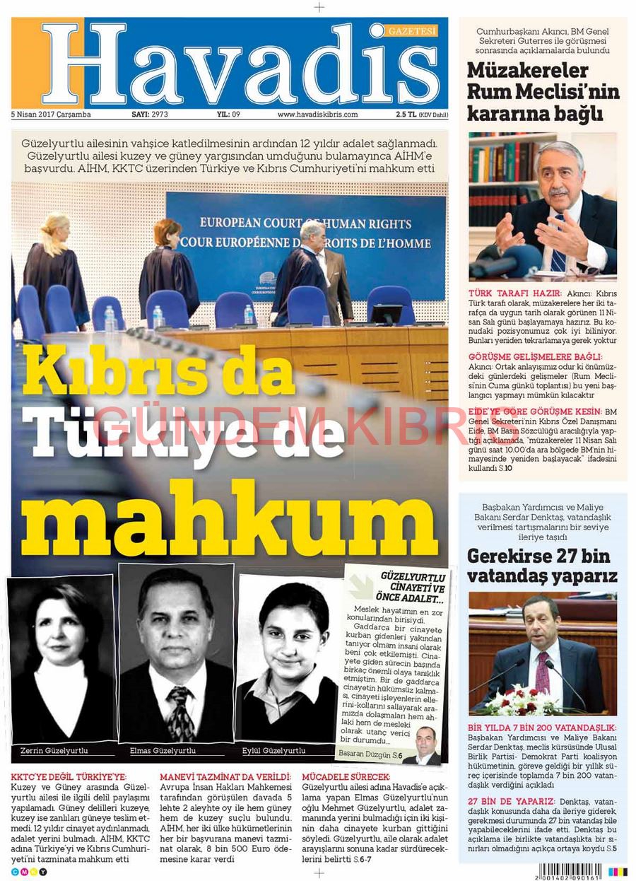 KKTC Gazete Manşetleri 5 Nisan 2017