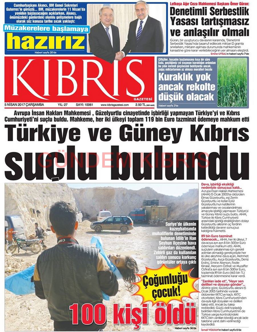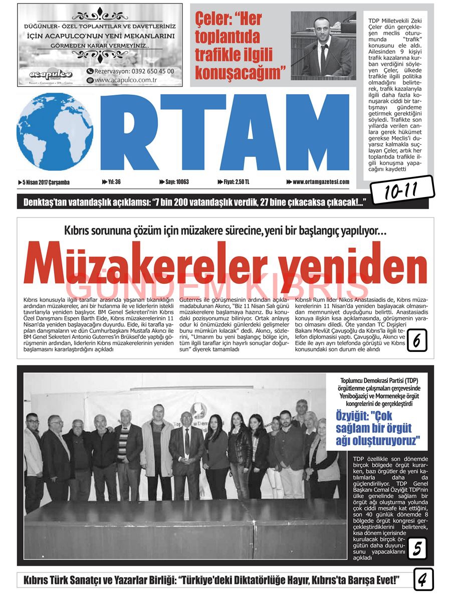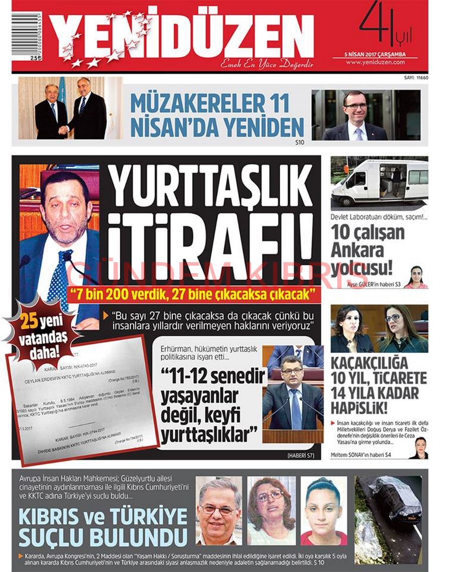 KKTC Gazete Manşetleri 5 Nisan 2017