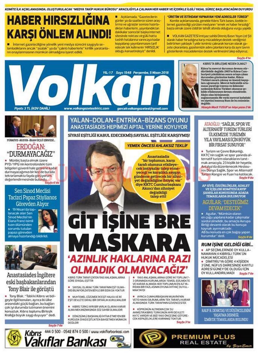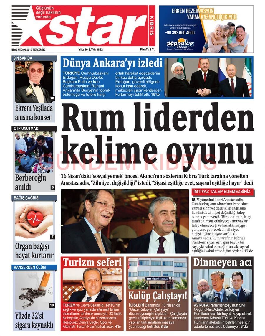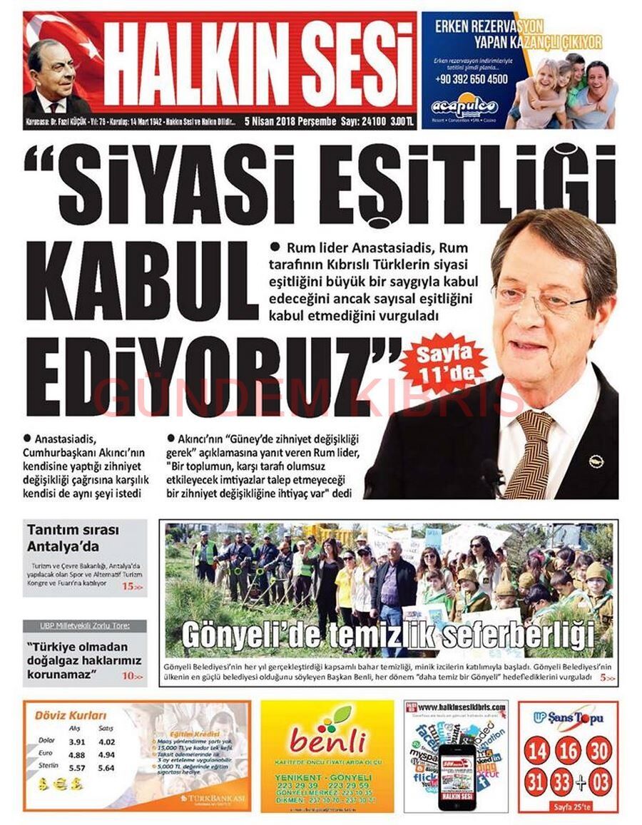 KKTC Gazete Manşetleri 5 Nisan 2018