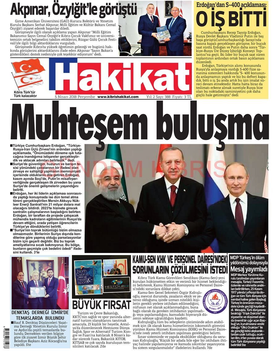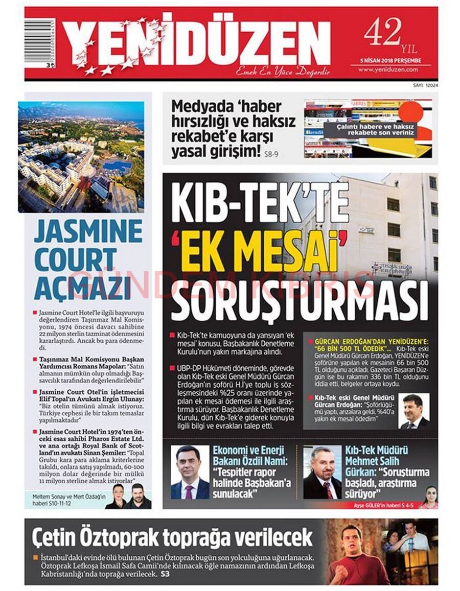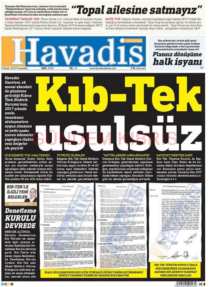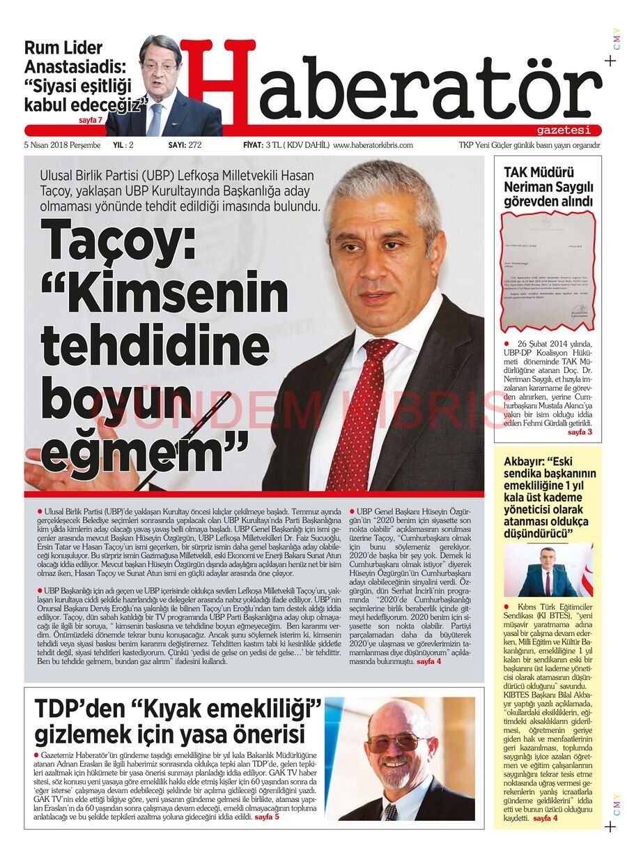 KKTC Gazete Manşetleri 5 Nisan 2018