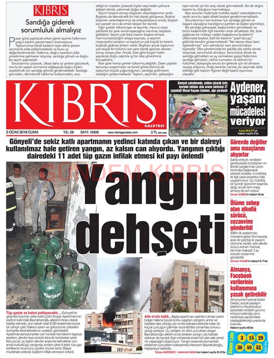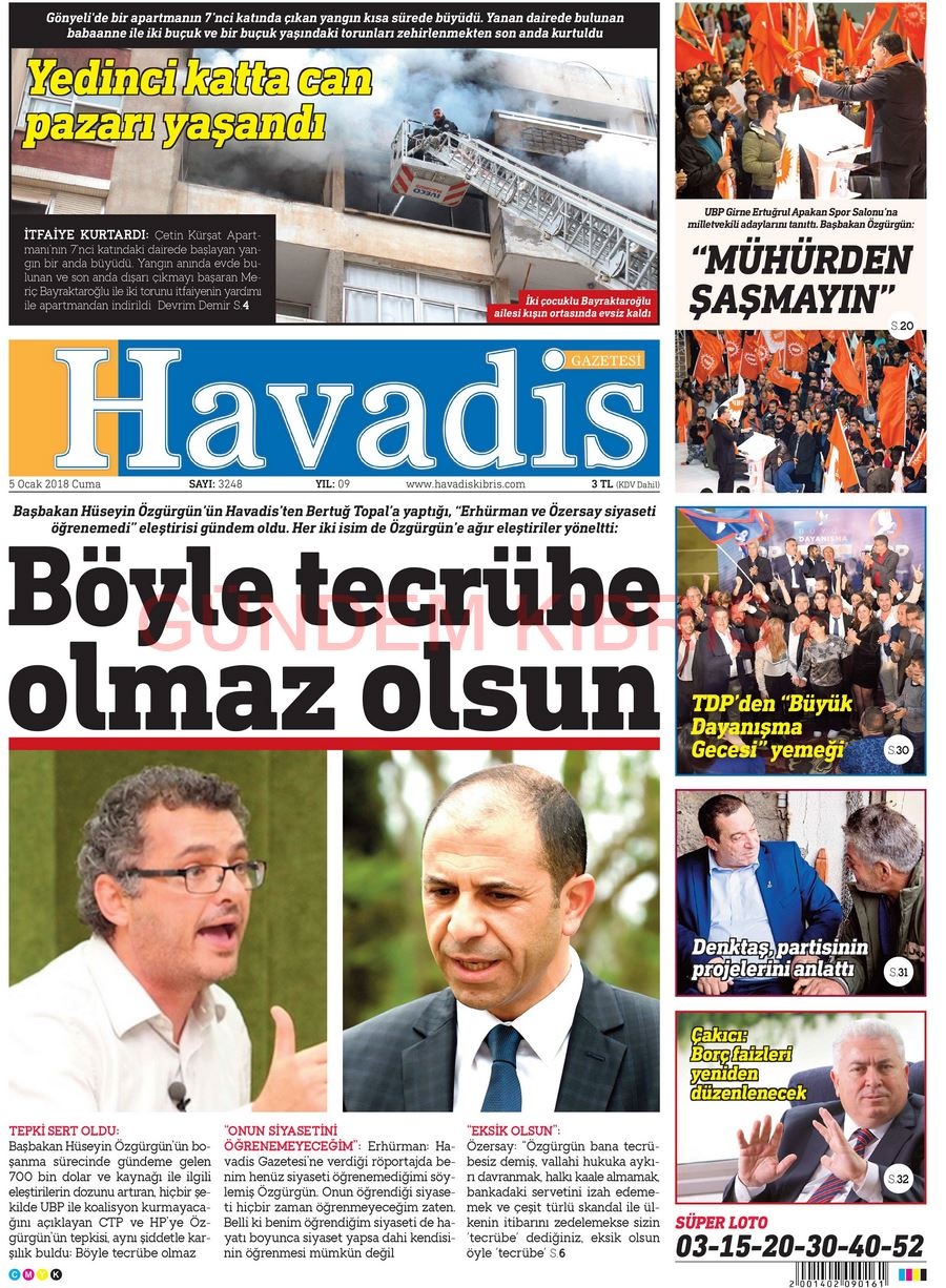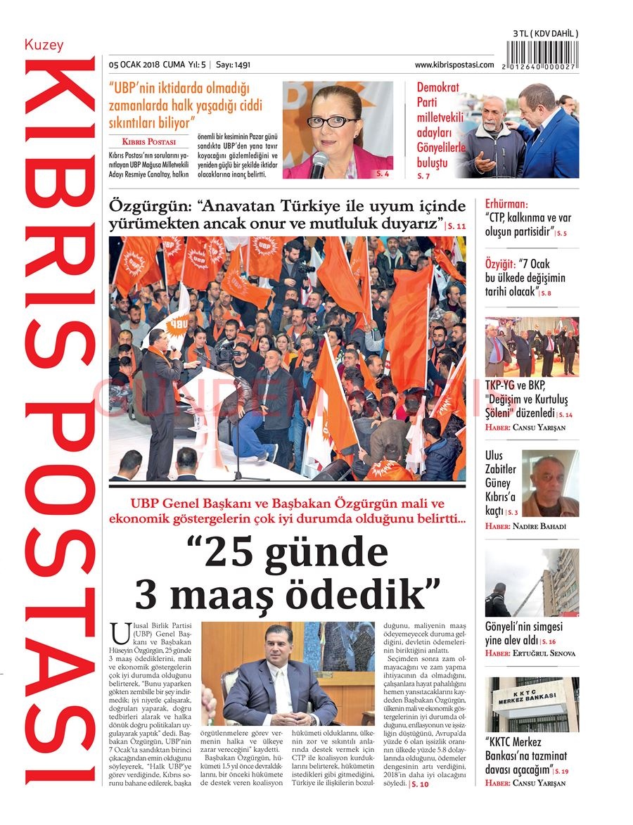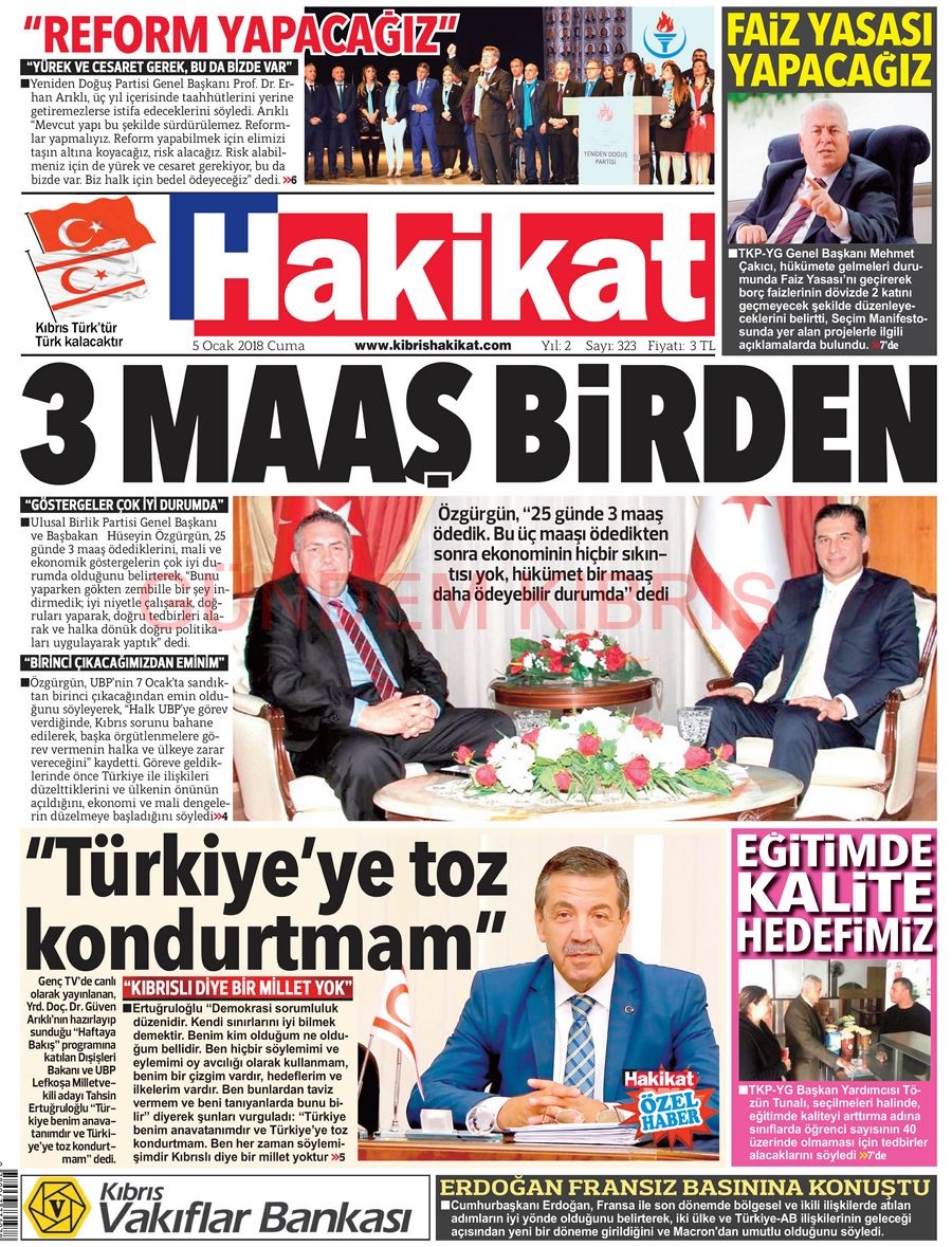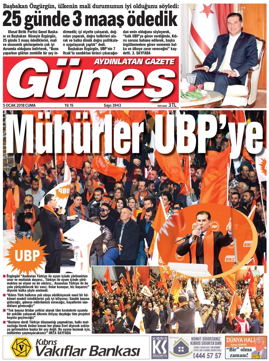 KKTC Gazete Manşetleri 5 Ocak 2018