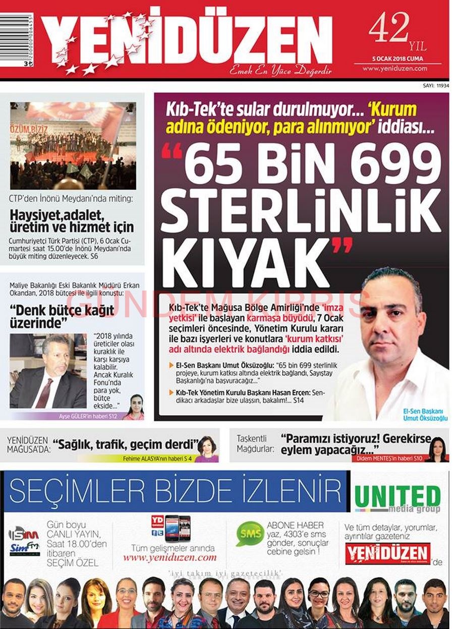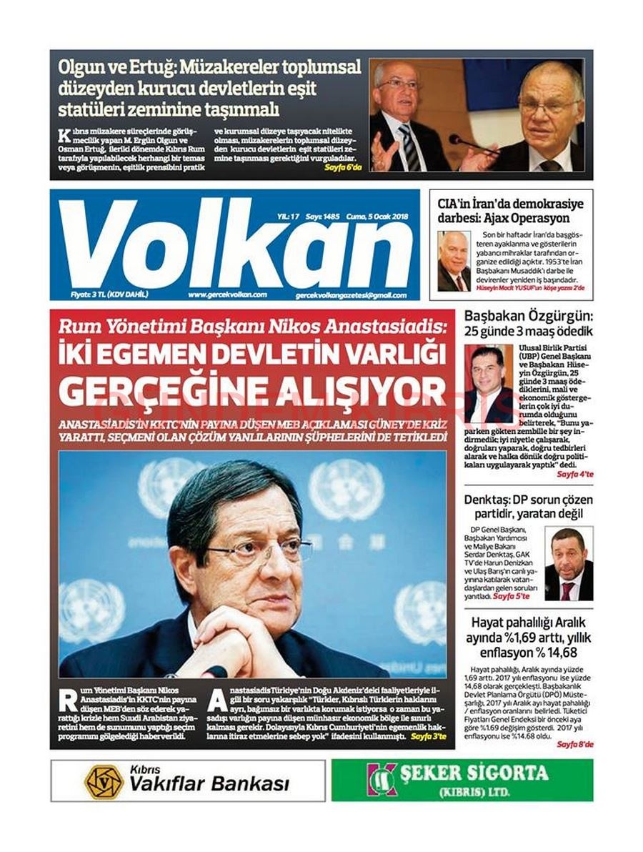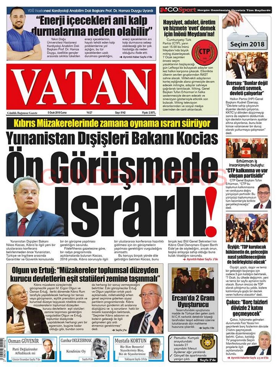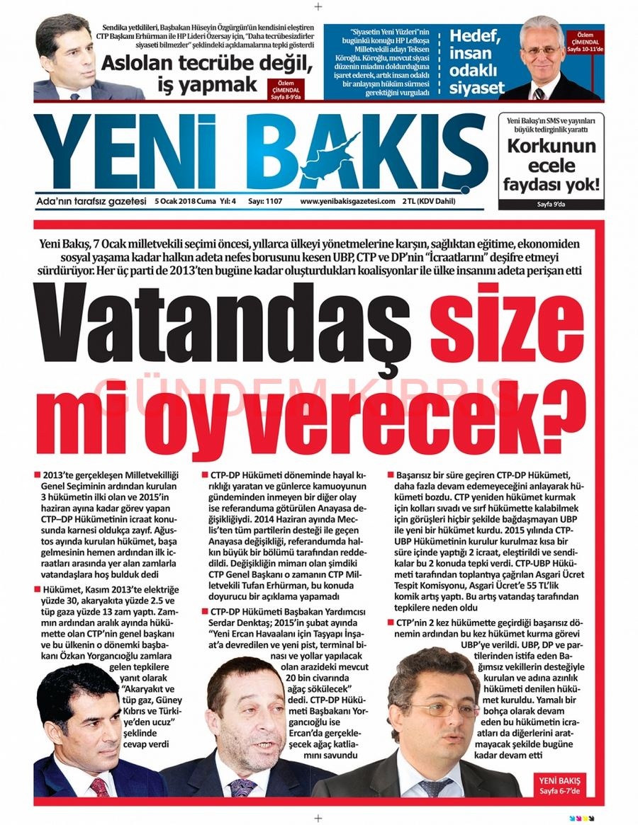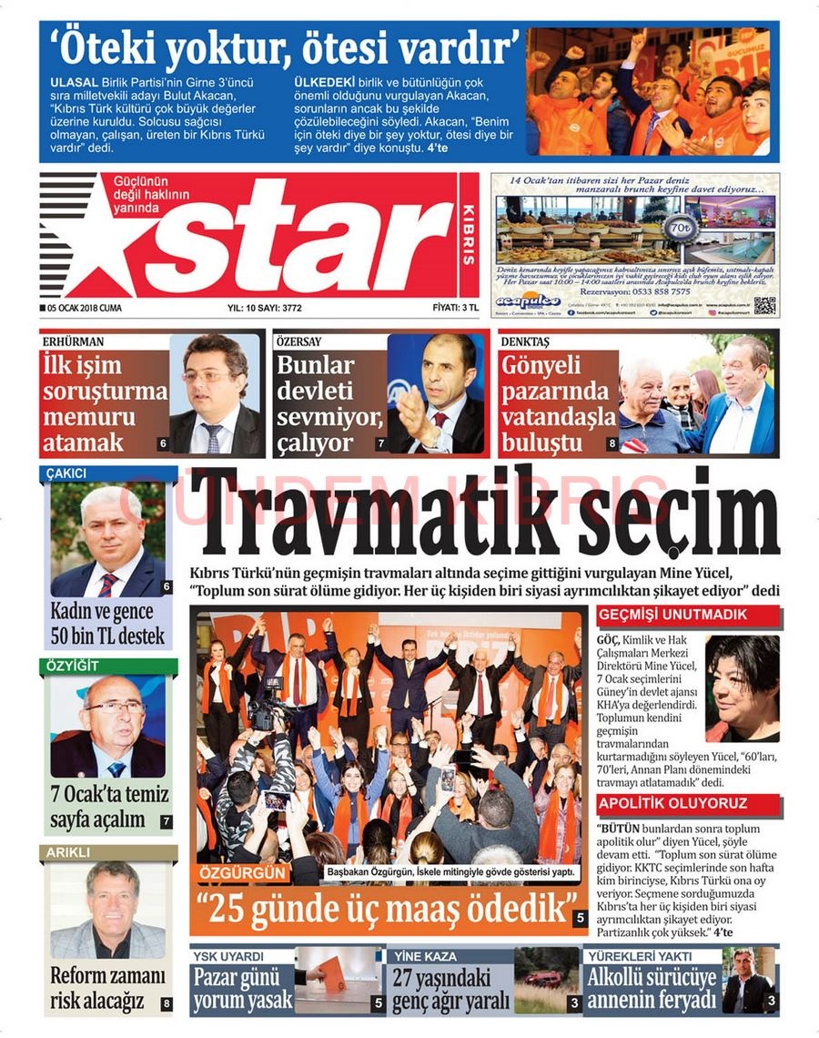 KKTC Gazete Manşetleri 5 Ocak 2018
