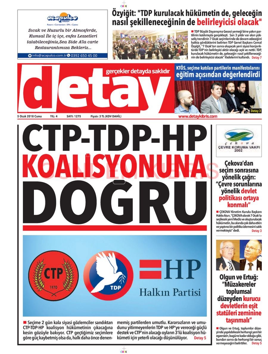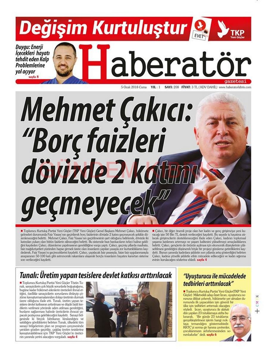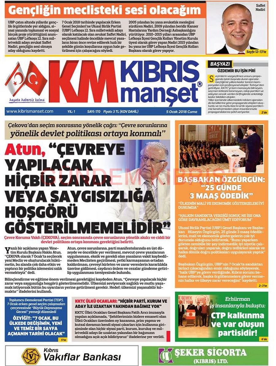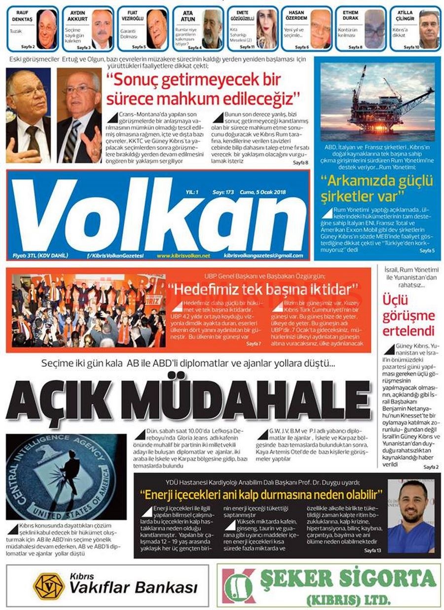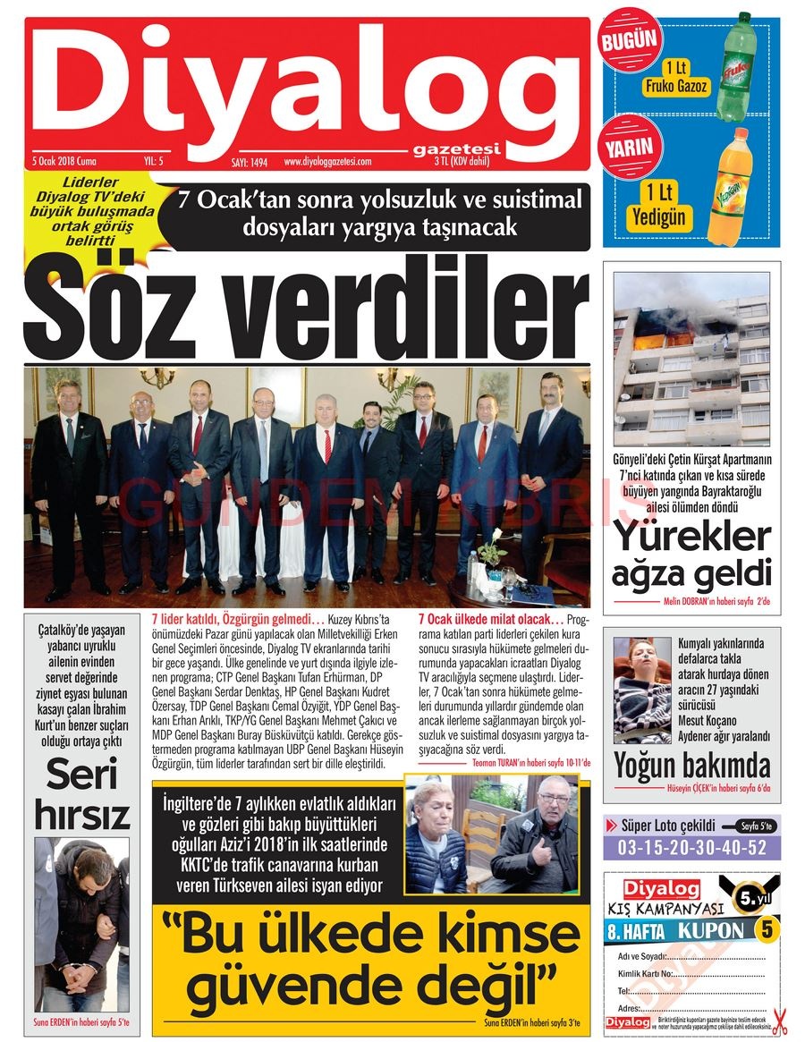 KKTC Gazete Manşetleri 5 Ocak 2018