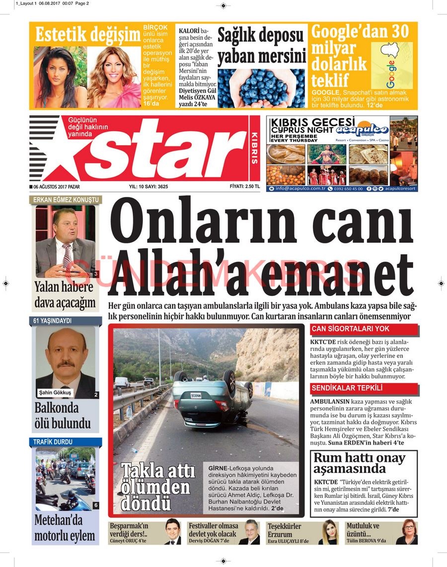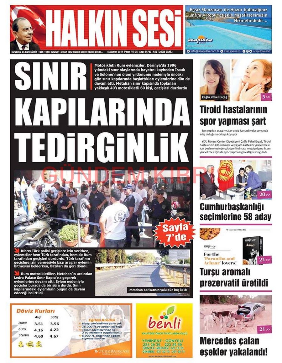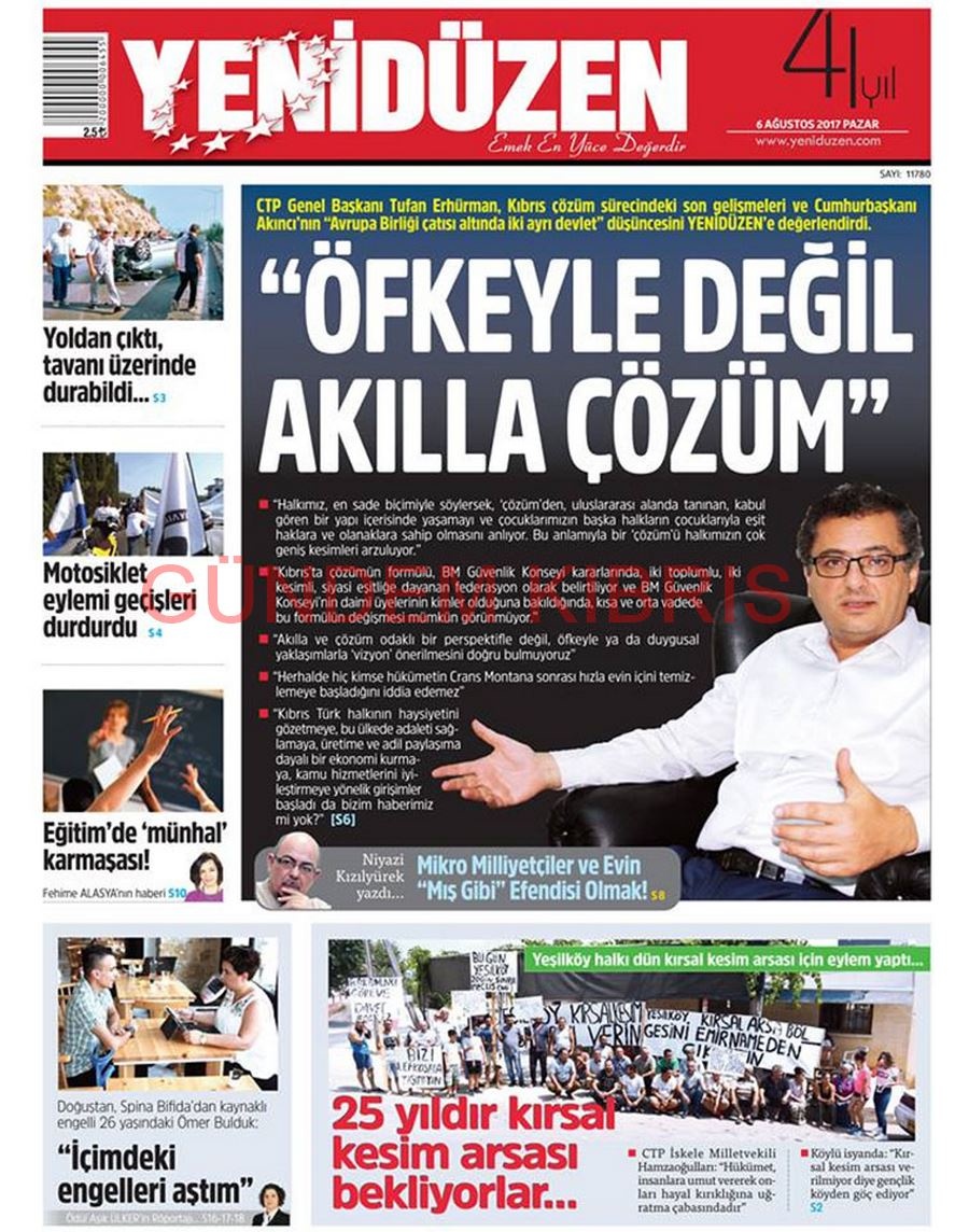 KKTC Gazete Manşetleri 6 Ağustos 2017