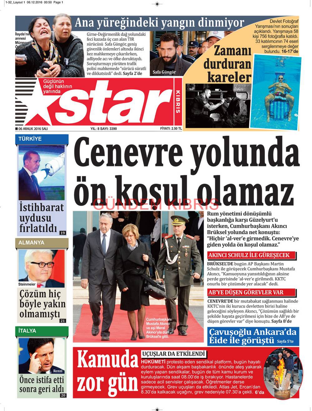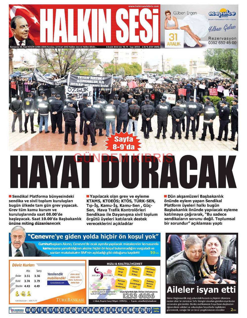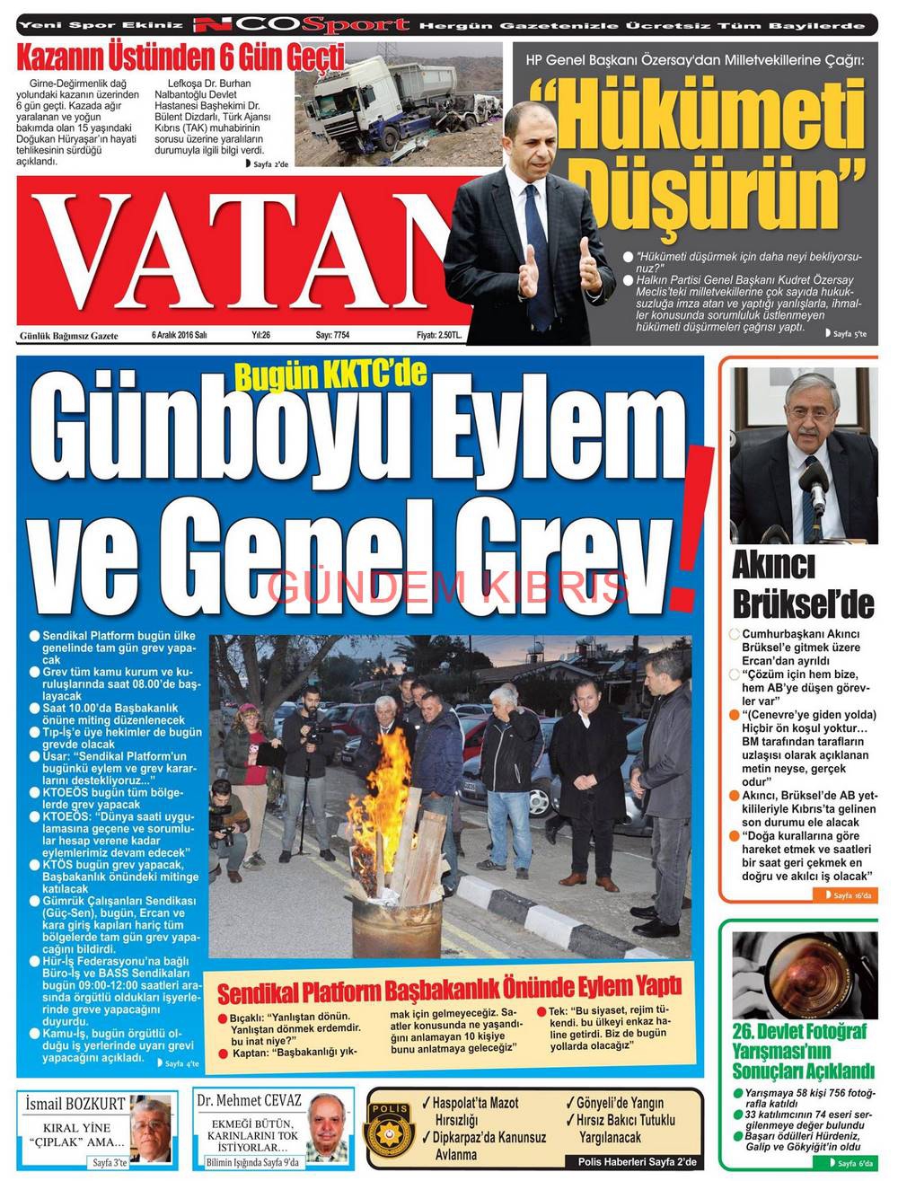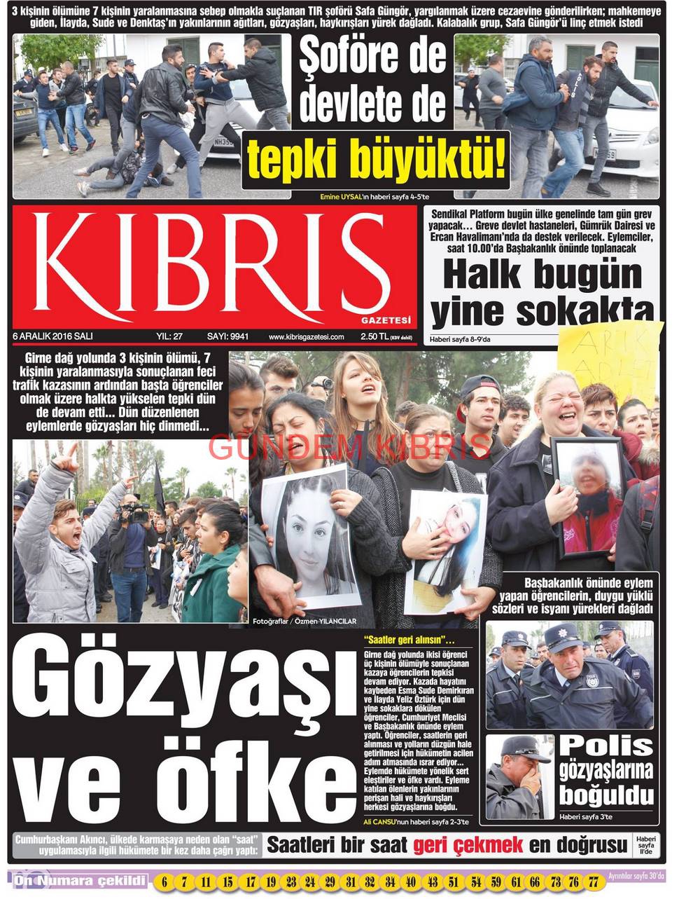 KKTC Gazete Manşetleri 6 Aralık 2016
