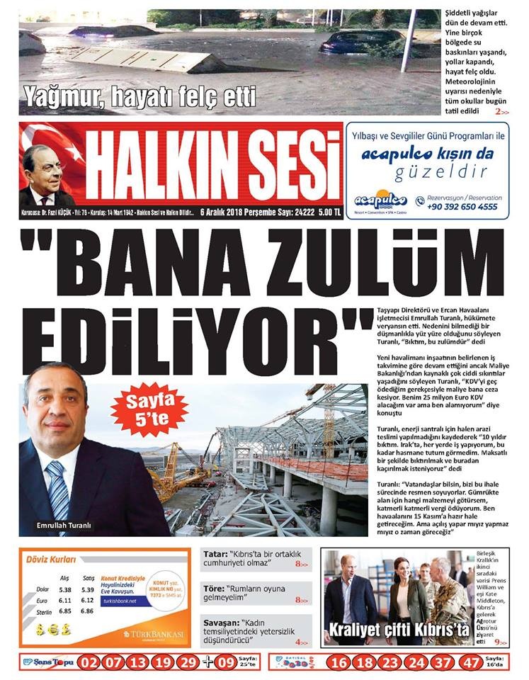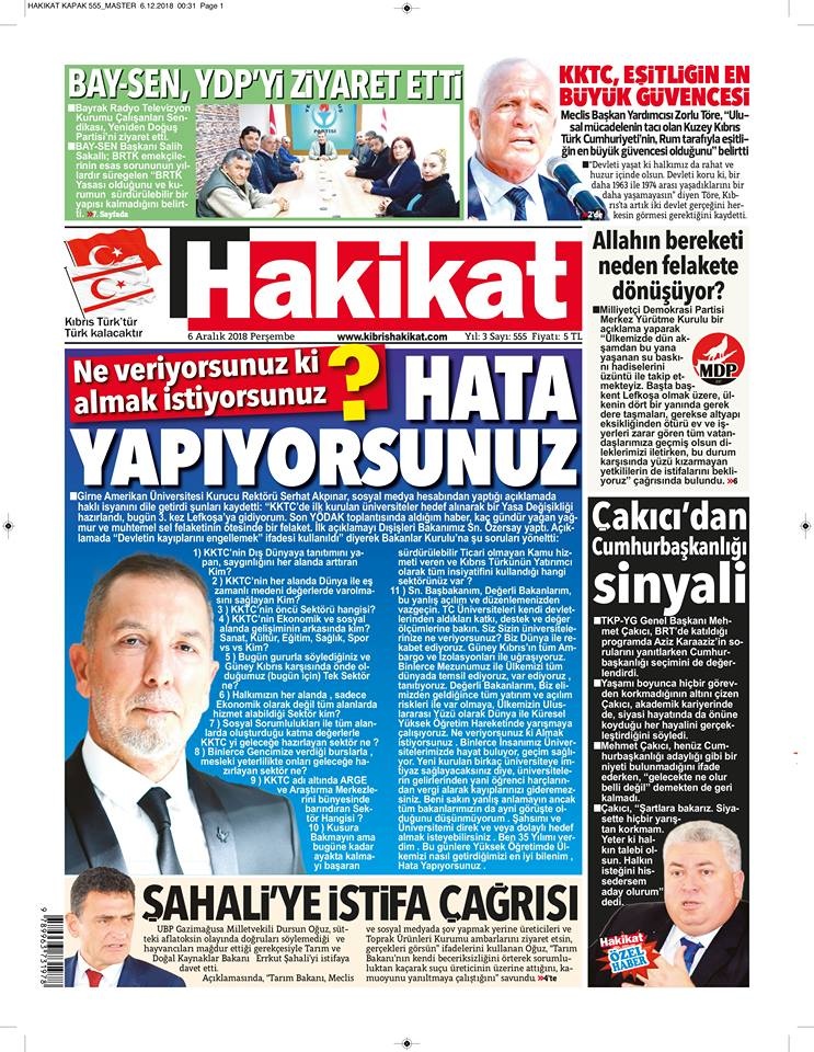 KKTC Gazete Manşetleri - 6 Aralık 2018
