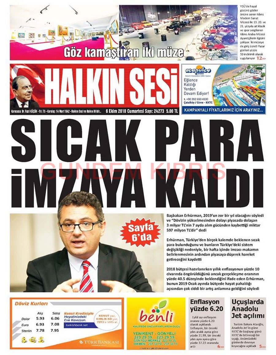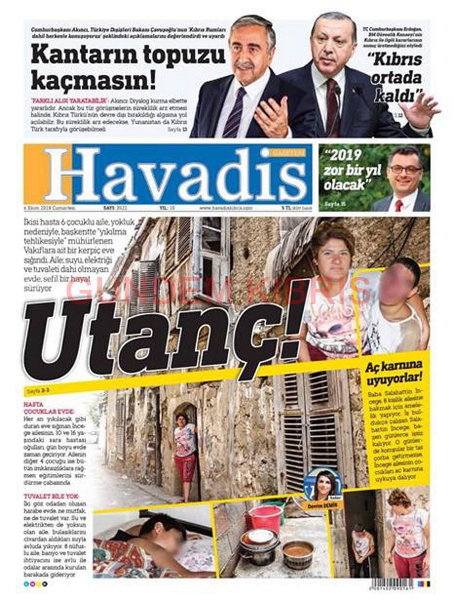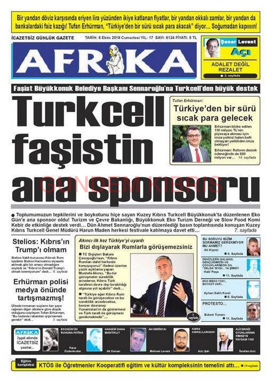 KKTC Gazete Manşetleri 6 Ekim 2018