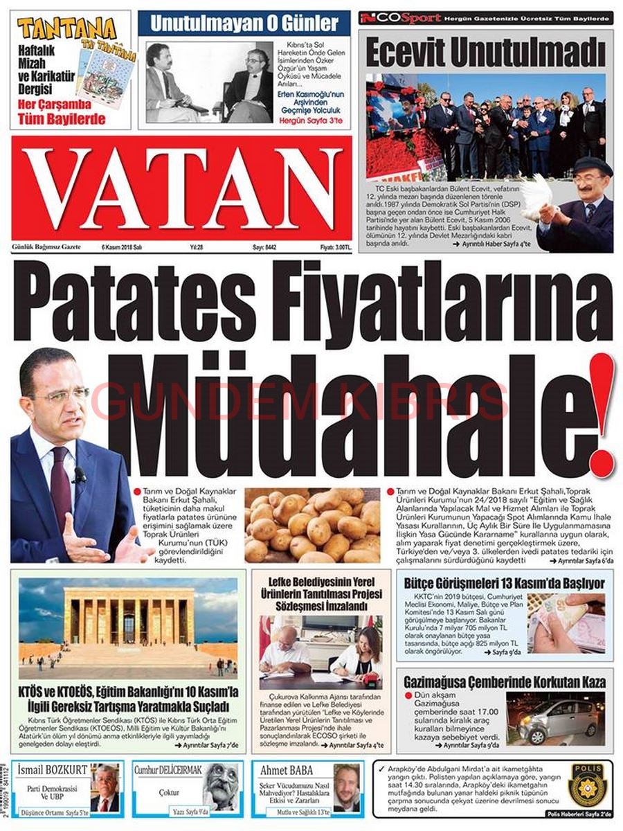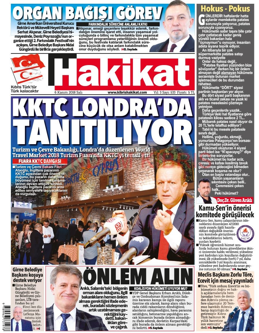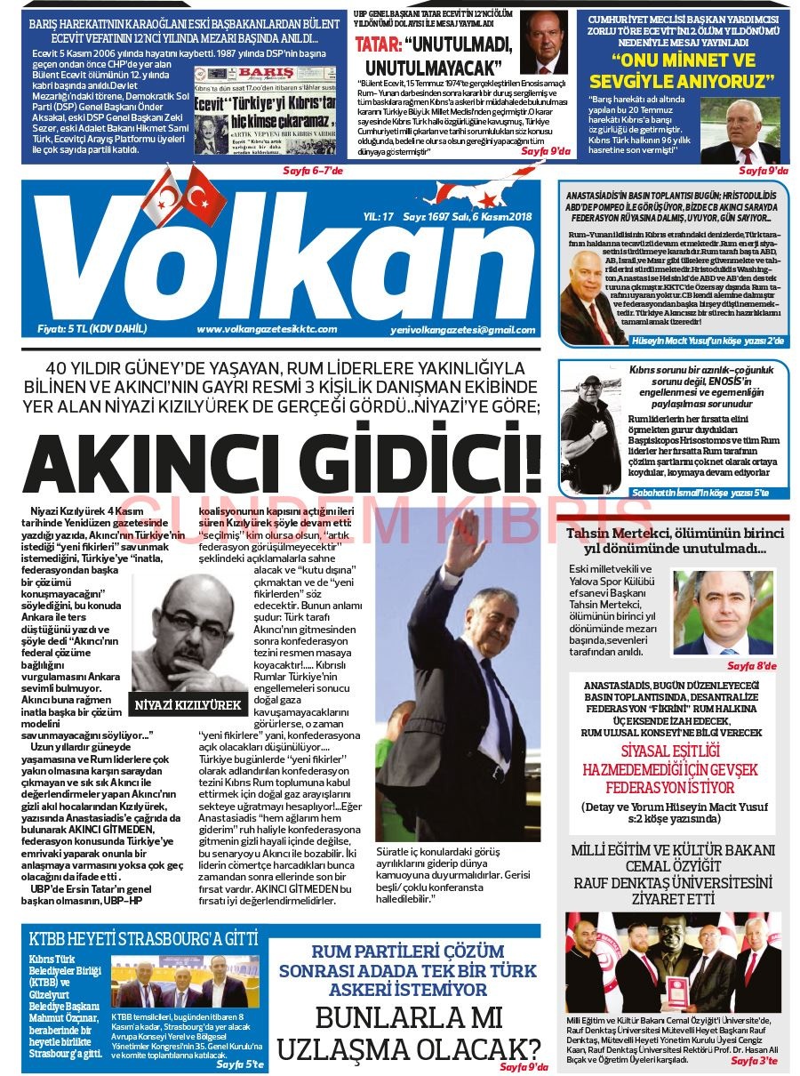 KKTC Gazete Manşetleri 6 Kasım 2018