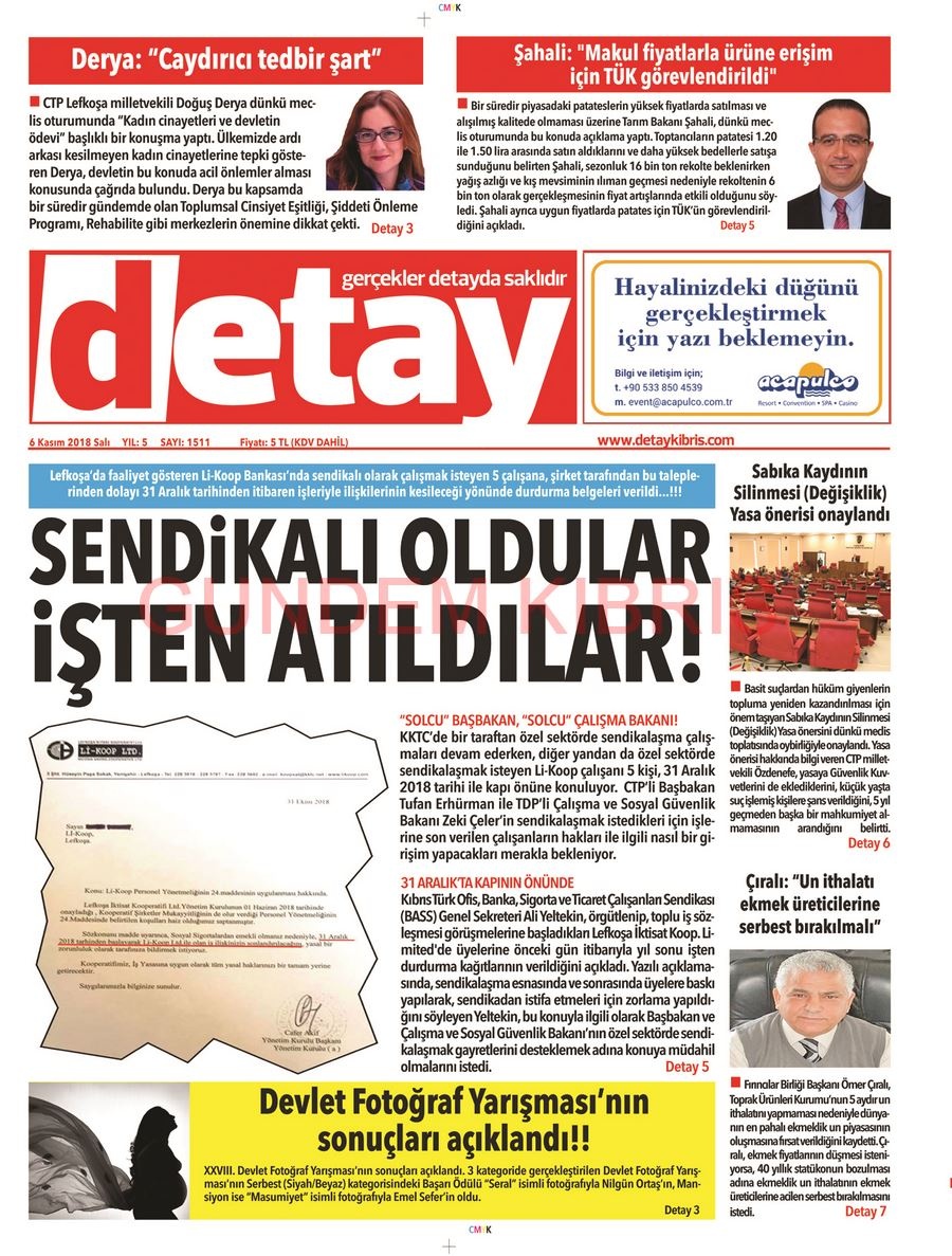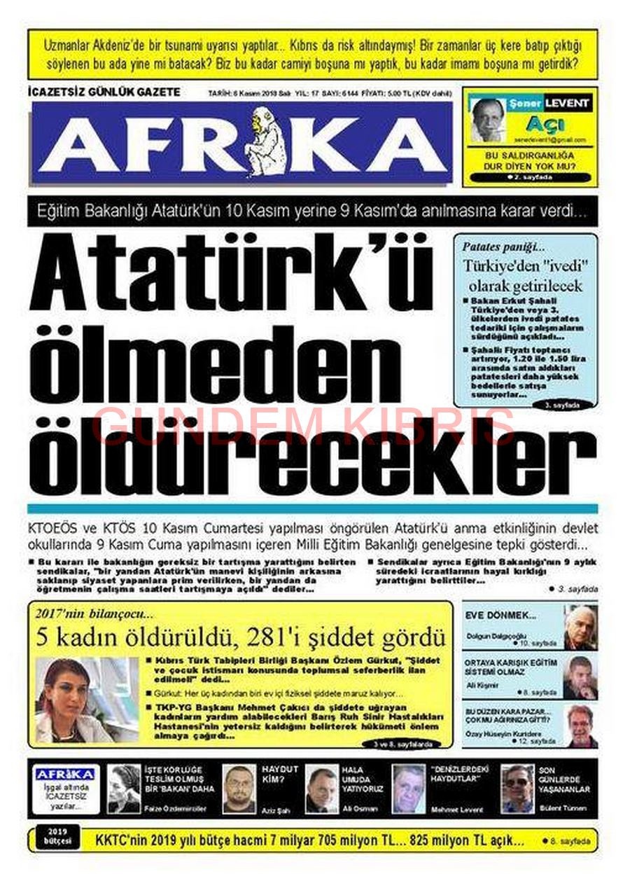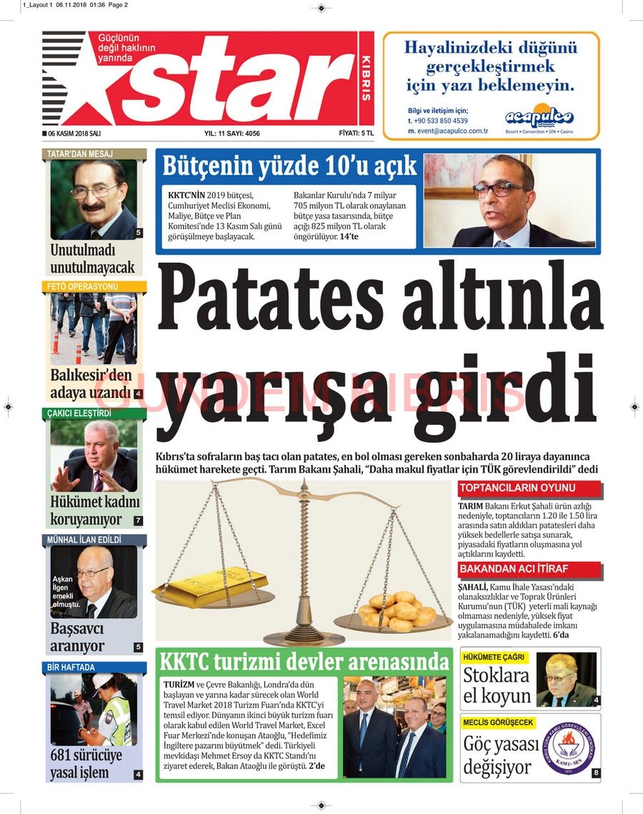 KKTC Gazete Manşetleri 6 Kasım 2018