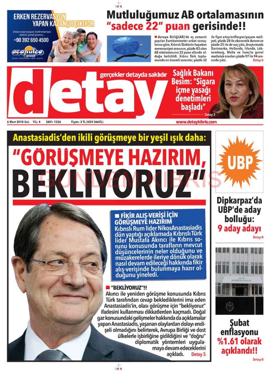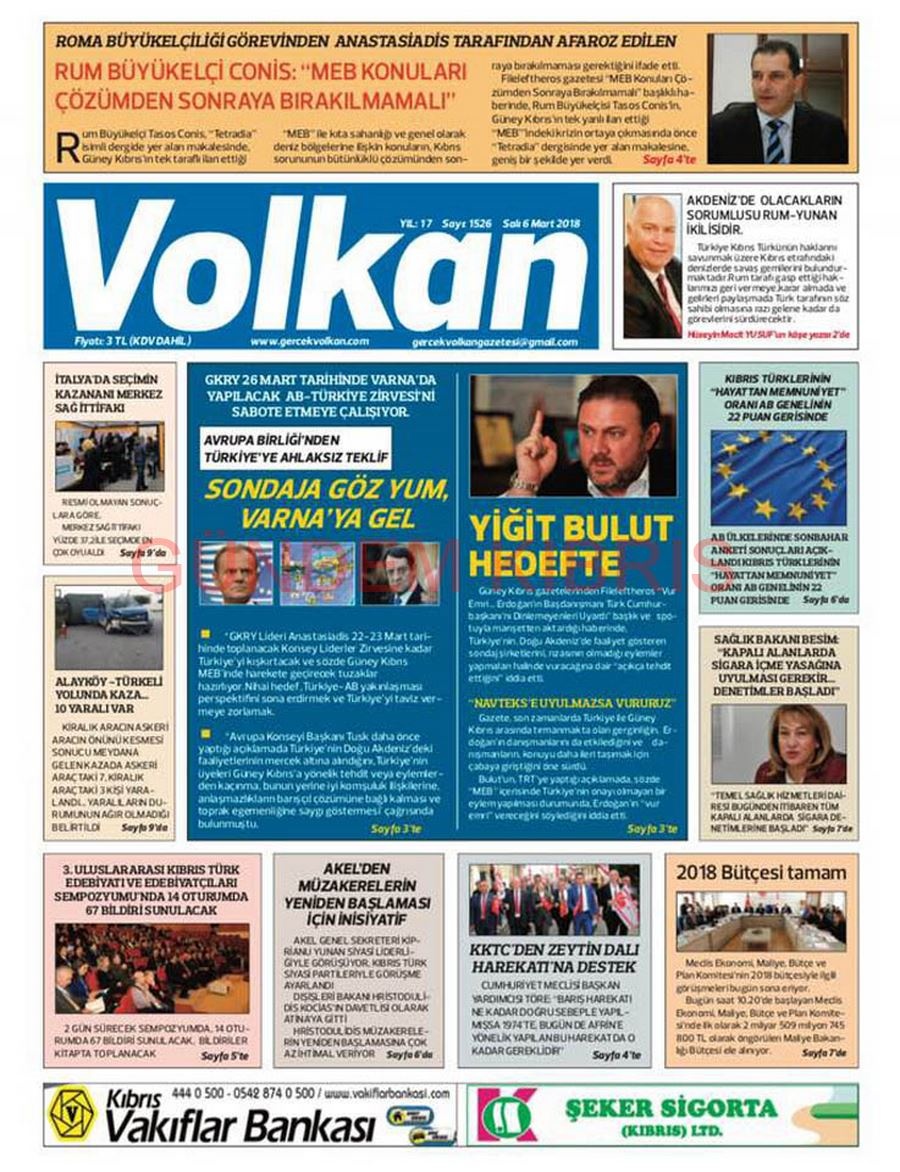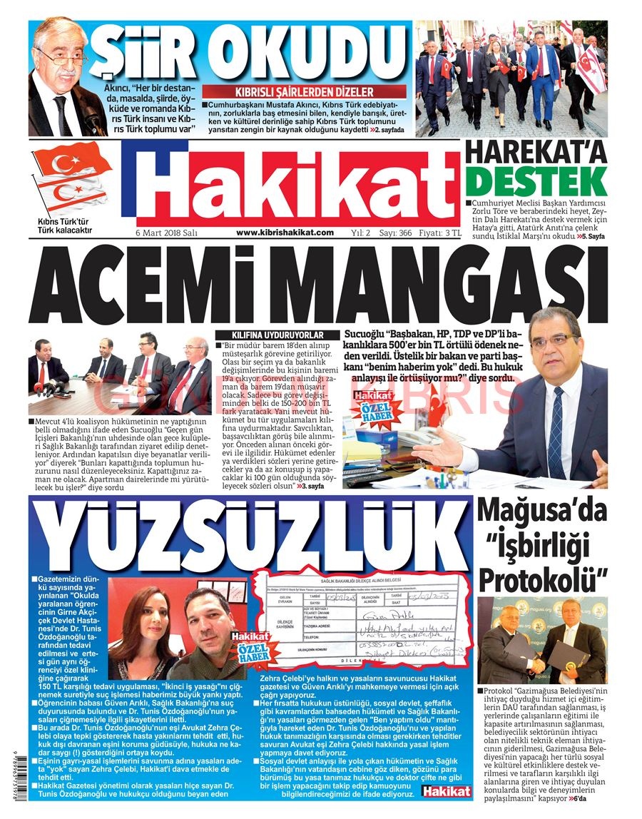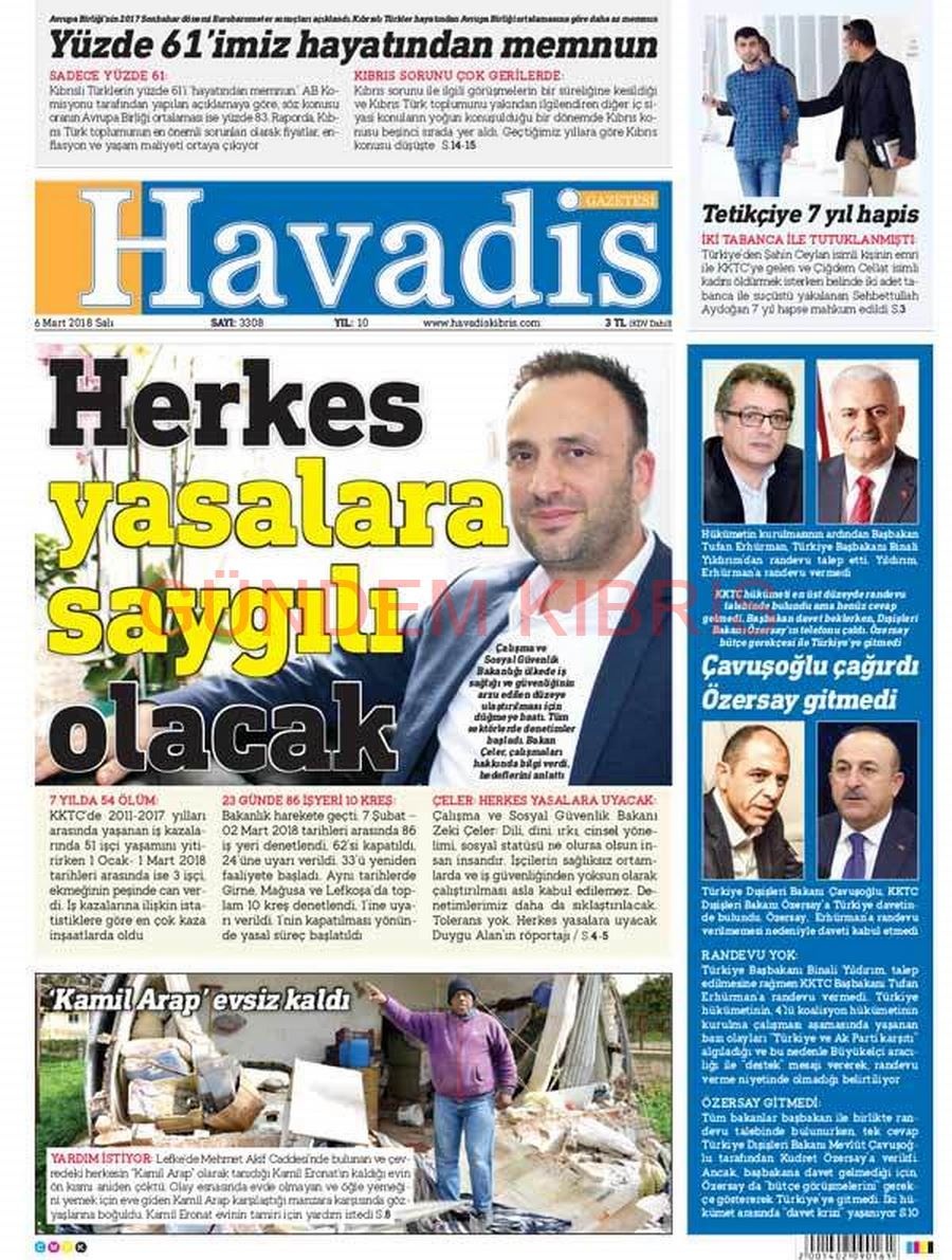 KKTC Gazete Manşetleri 6 Mart 2018