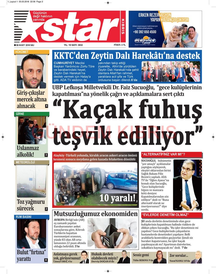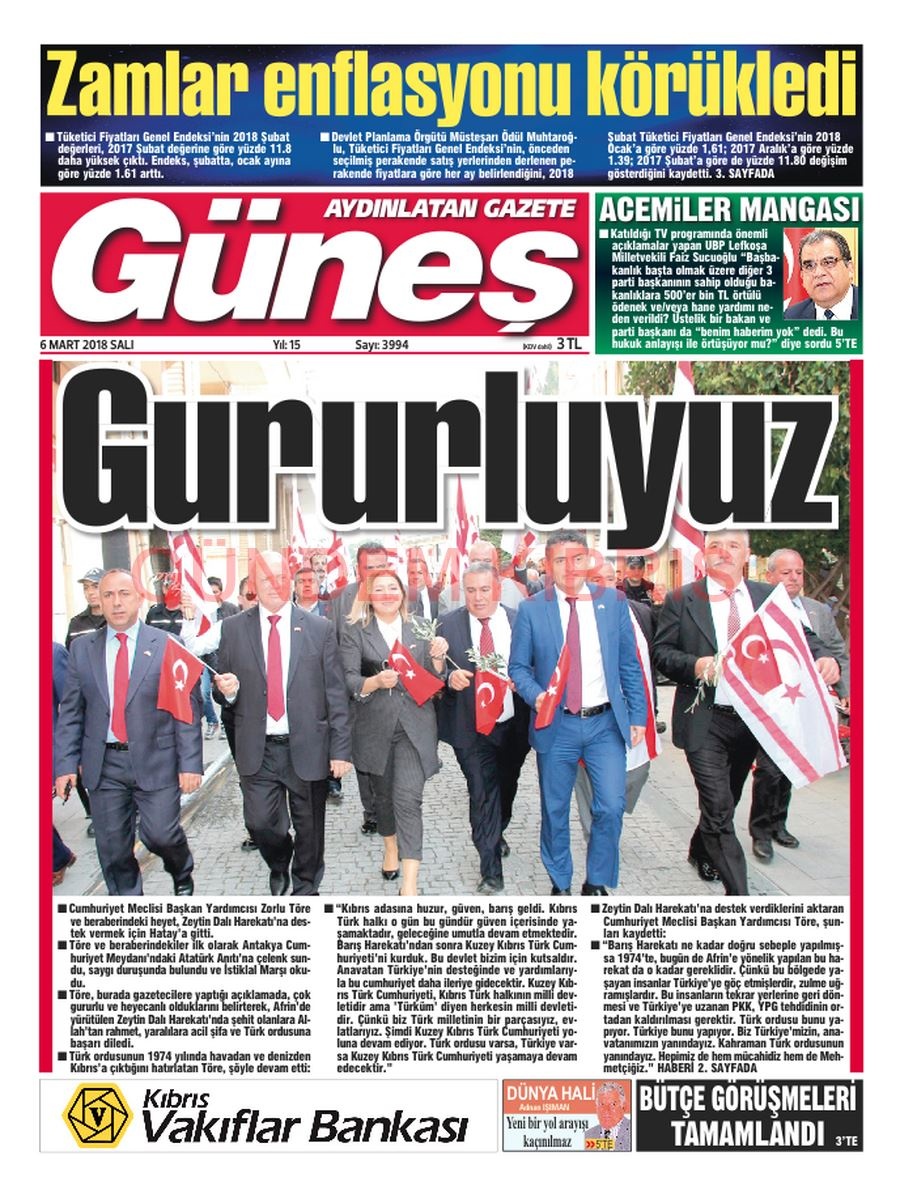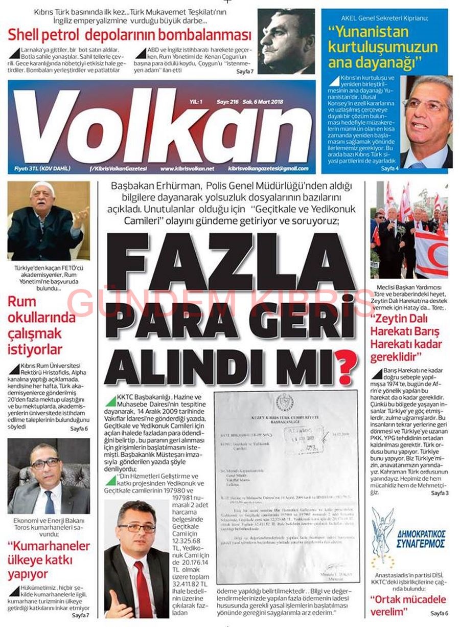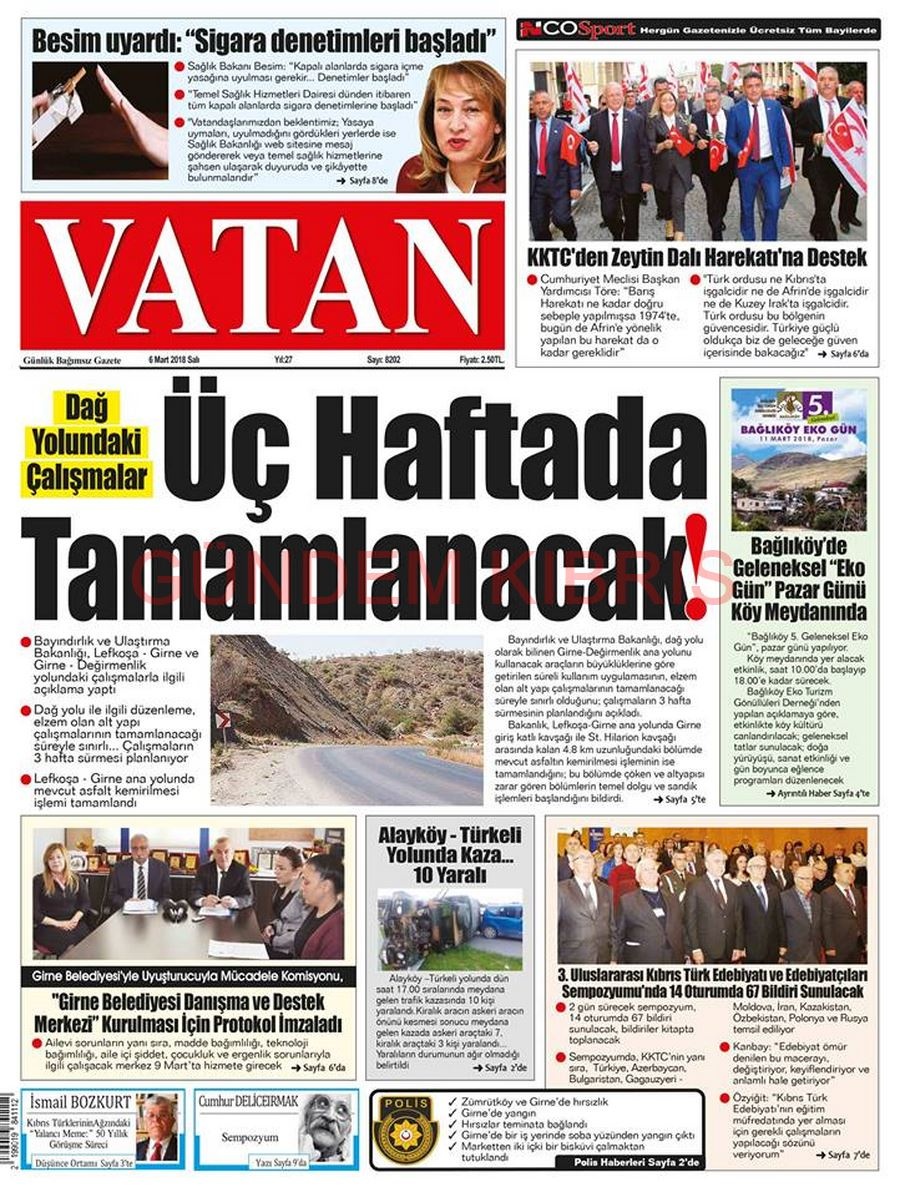 KKTC Gazete Manşetleri 6 Mart 2018