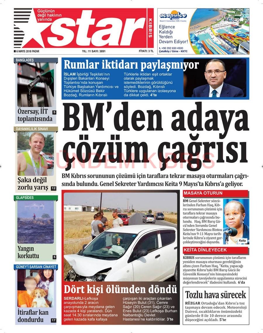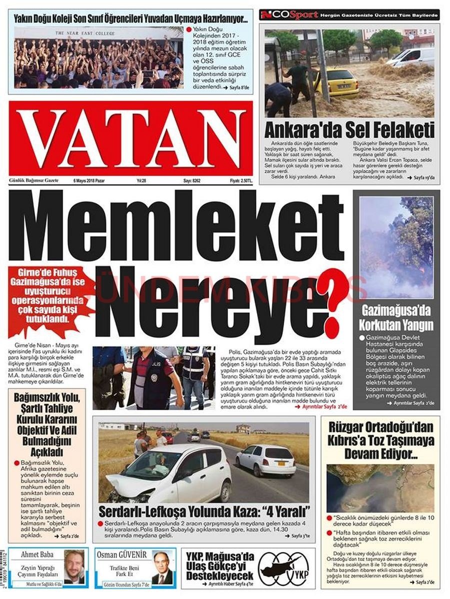 KKTC Gazete Manşetleri 6 Mayıs 2018
