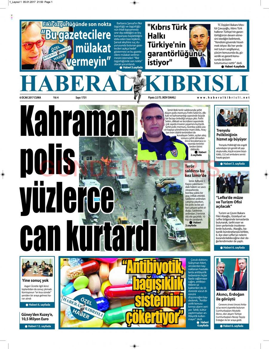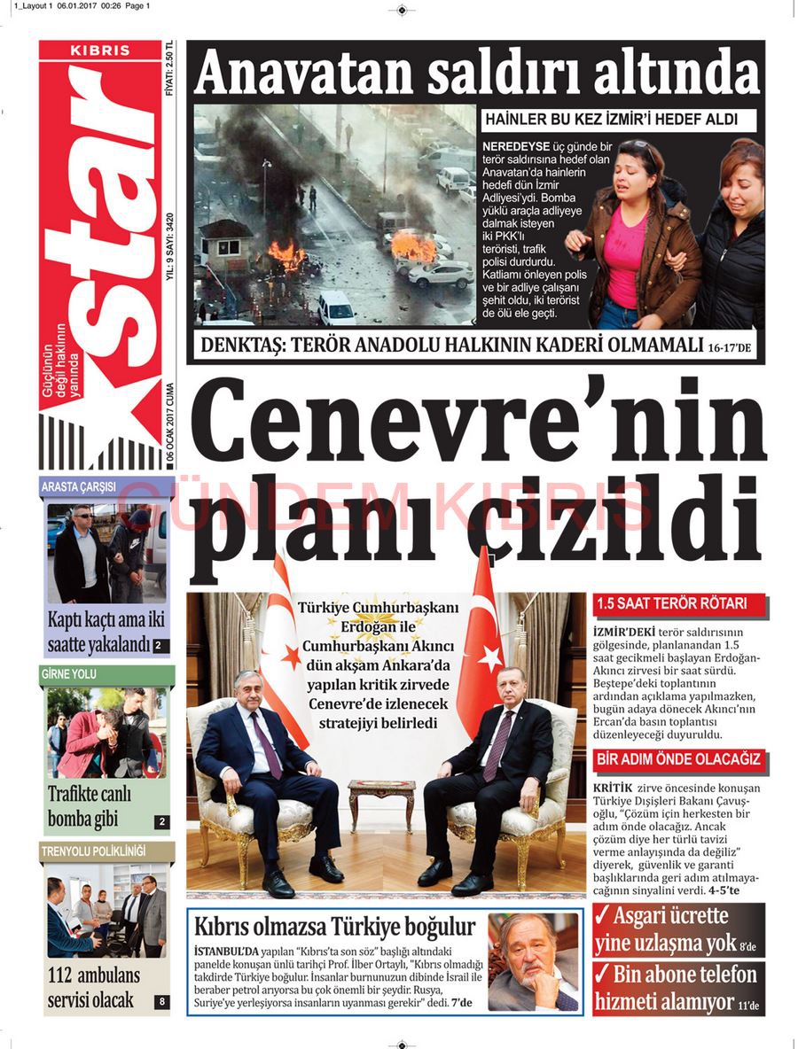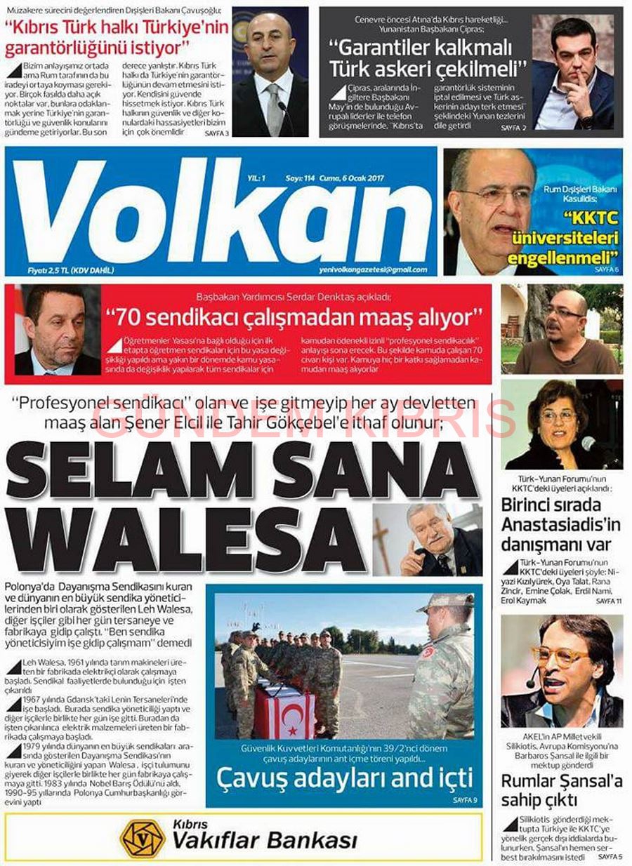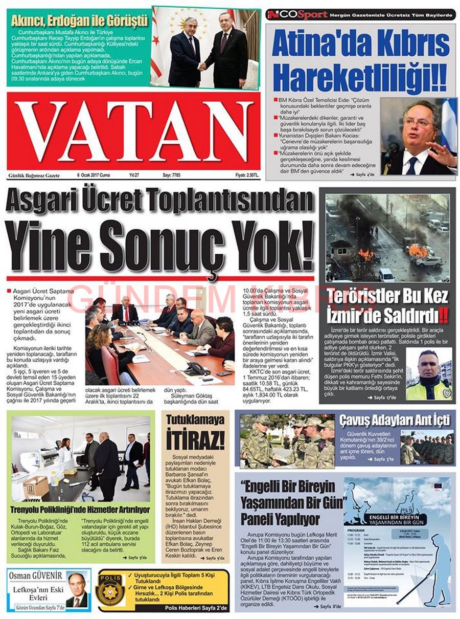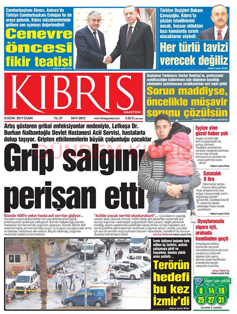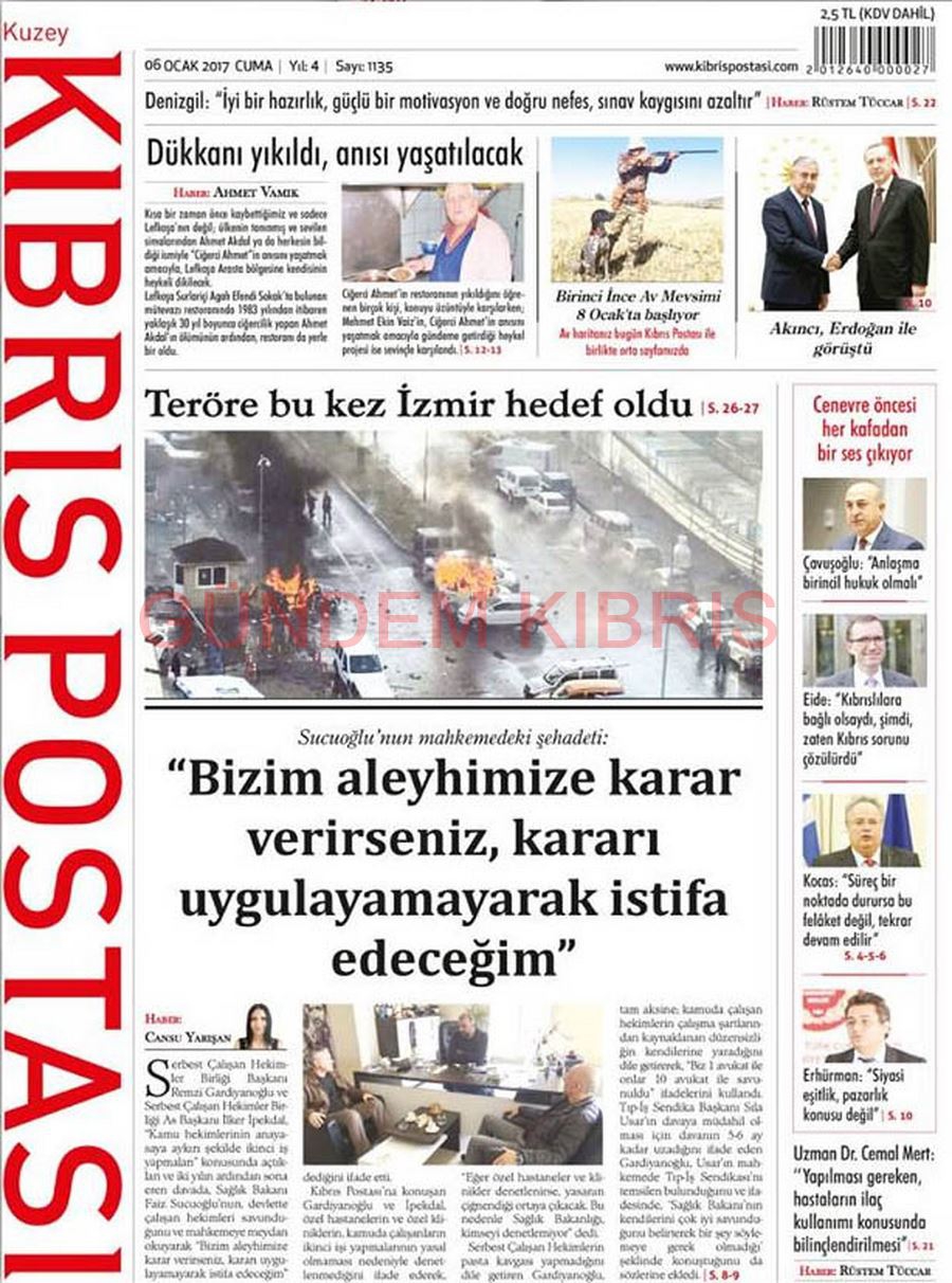 KKTC Gazete Manşetleri 6 Ocak 2017