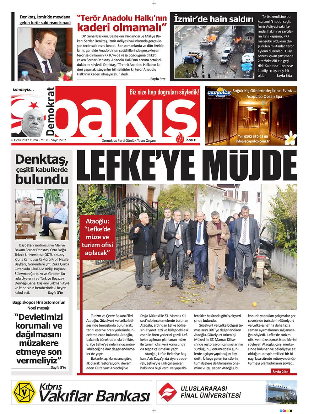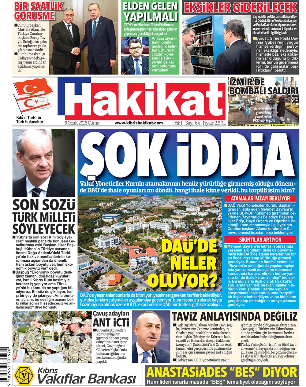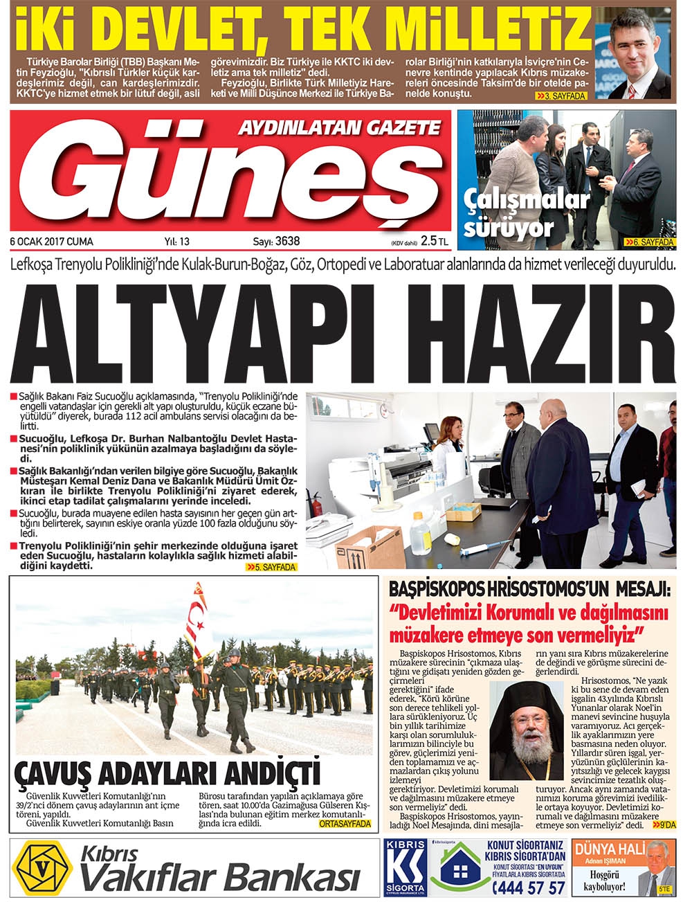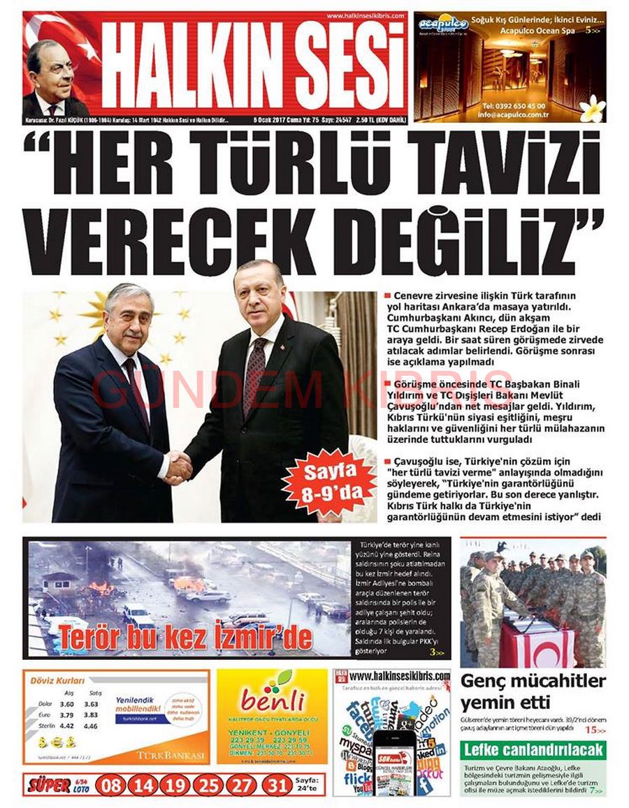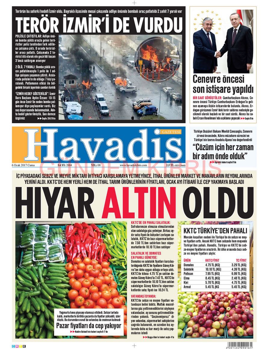 KKTC Gazete Manşetleri 6 Ocak 2017