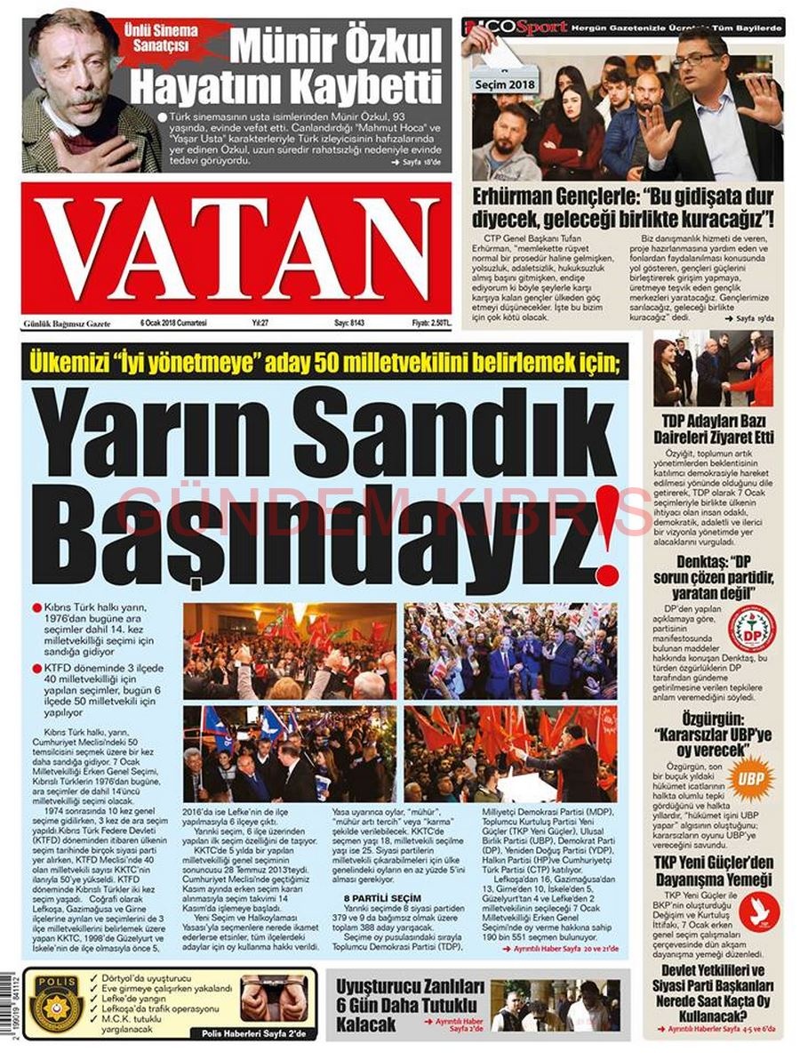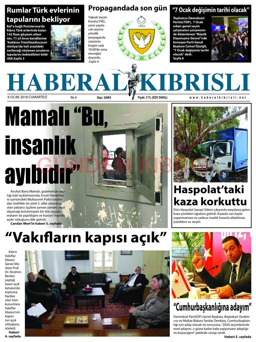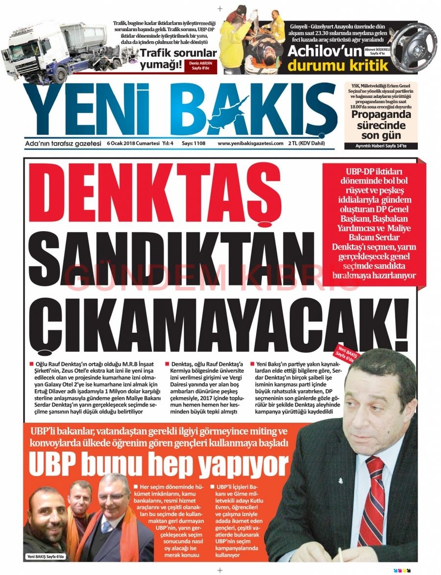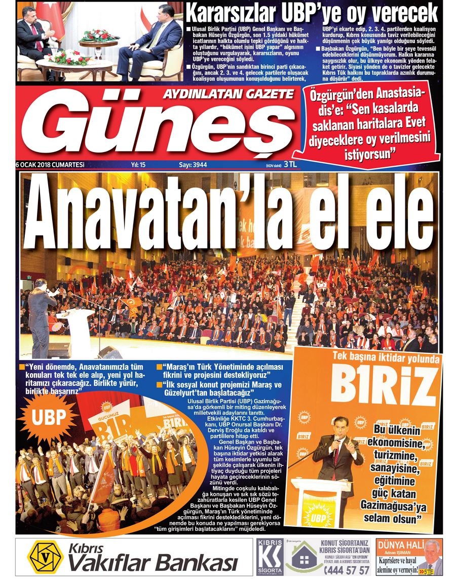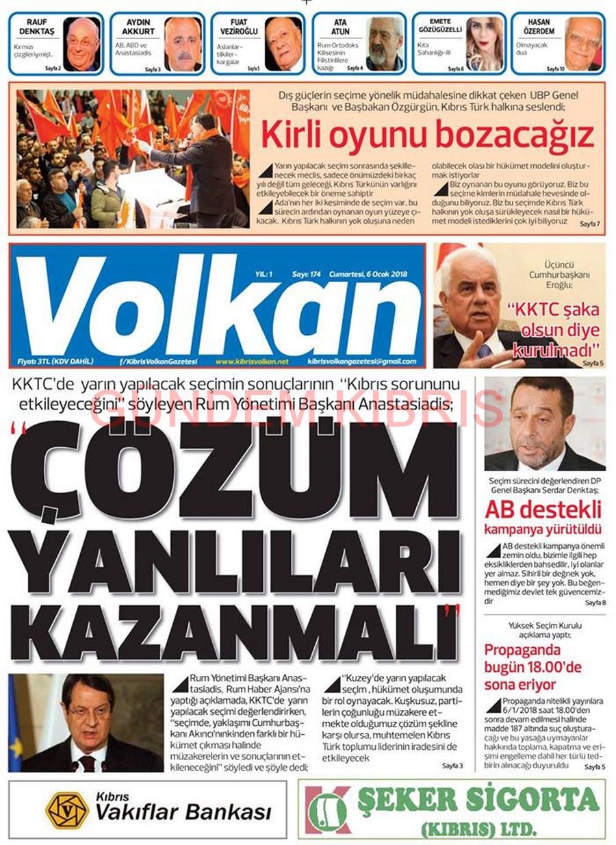 KKTC Gazete Manşetleri 6 Ocak 2018