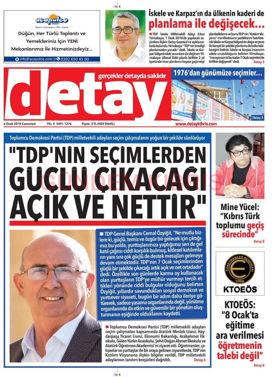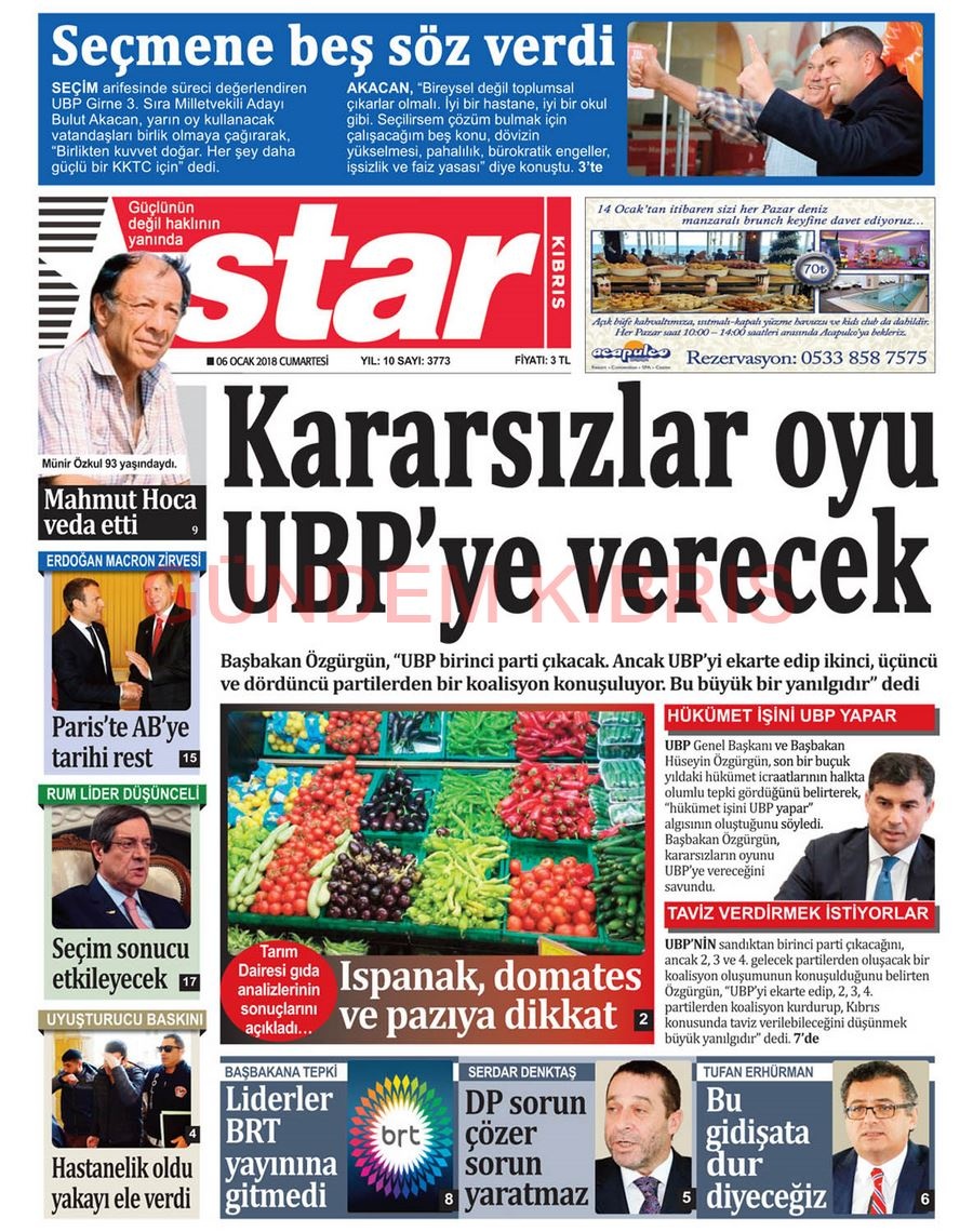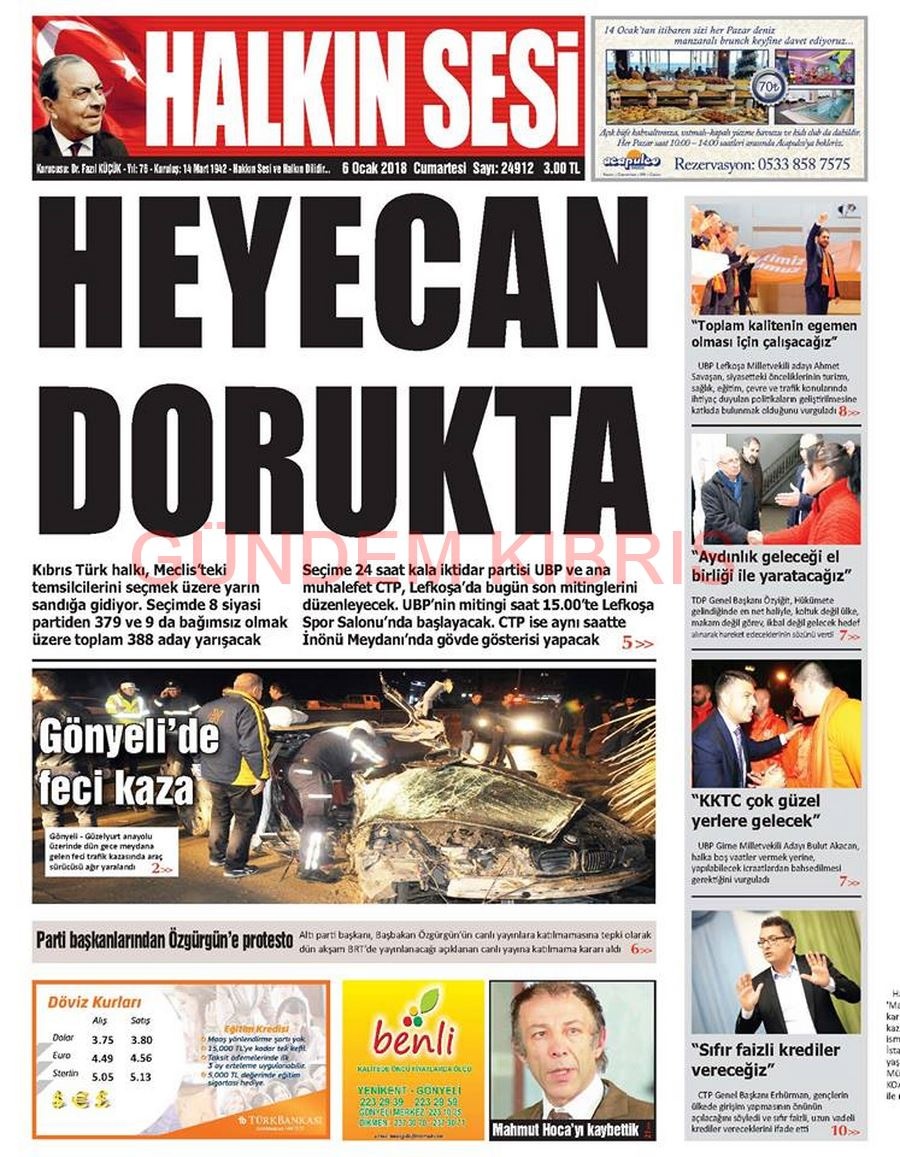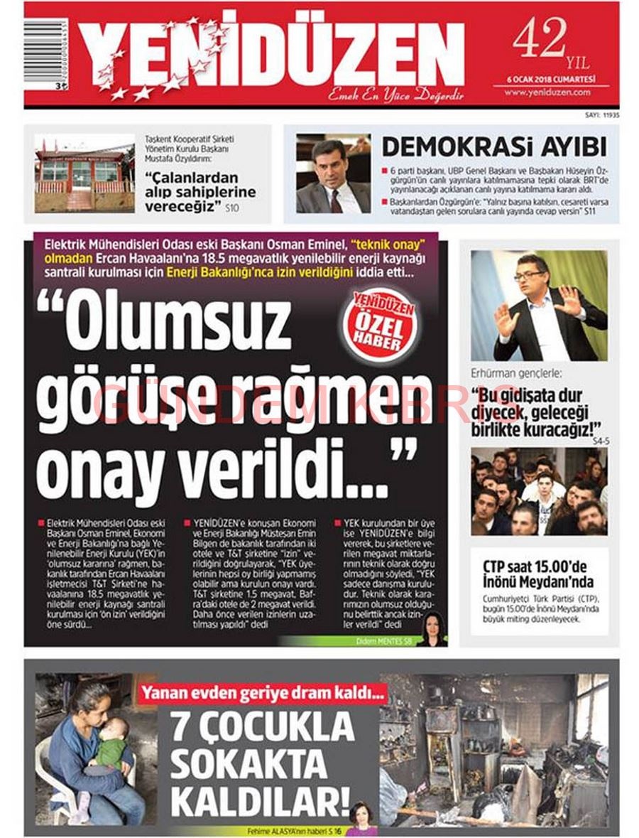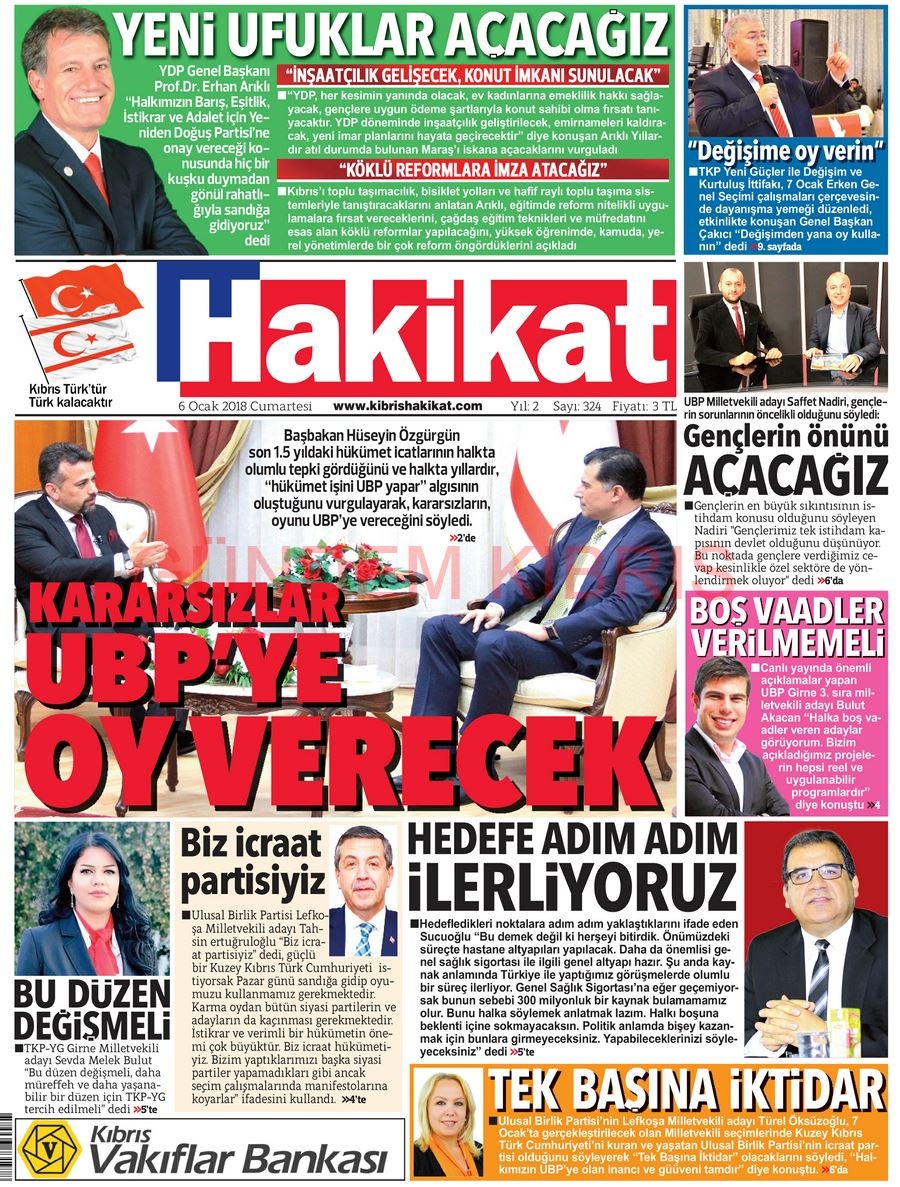 KKTC Gazete Manşetleri 6 Ocak 2018