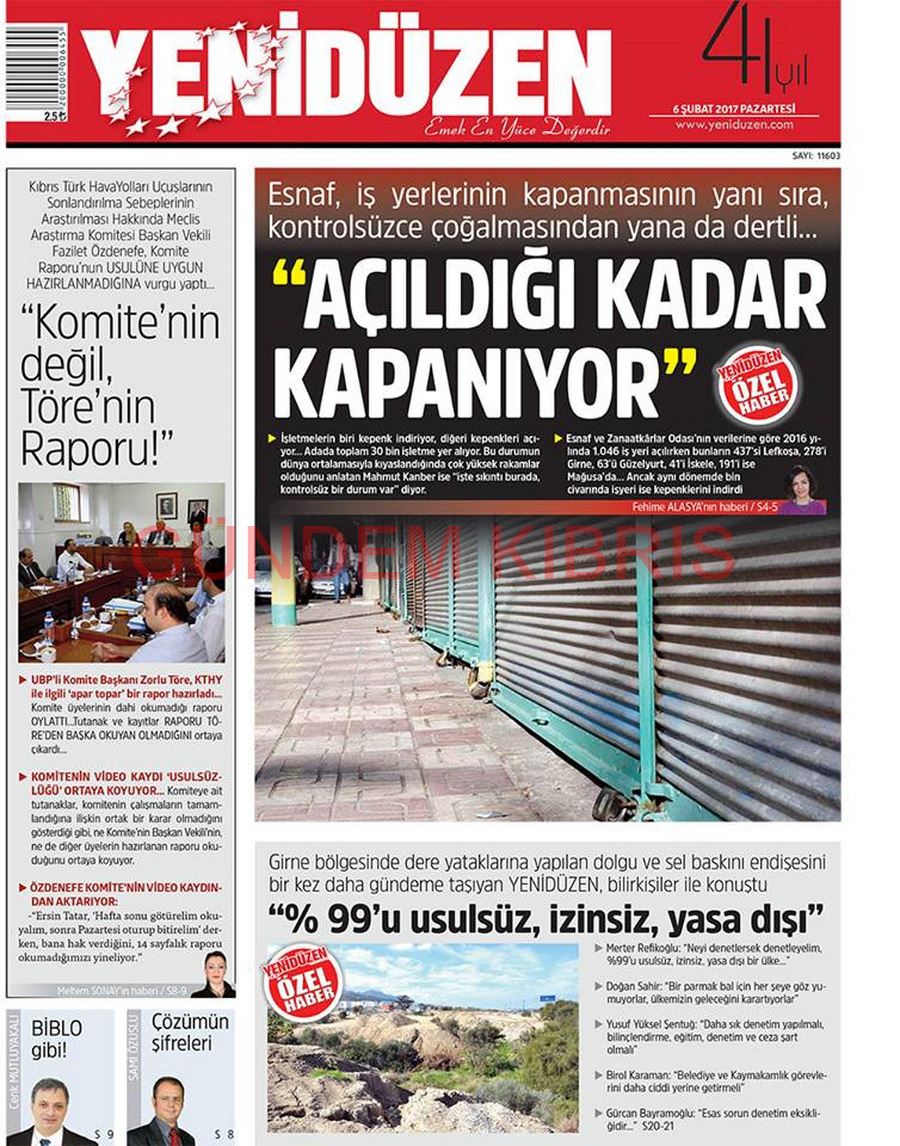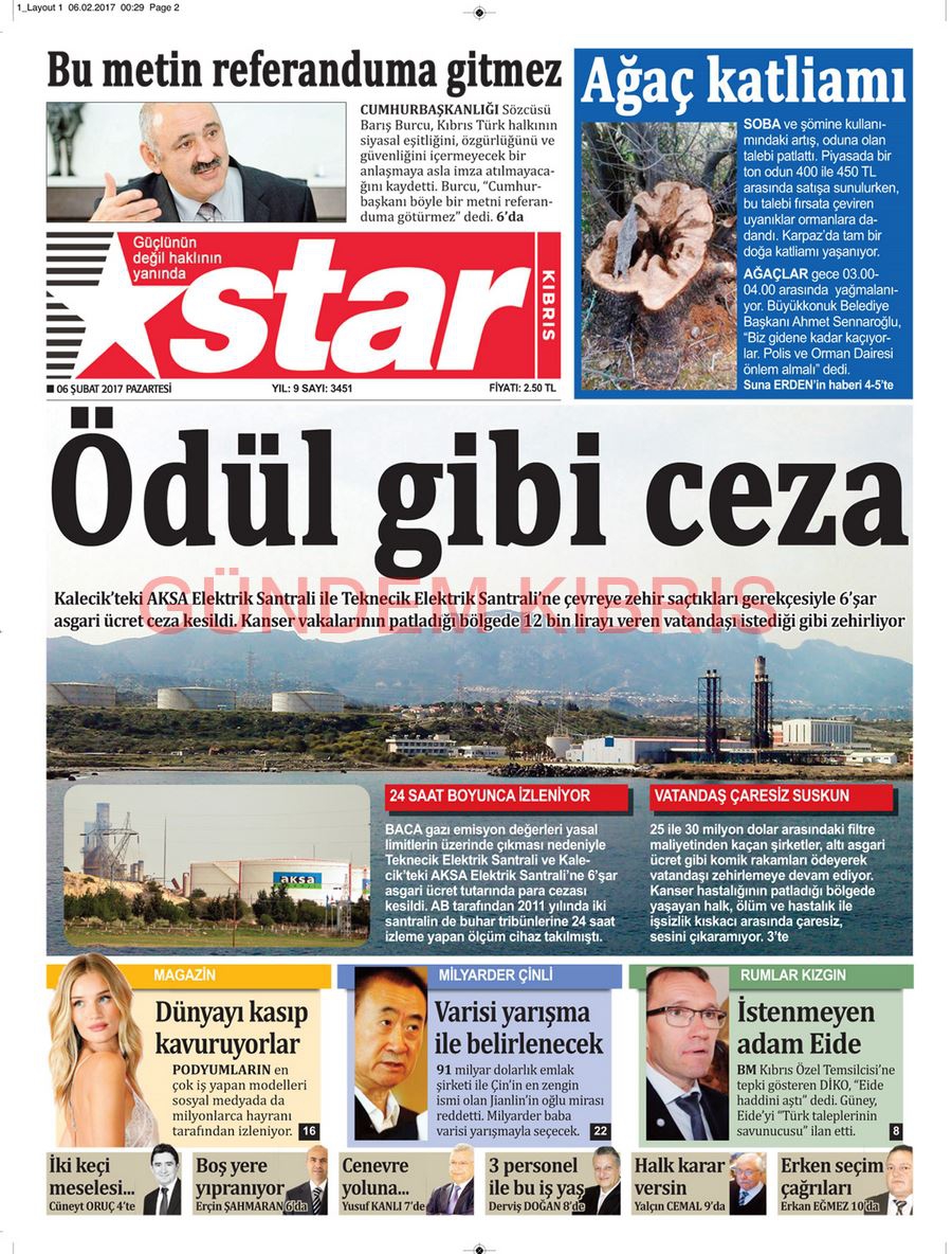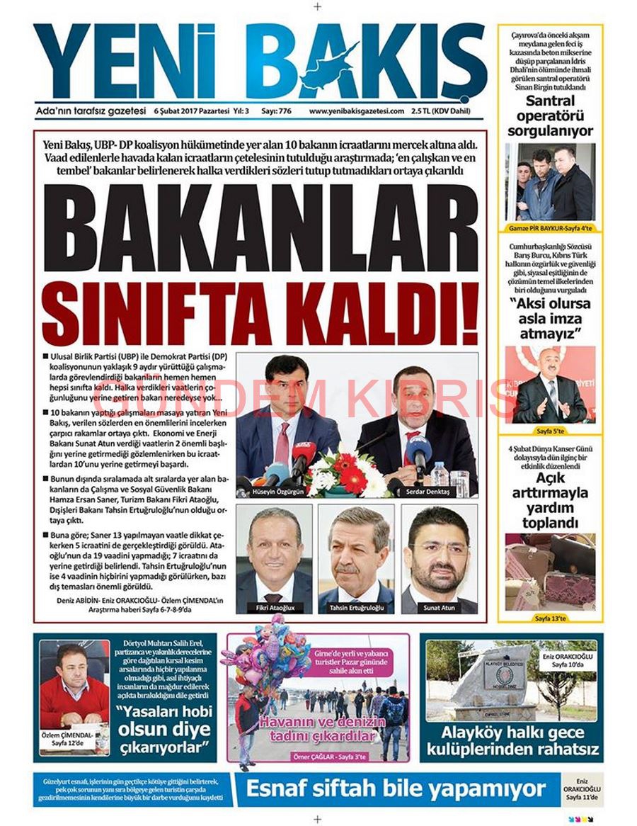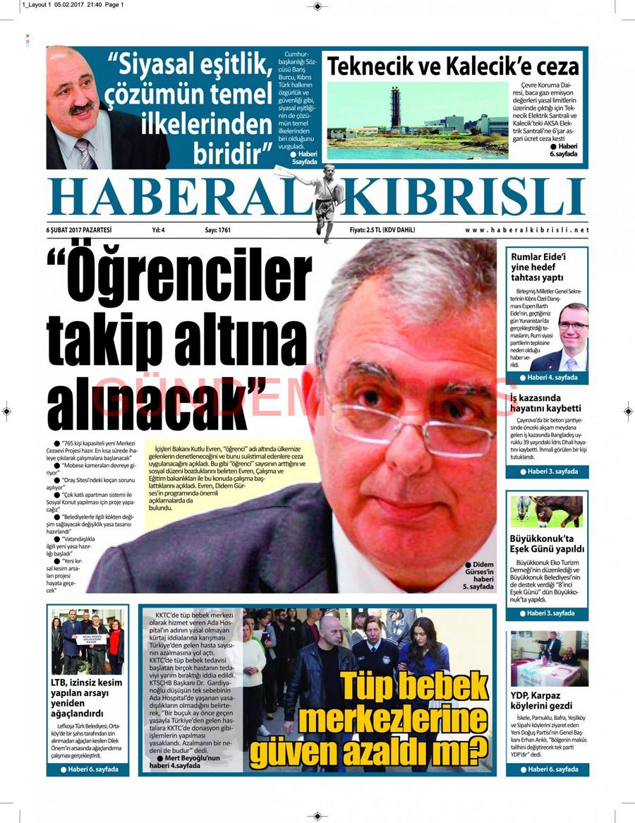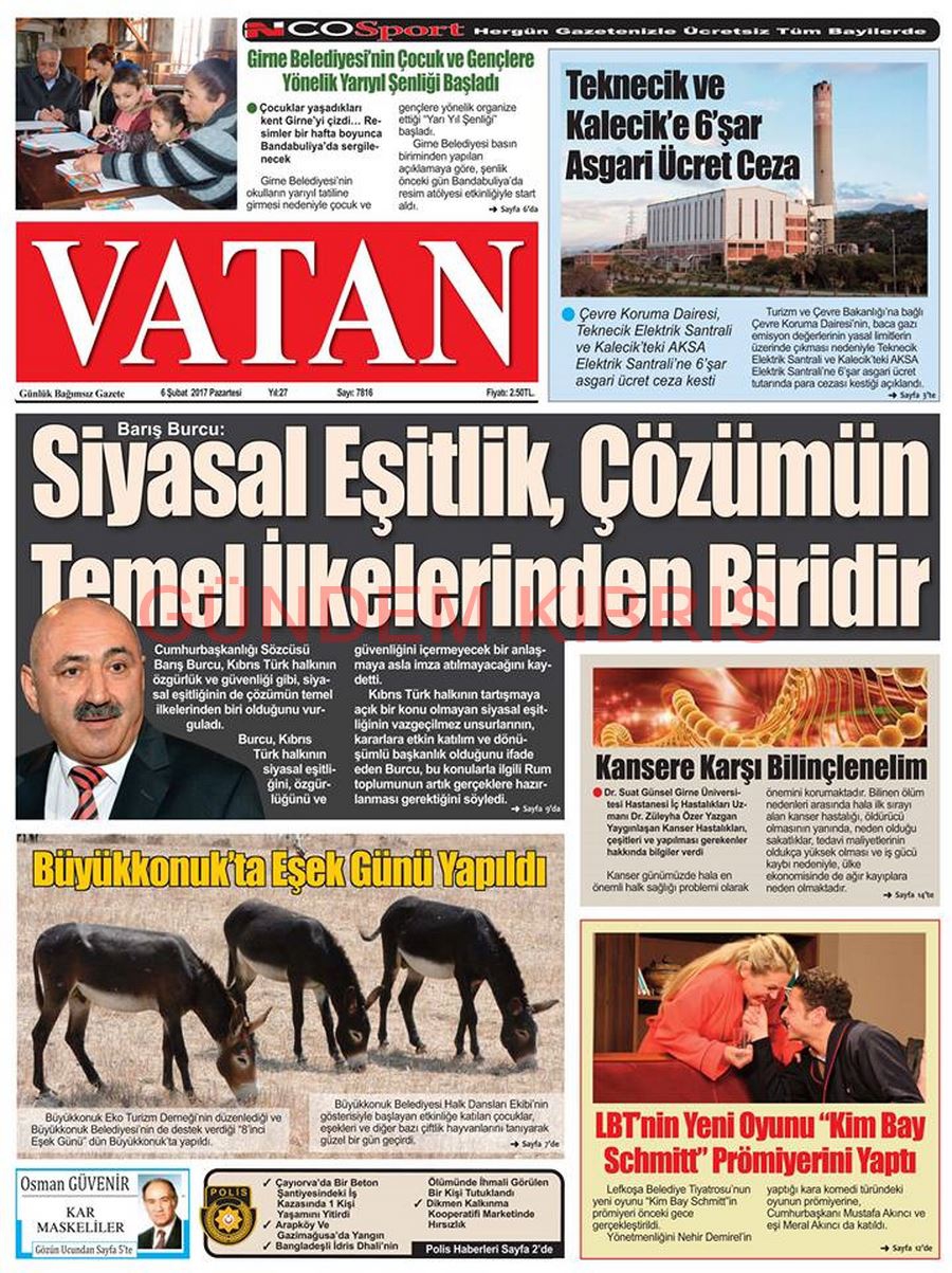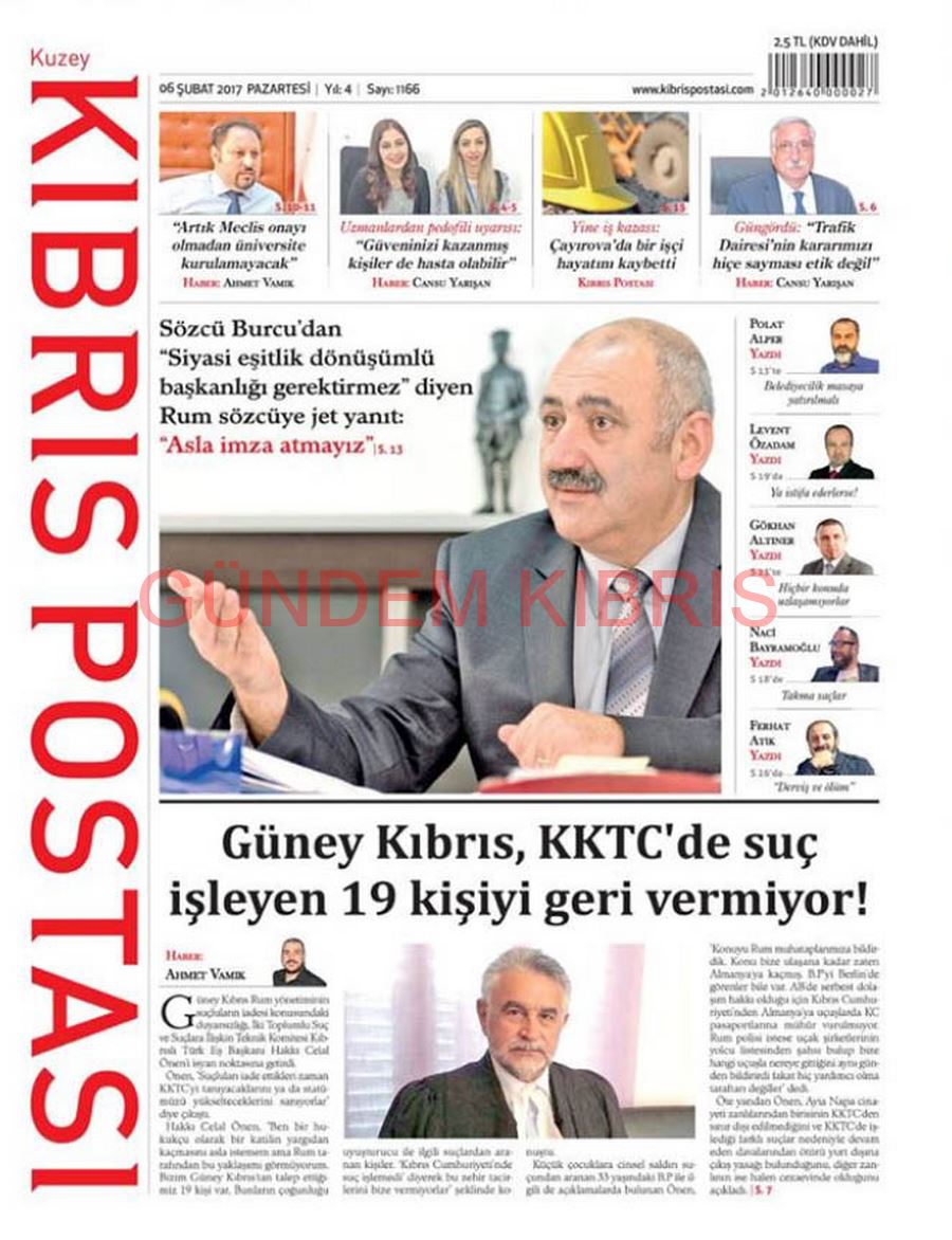 KKTC Gazete Manşetleri 6 Şubat 2017