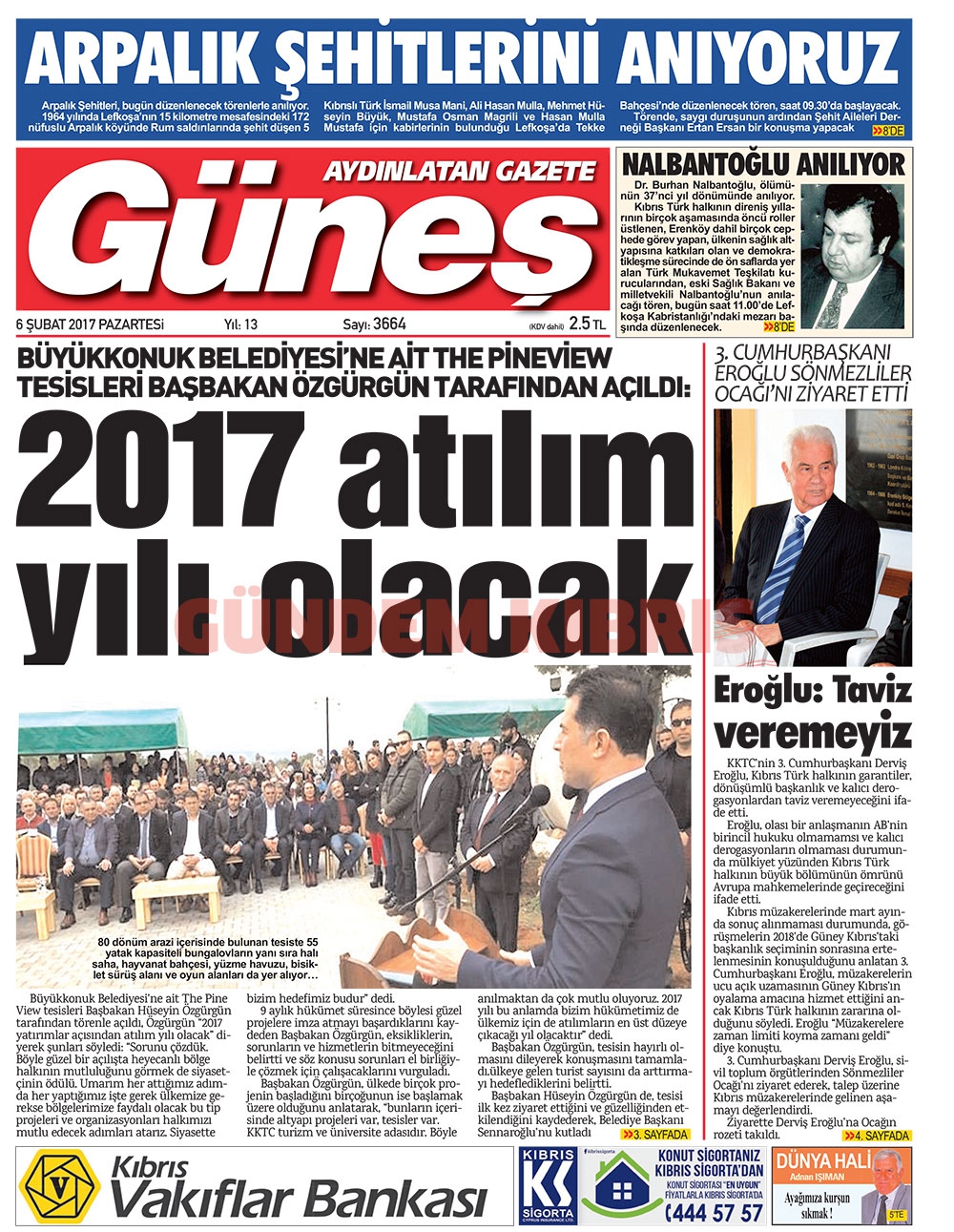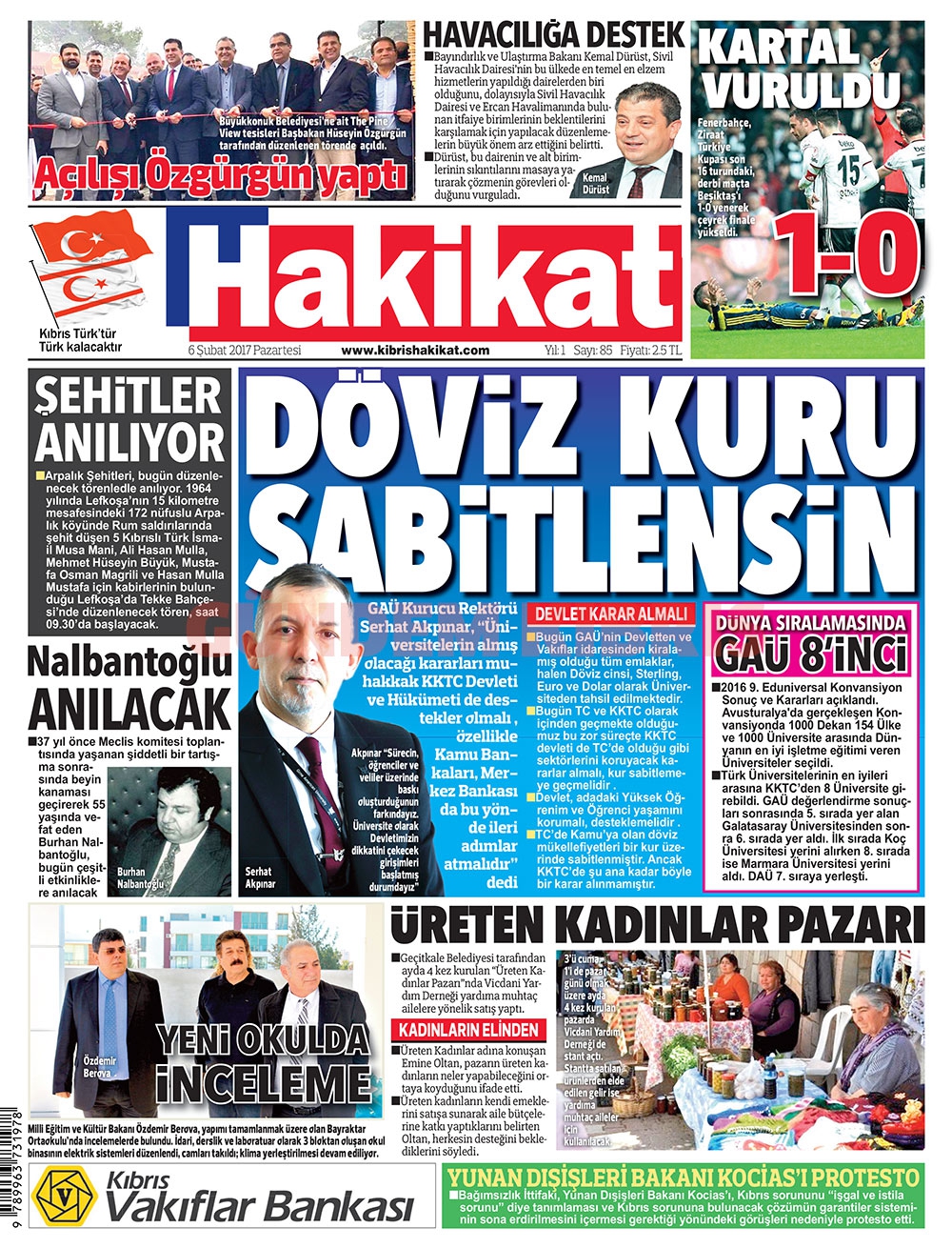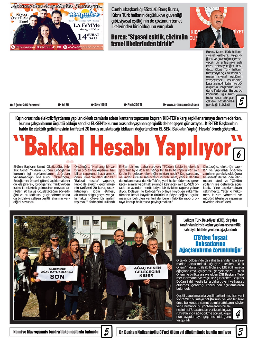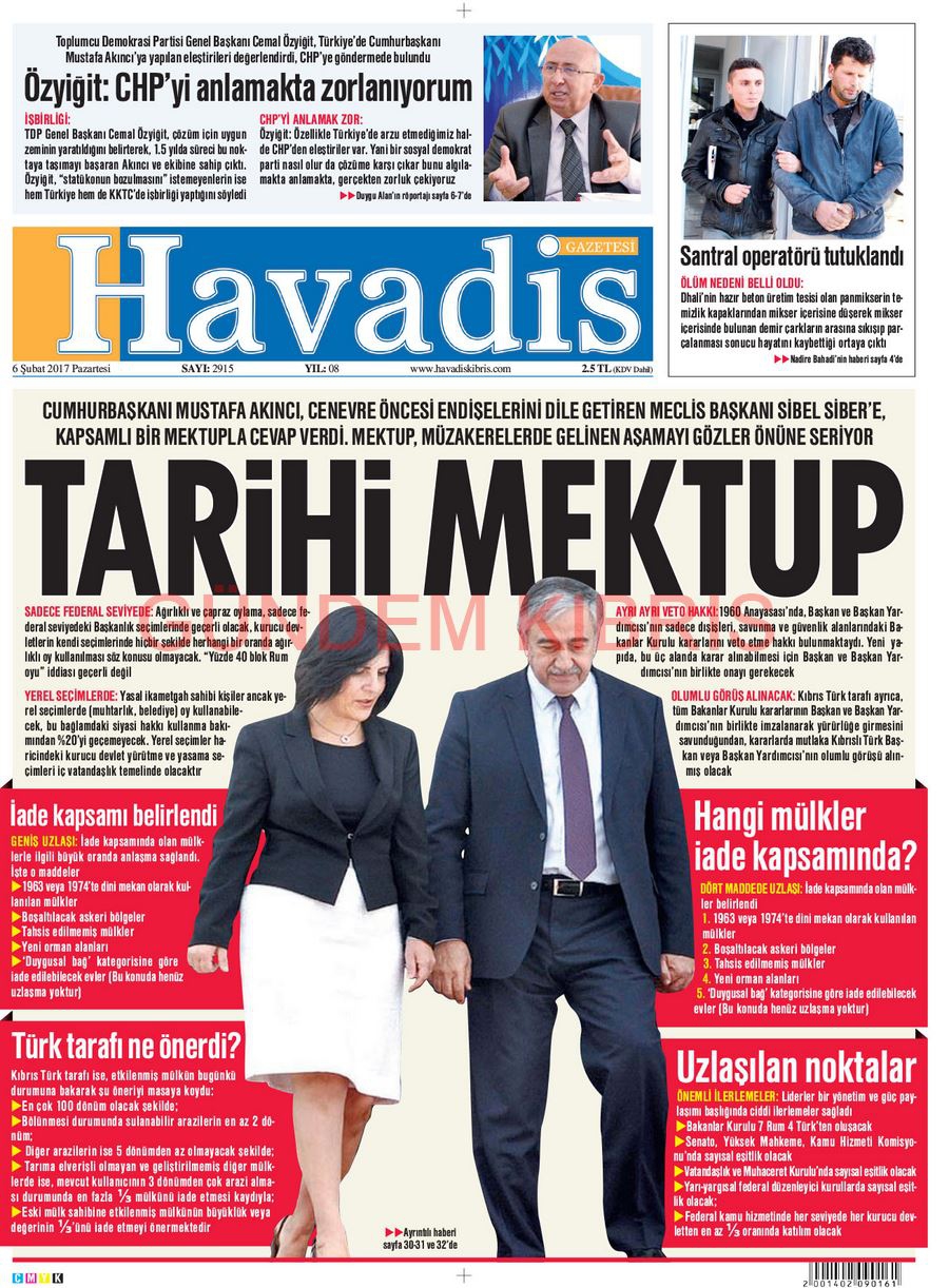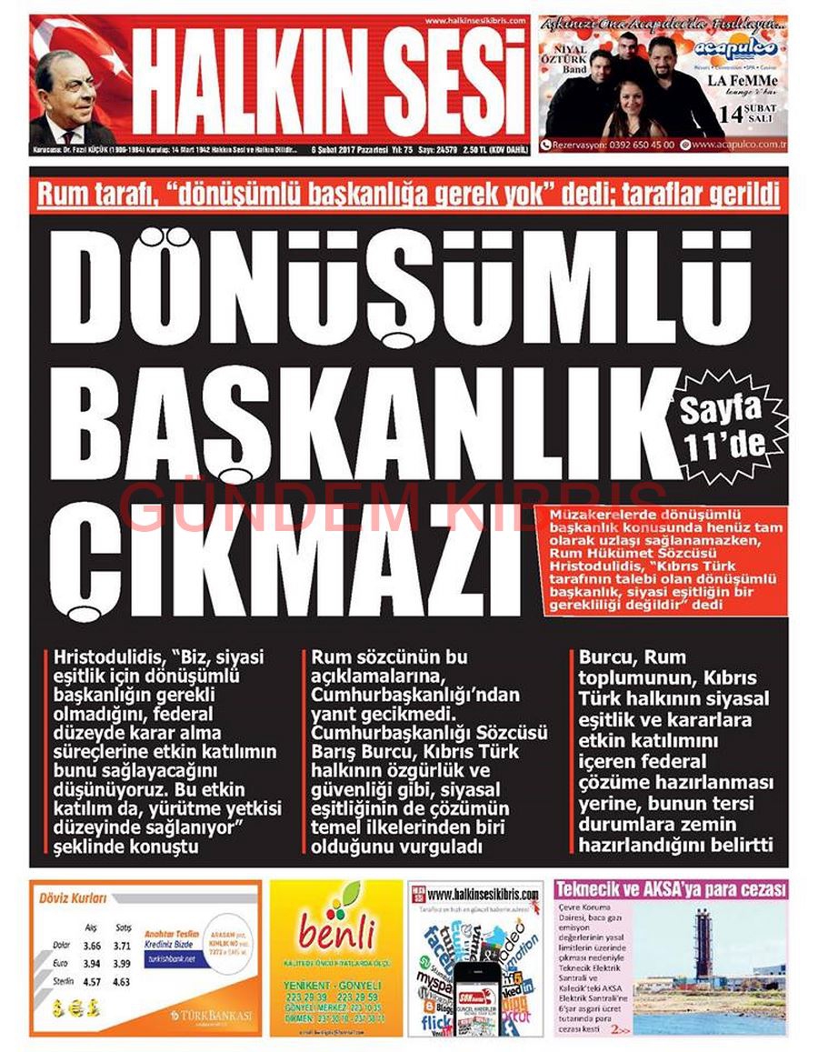 KKTC Gazete Manşetleri 6 Şubat 2017