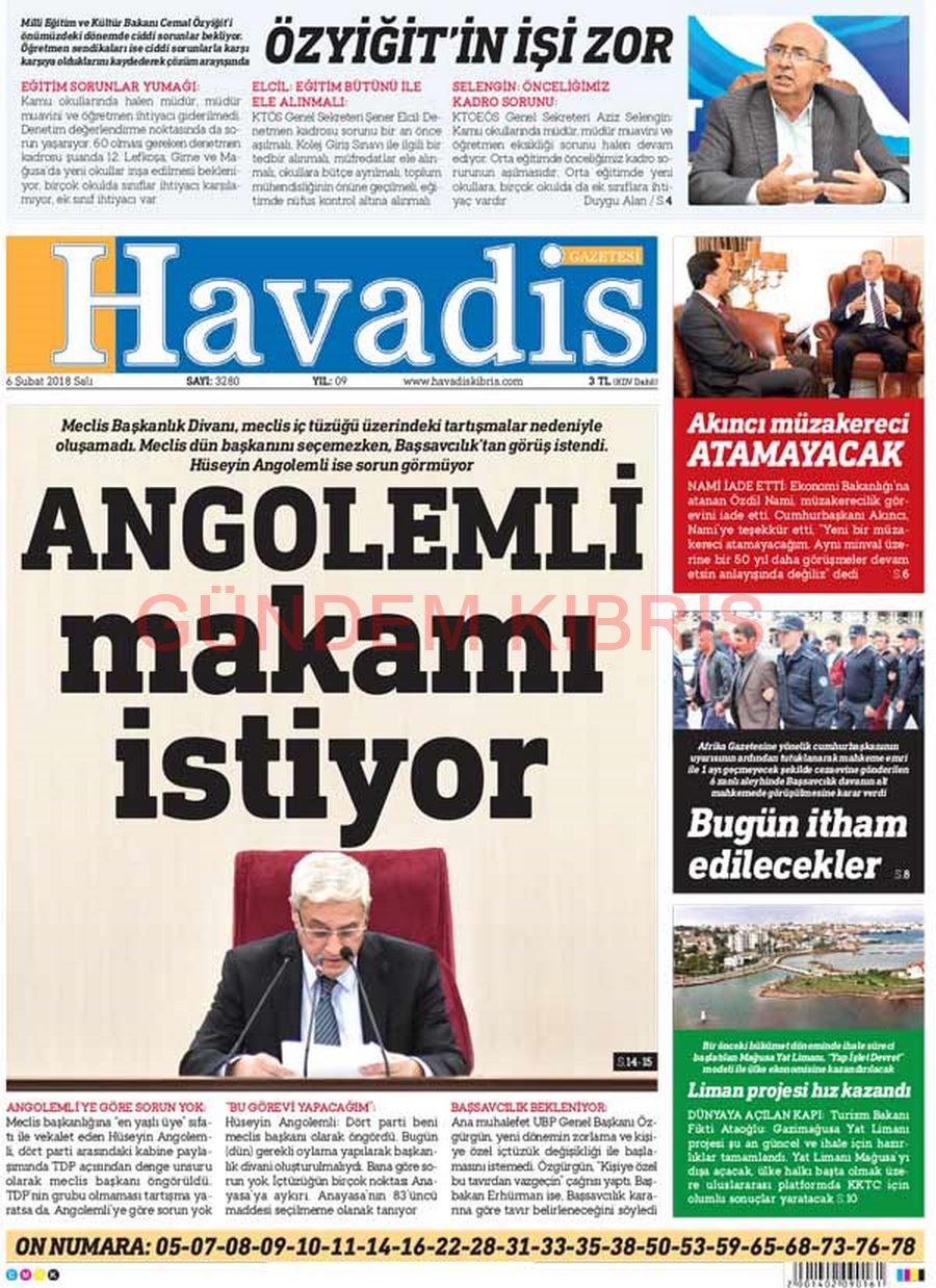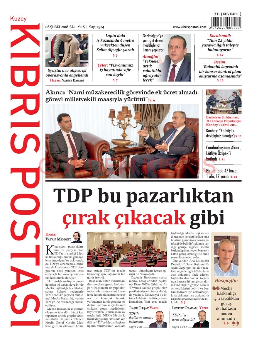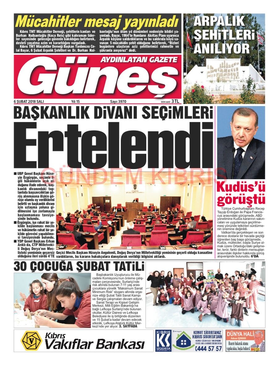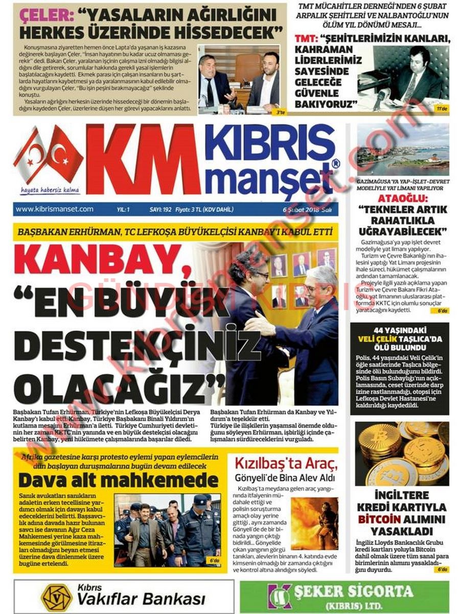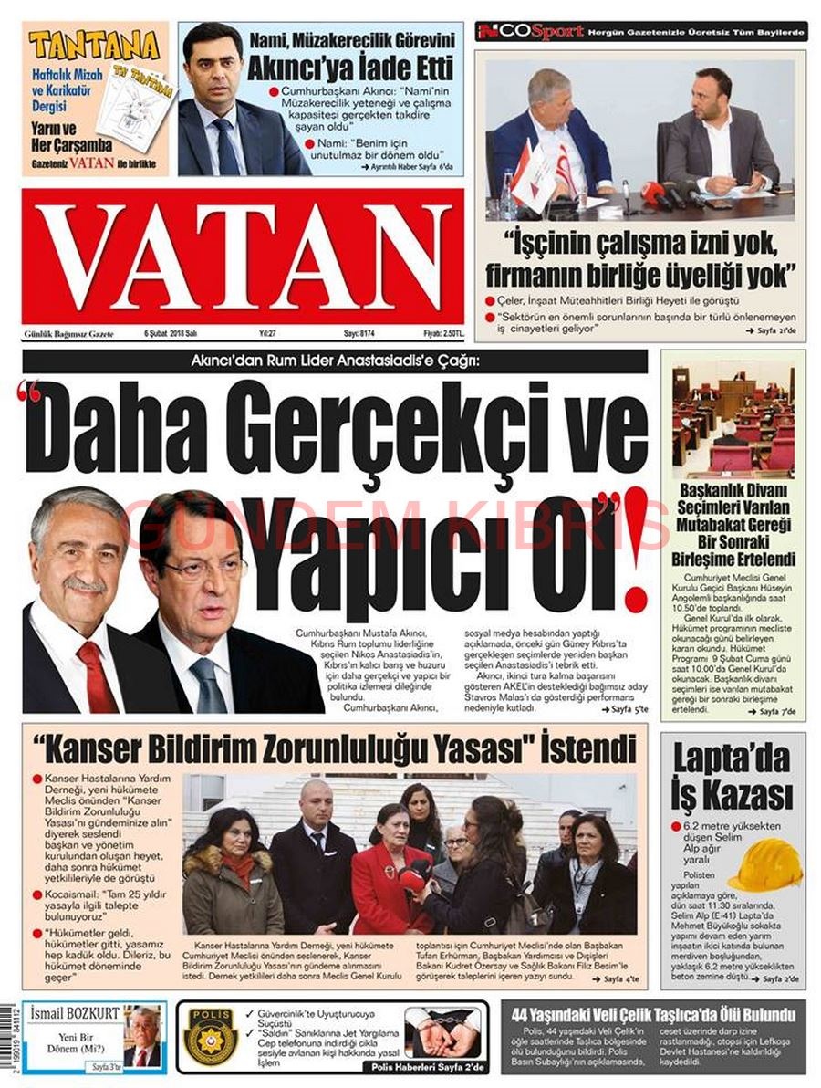 KKTC Gazete Manşetleri 6 Şubat 2018